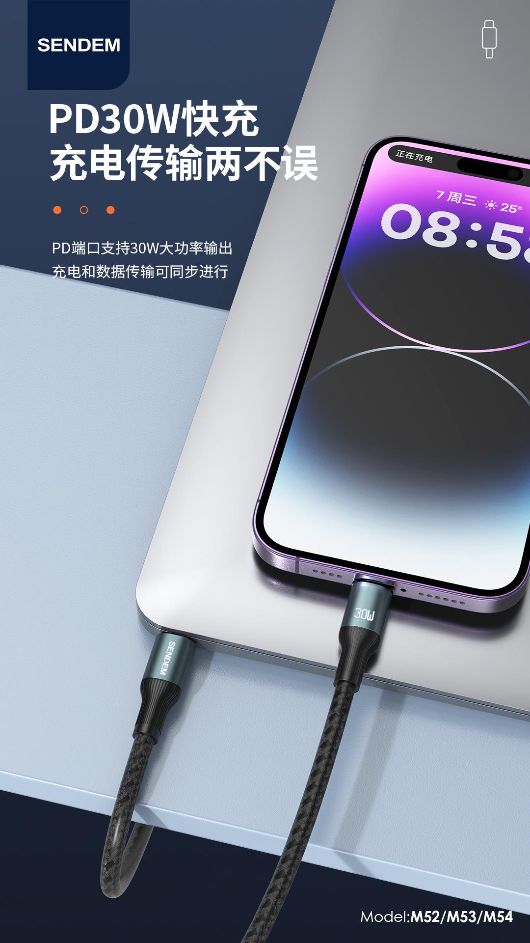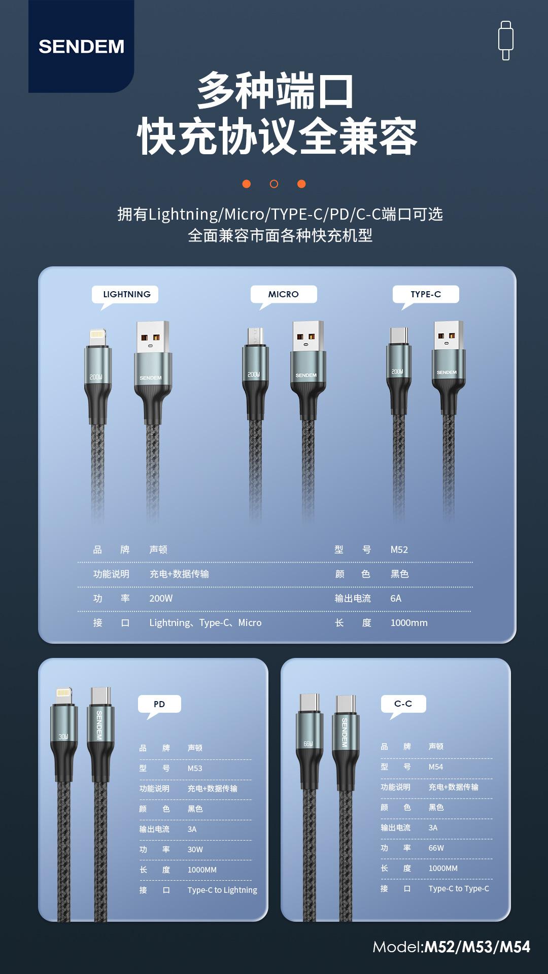 M52 -android - zhenpin 200w braided fast charging cable, M52 -apple - zhenpin 200w braided fast charging cable...