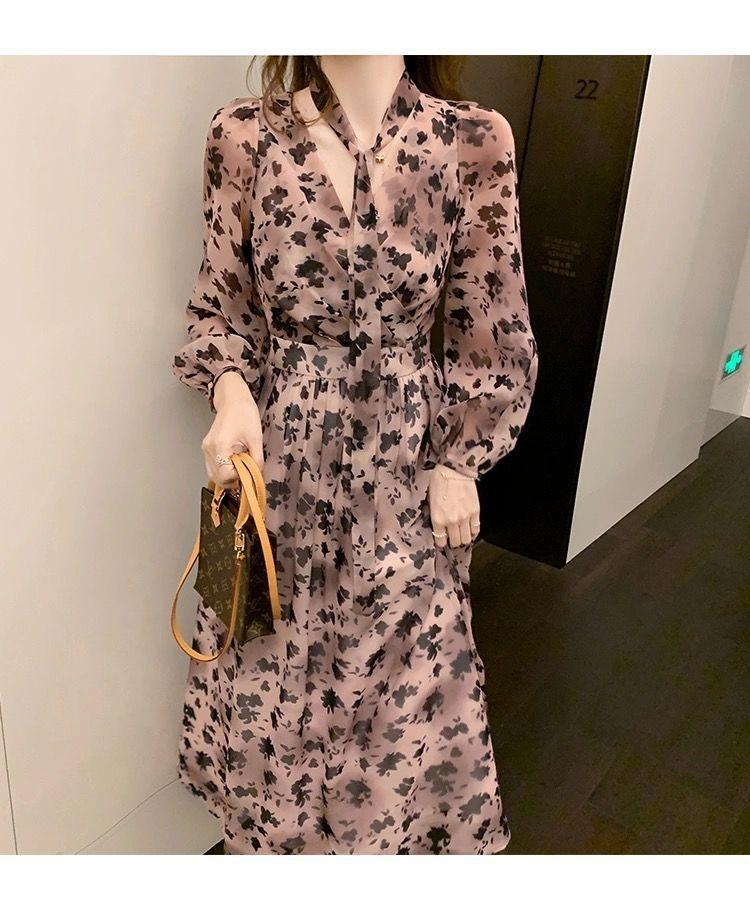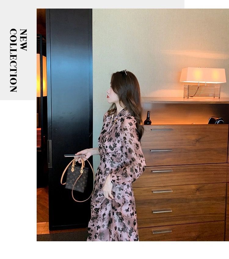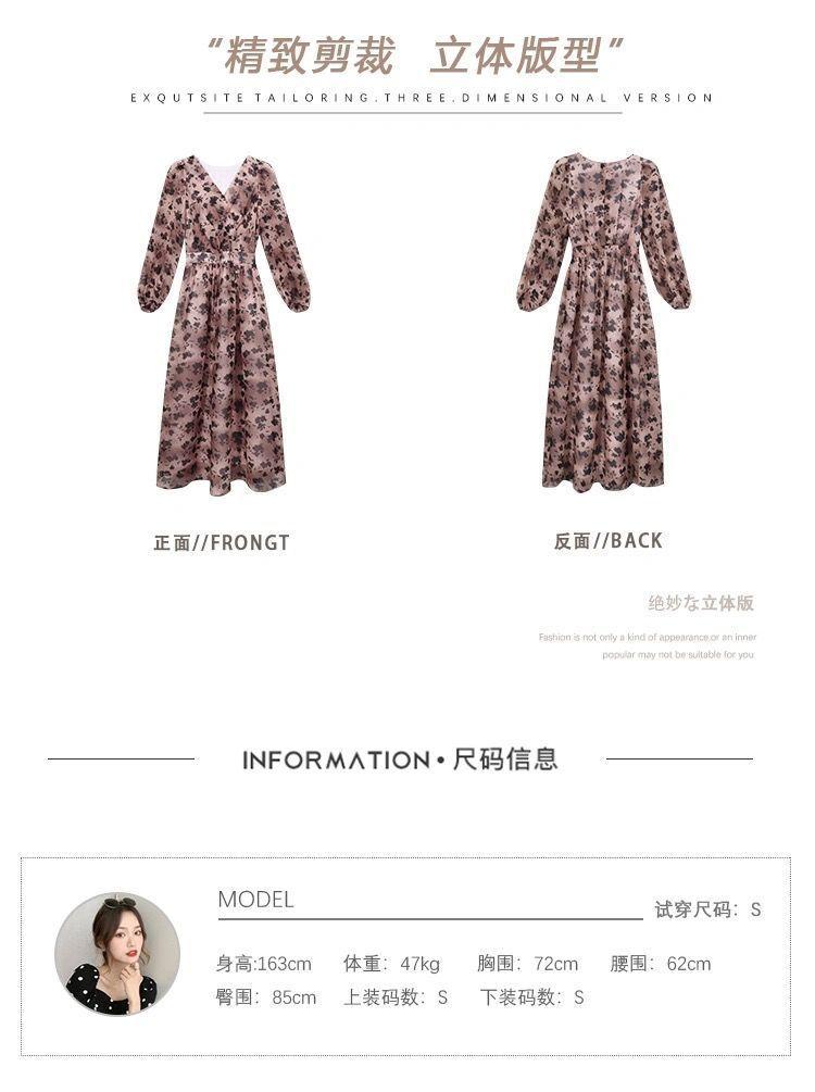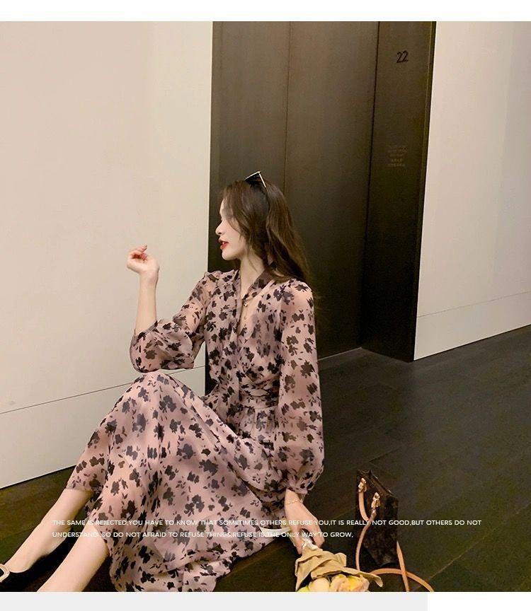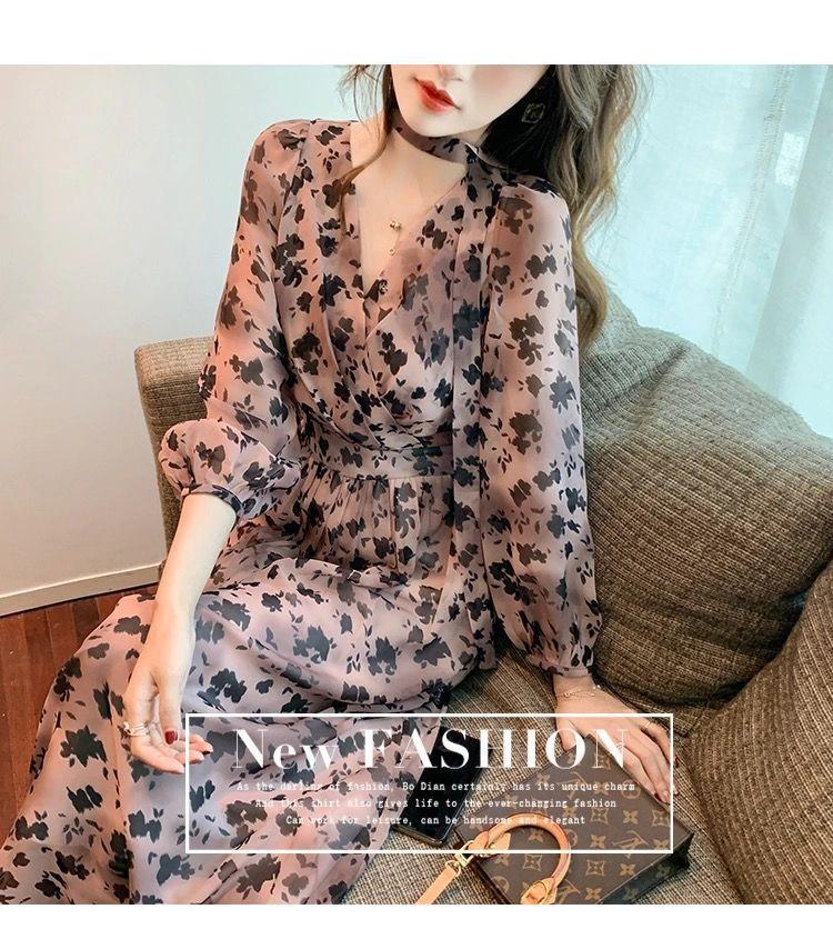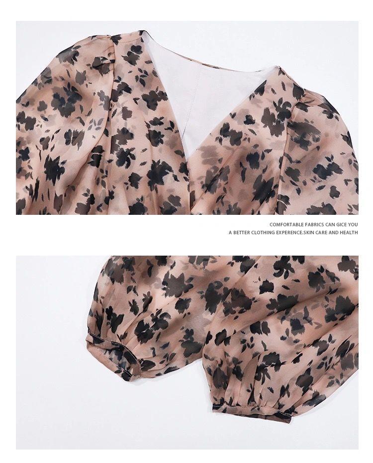 Estilo Socialité Estampado de Leopardo Cuello en V Floral Falda Larga para Mujer 2025 Primavera Nuevo Estilo Francés Cintura Adelgazante Look Vestido