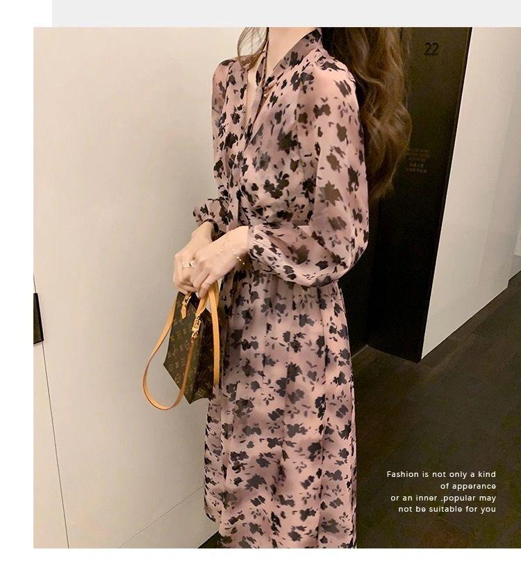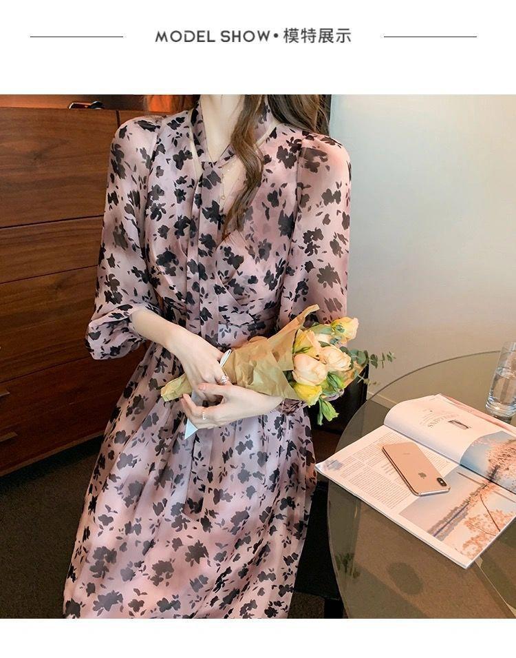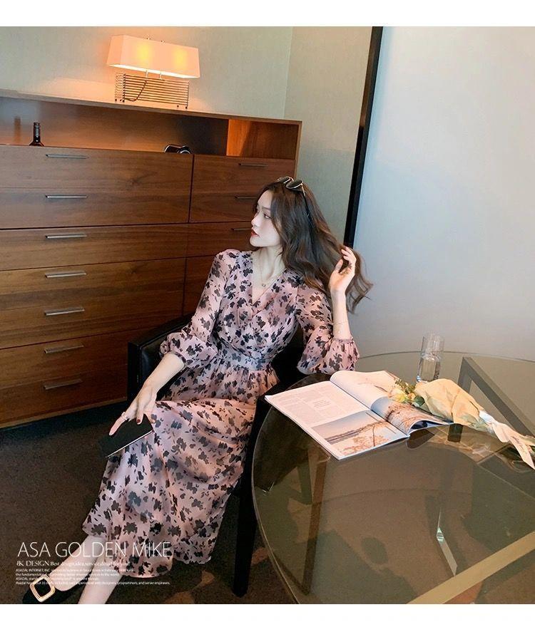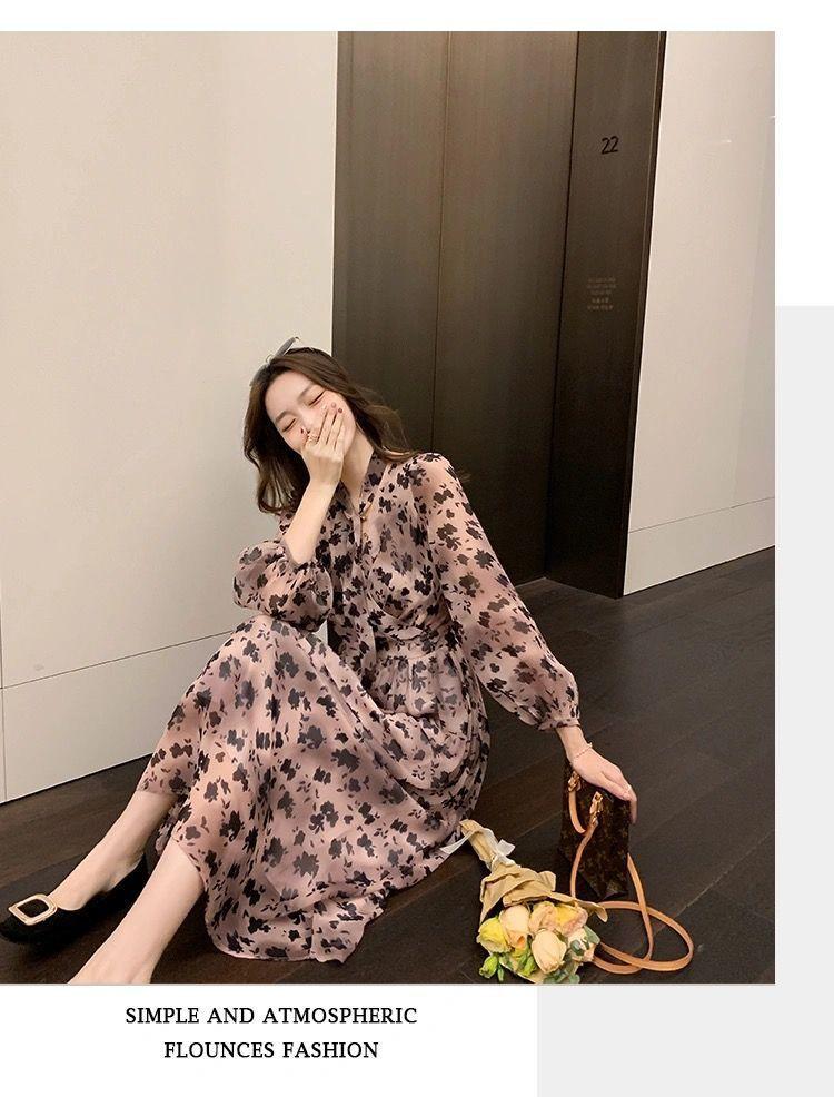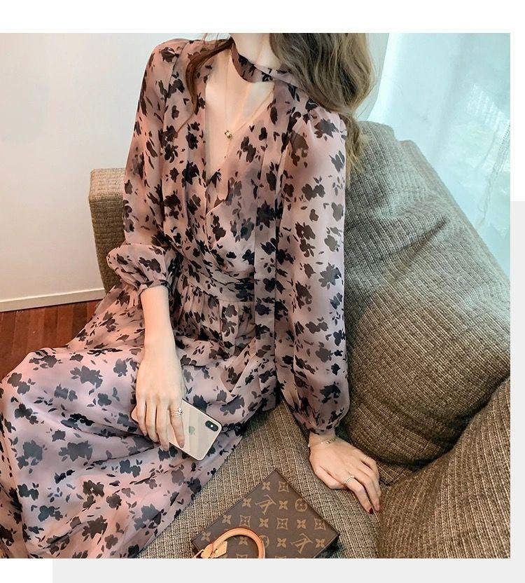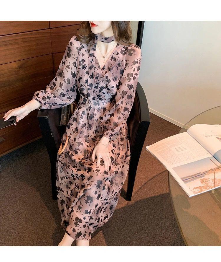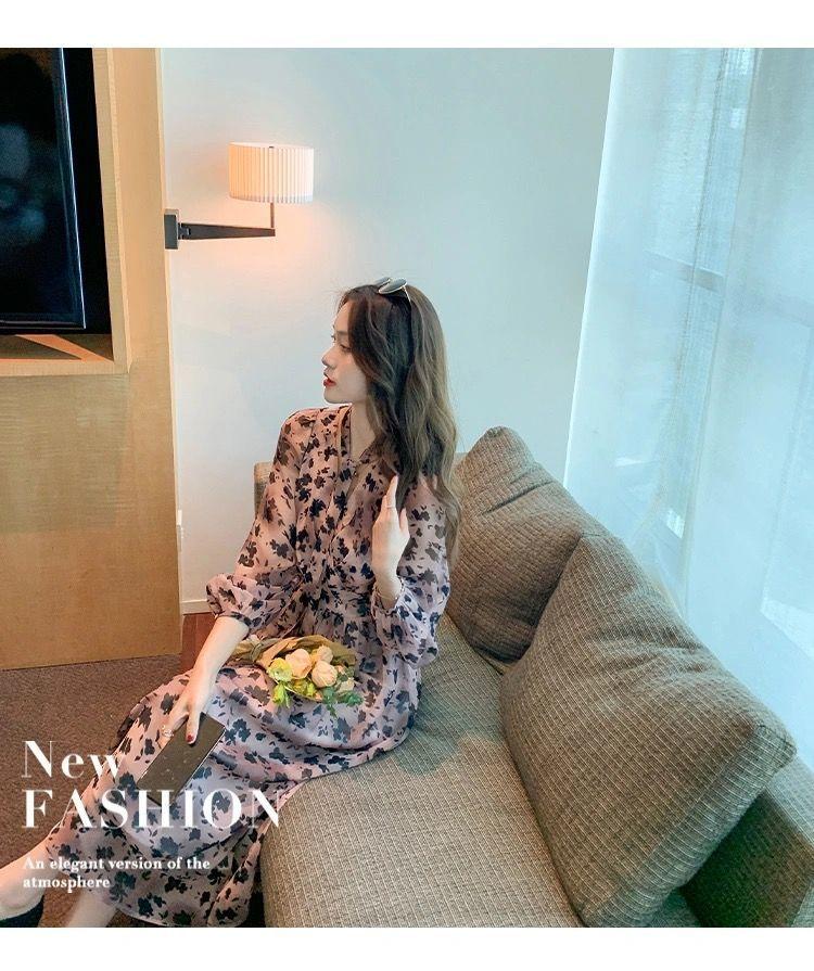 Estilo Socialité Estampado de Leopardo Cuello en V Floral Falda Larga para Mujer 2025 Primavera Nuevo Estilo Francés Cintura Adelgazante Look Vestido