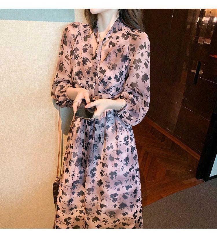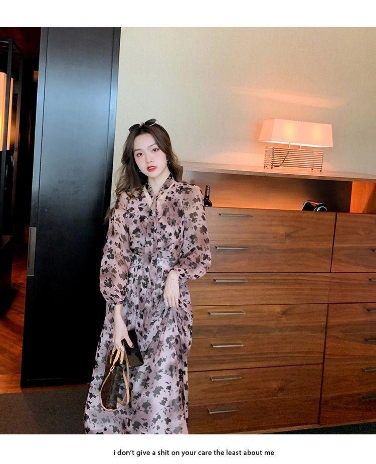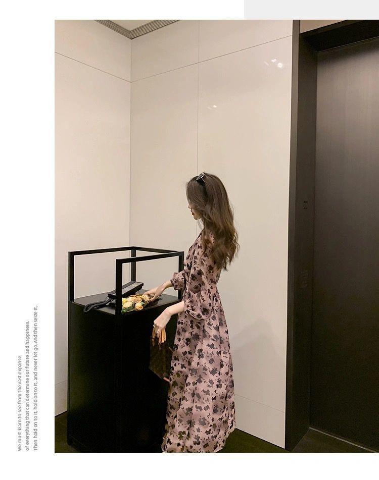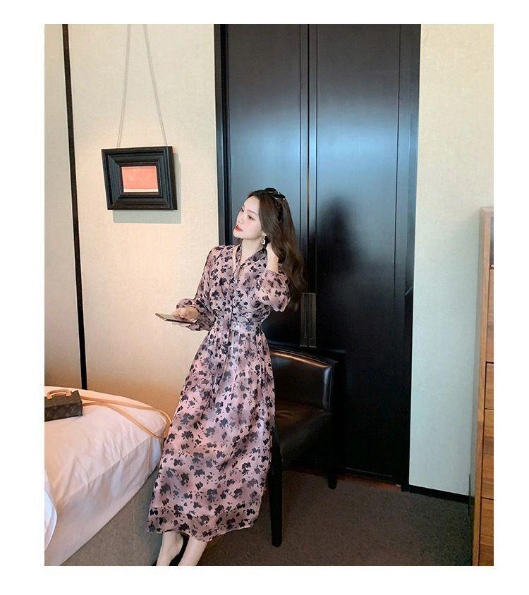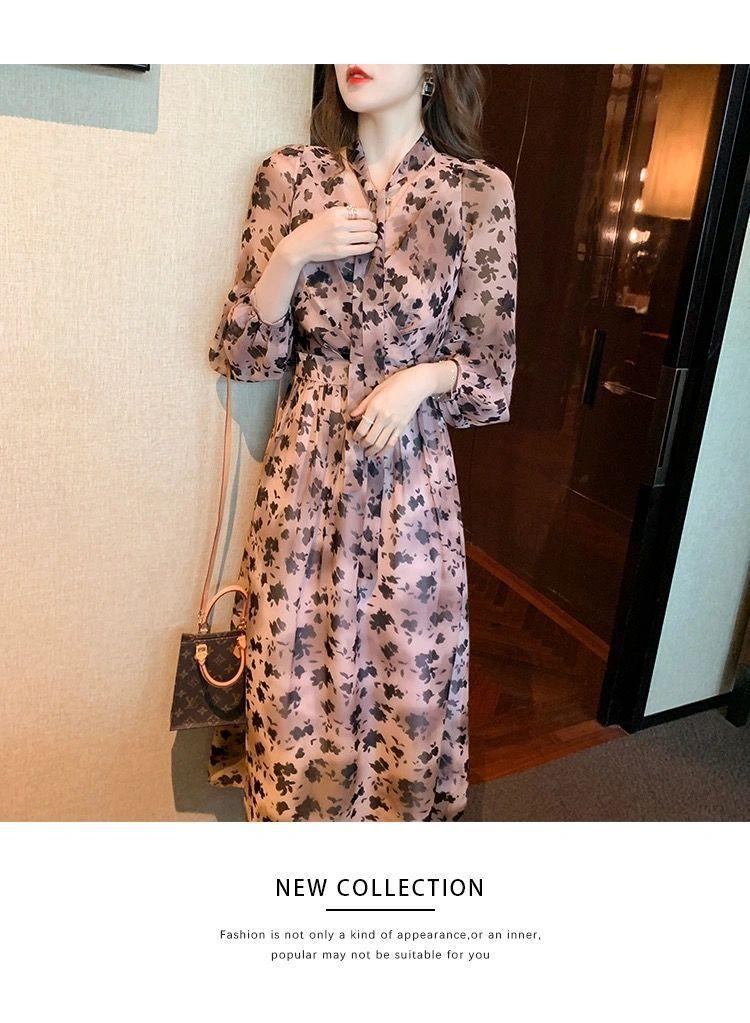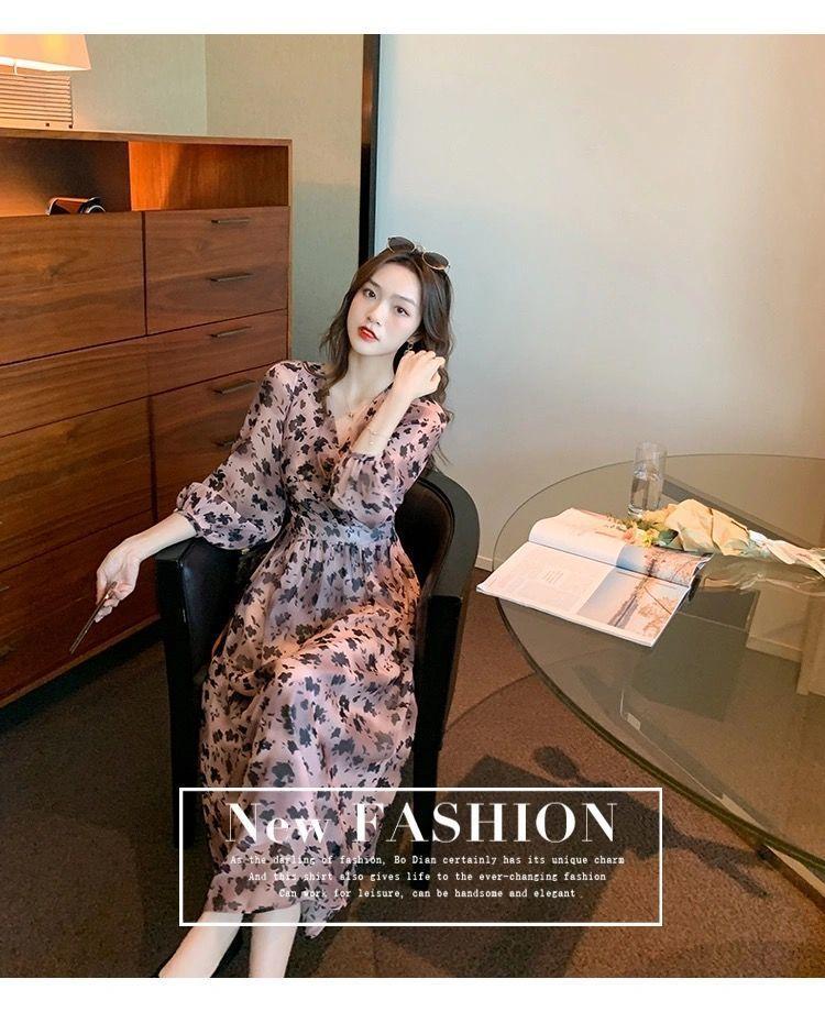 Estilo Socialité Estampado de Leopardo Cuello en V Floral Falda Larga para Mujer 2025 Primavera Nuevo Estilo Francés Cintura Adelgazante Look Vestido