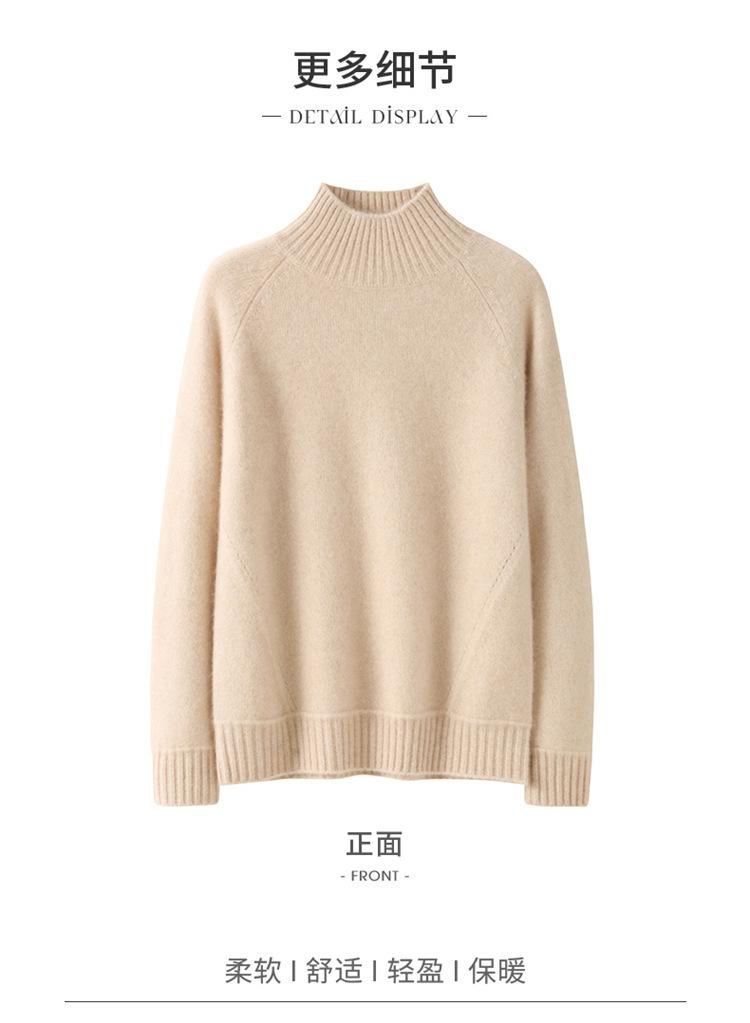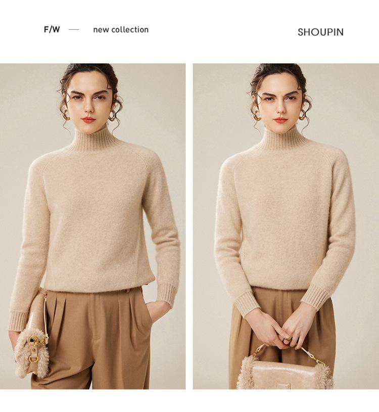 Suéter holgado de cachemira 100 % pura, estilo holgado, cuello medio alto, informal, de punto, para otoño e invierno, 24 unidades