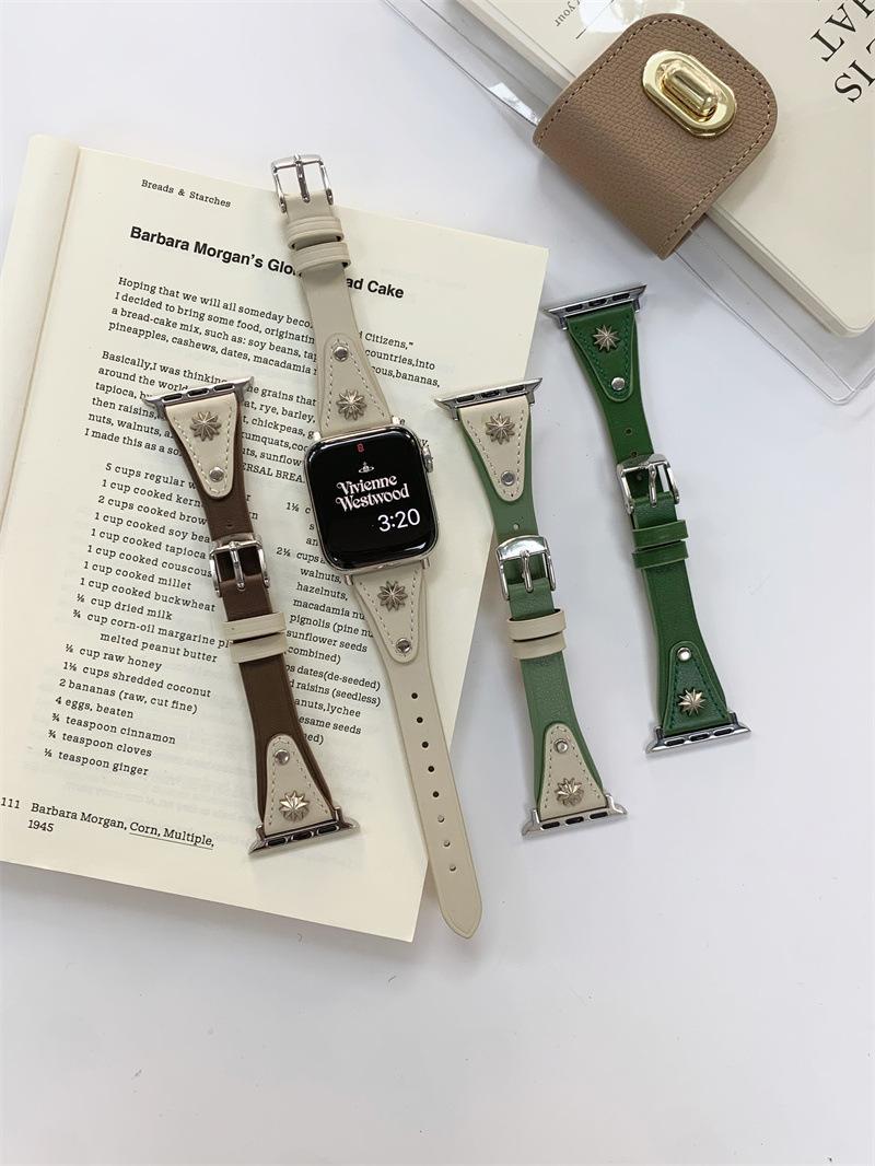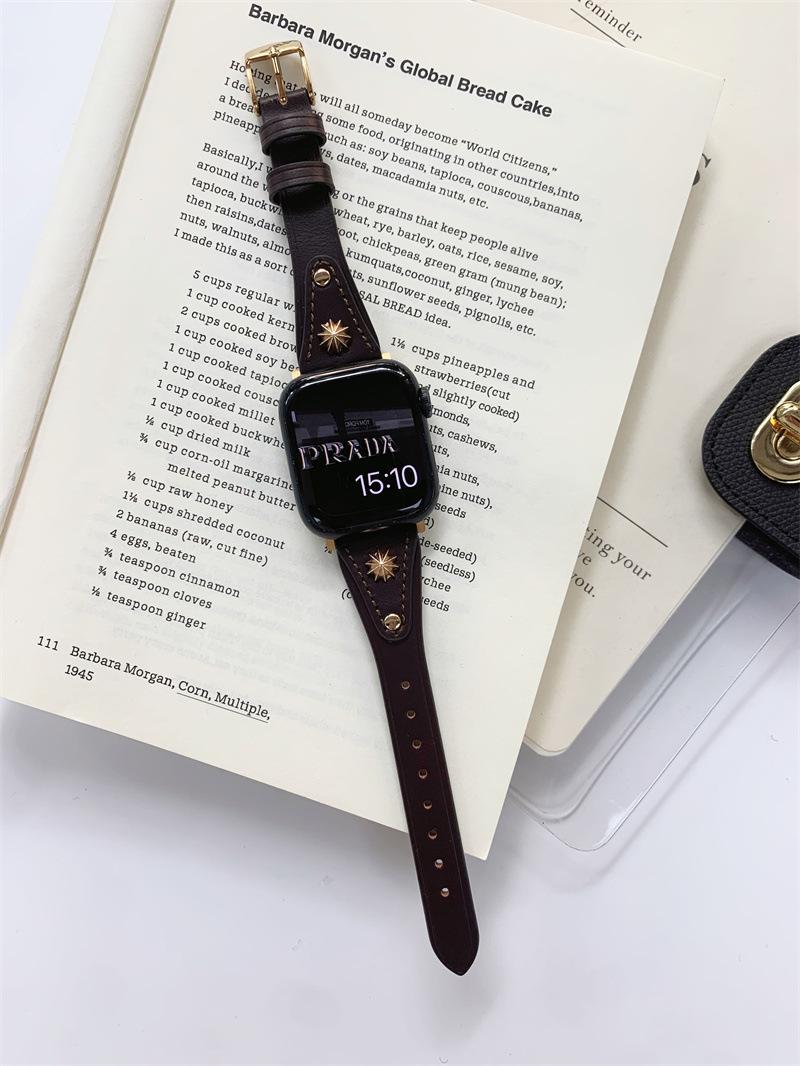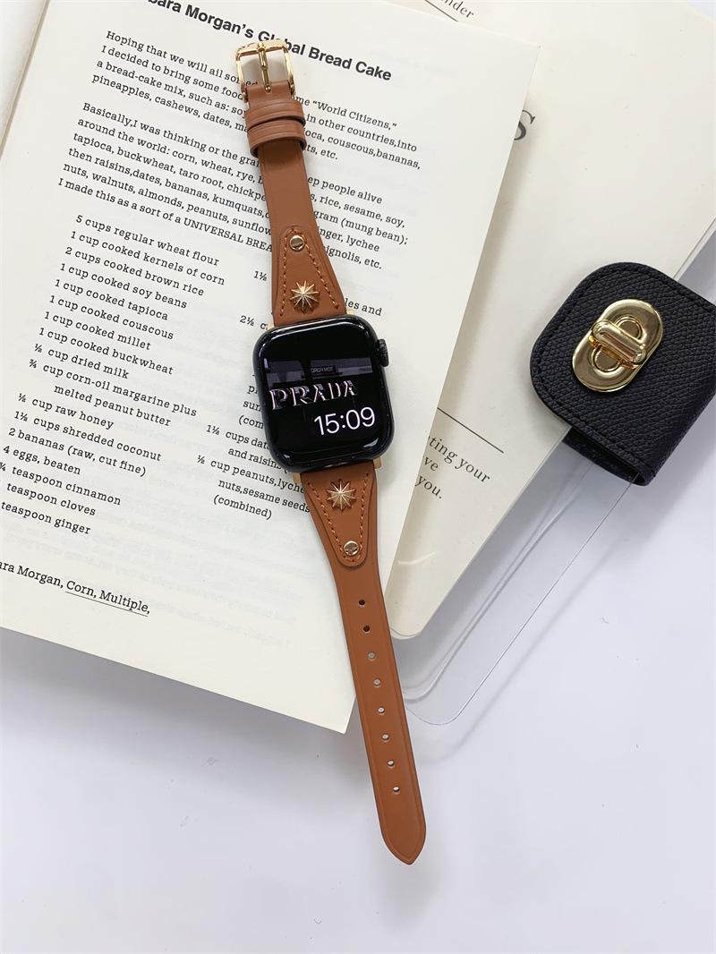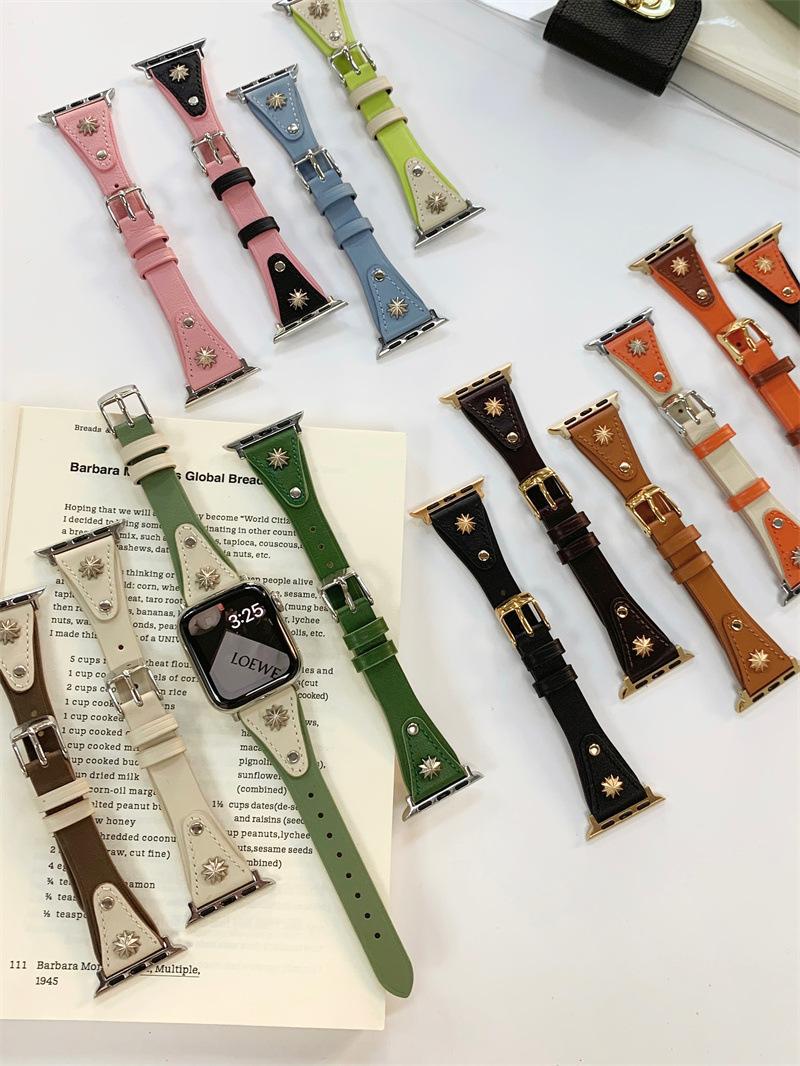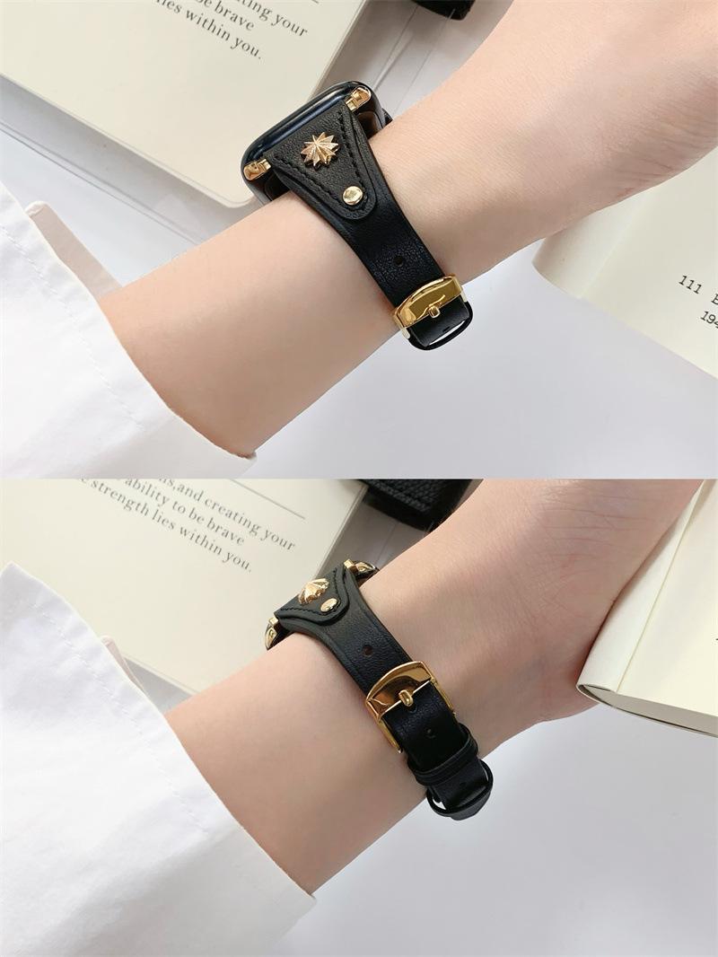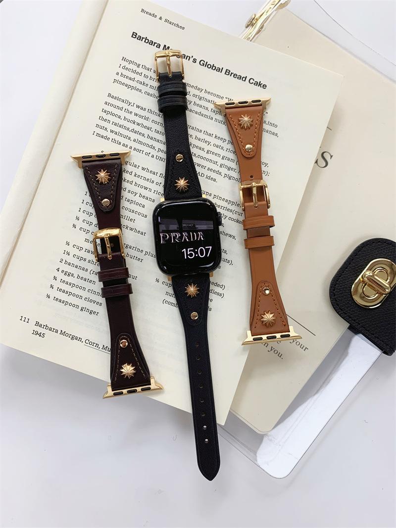 Adecuado para AppleWatch9 Apple Watch iwatchS8765 generación se correa de cuero de cintura pequeña remache creativo