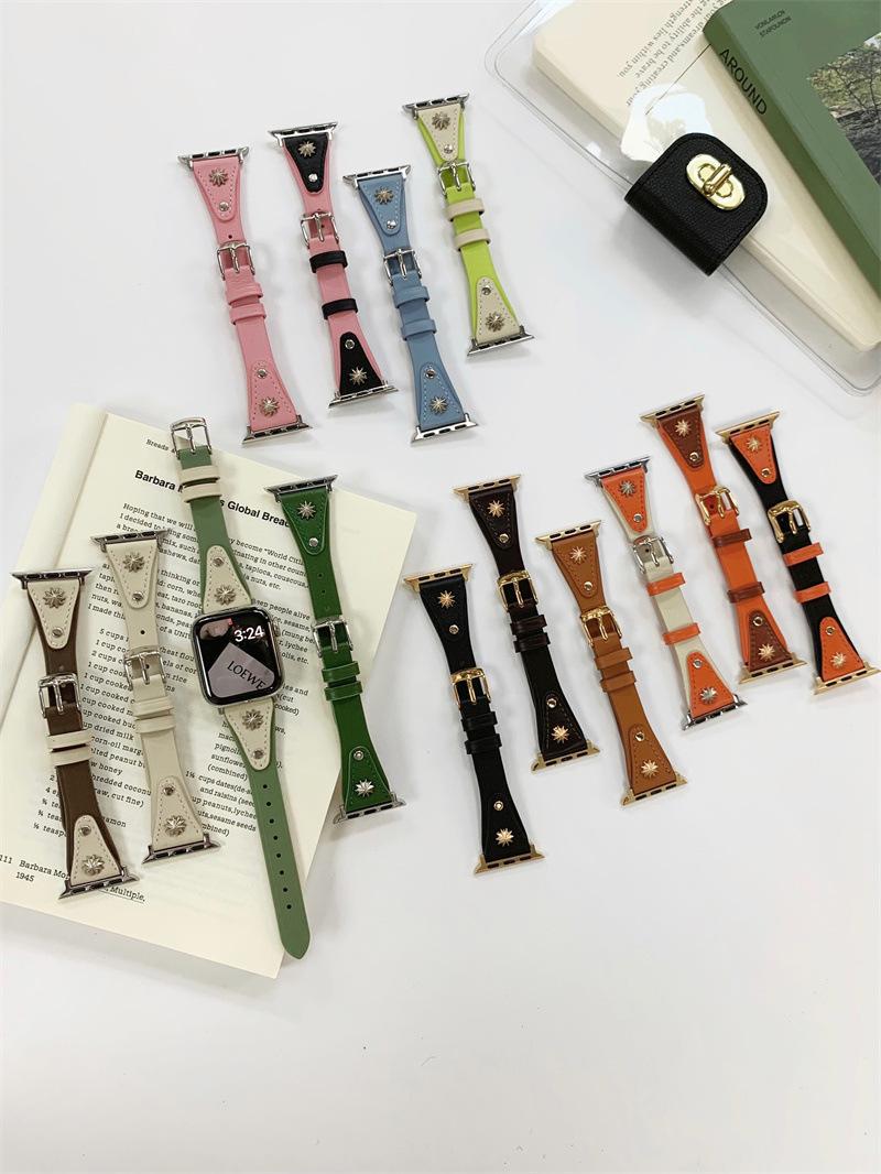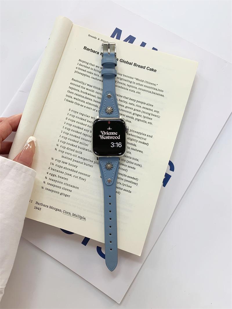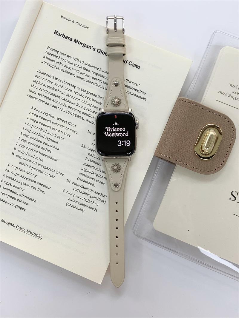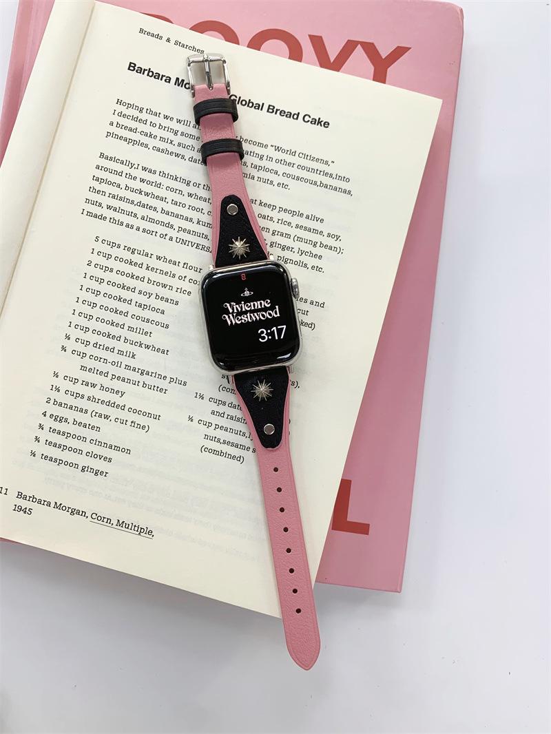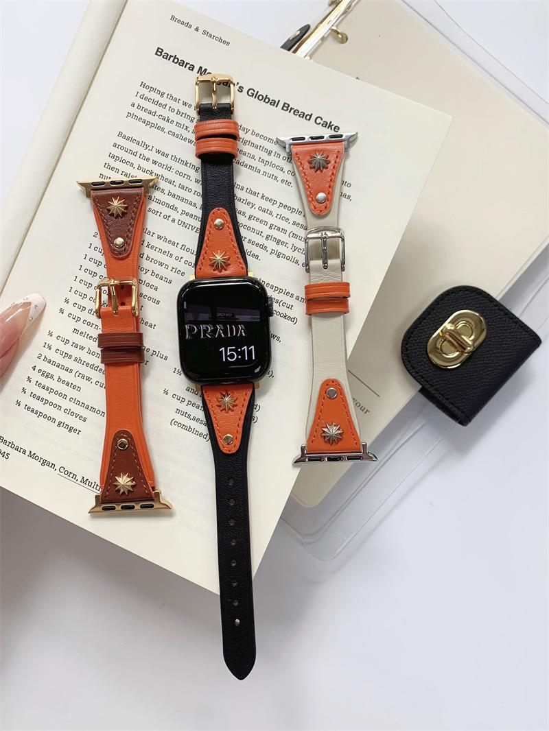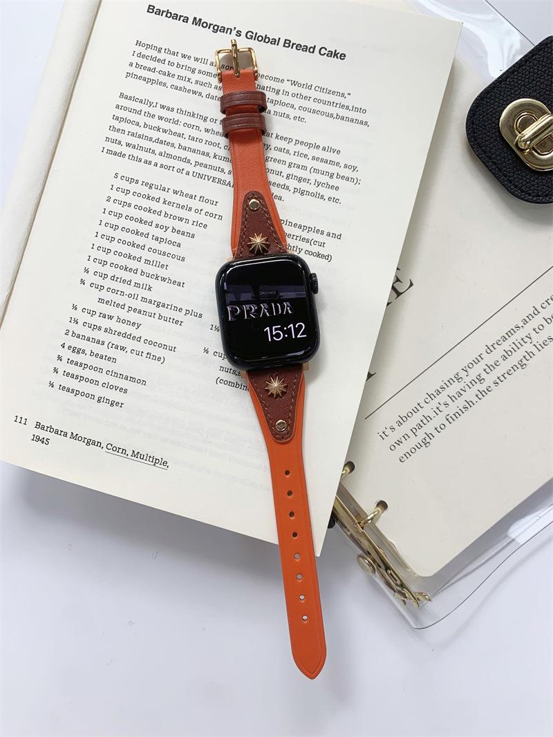 Adecuado para AppleWatch9 Apple Watch iwatchS8765 generación se correa de cuero de cintura pequeña remache creativo