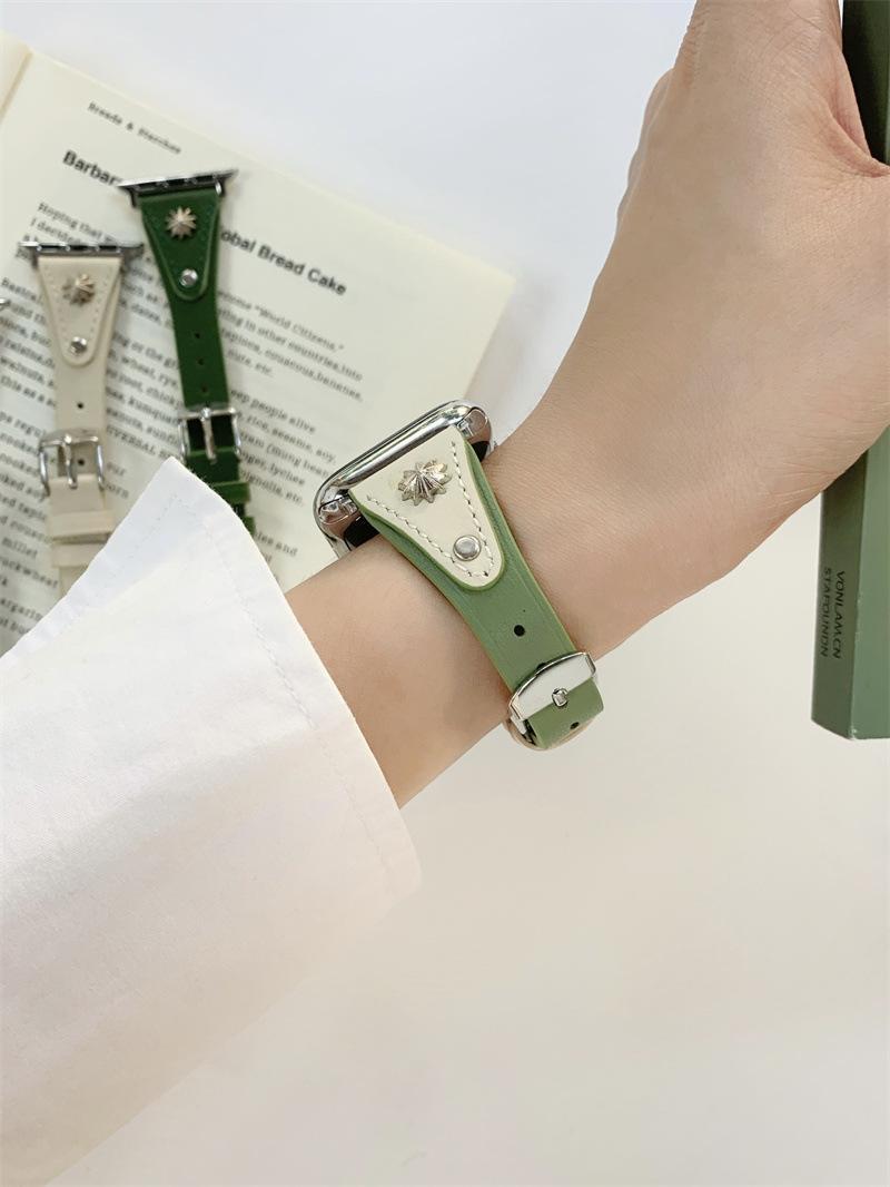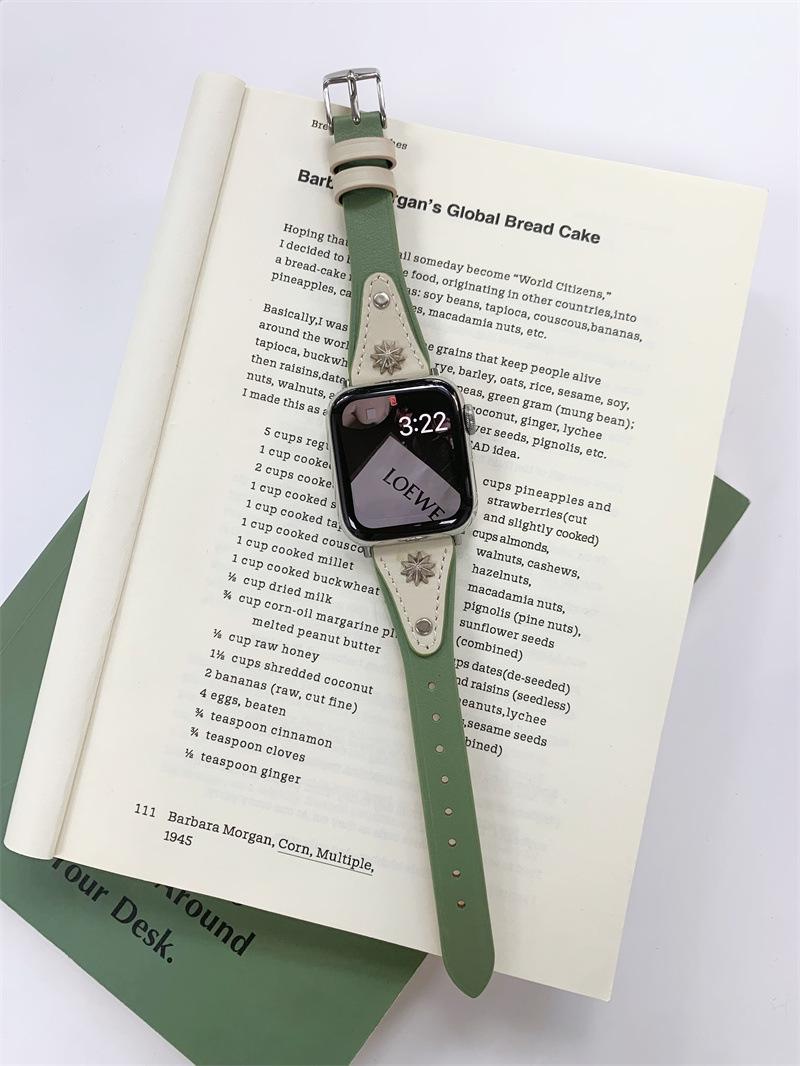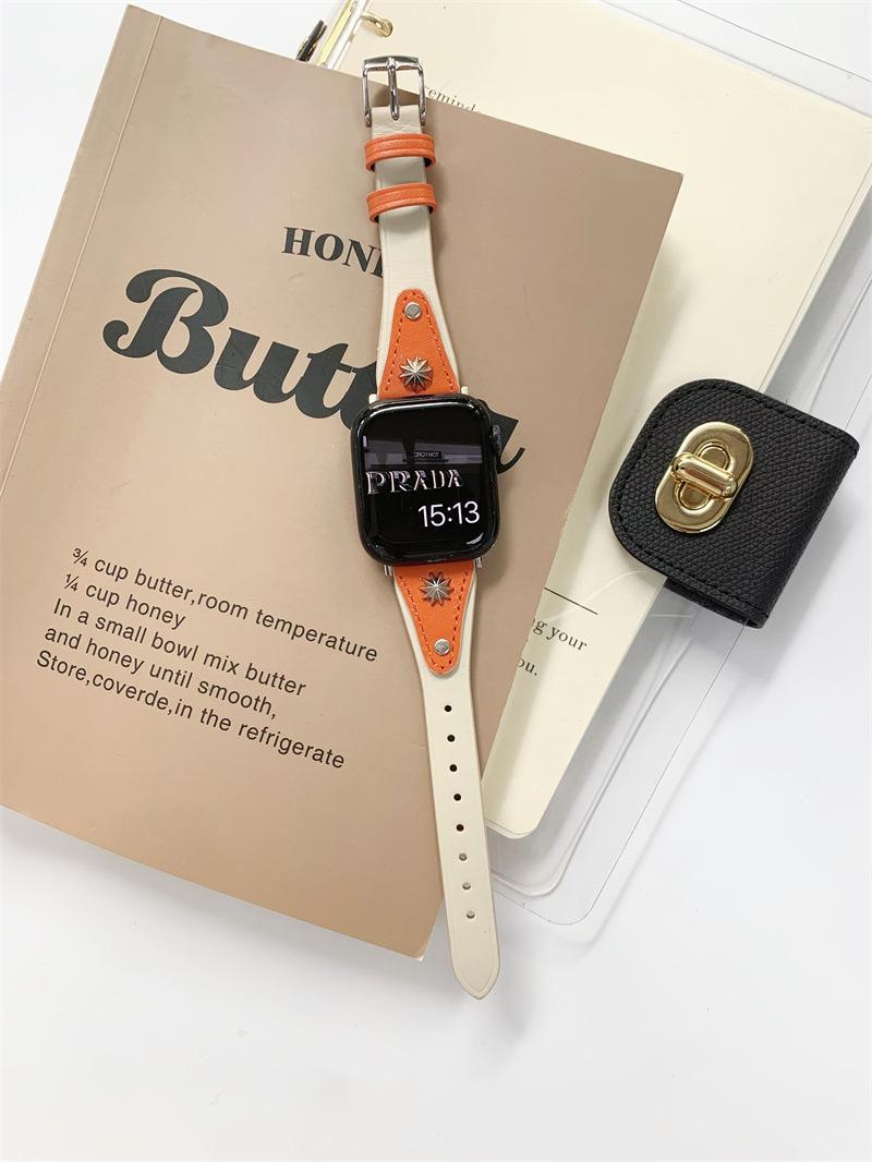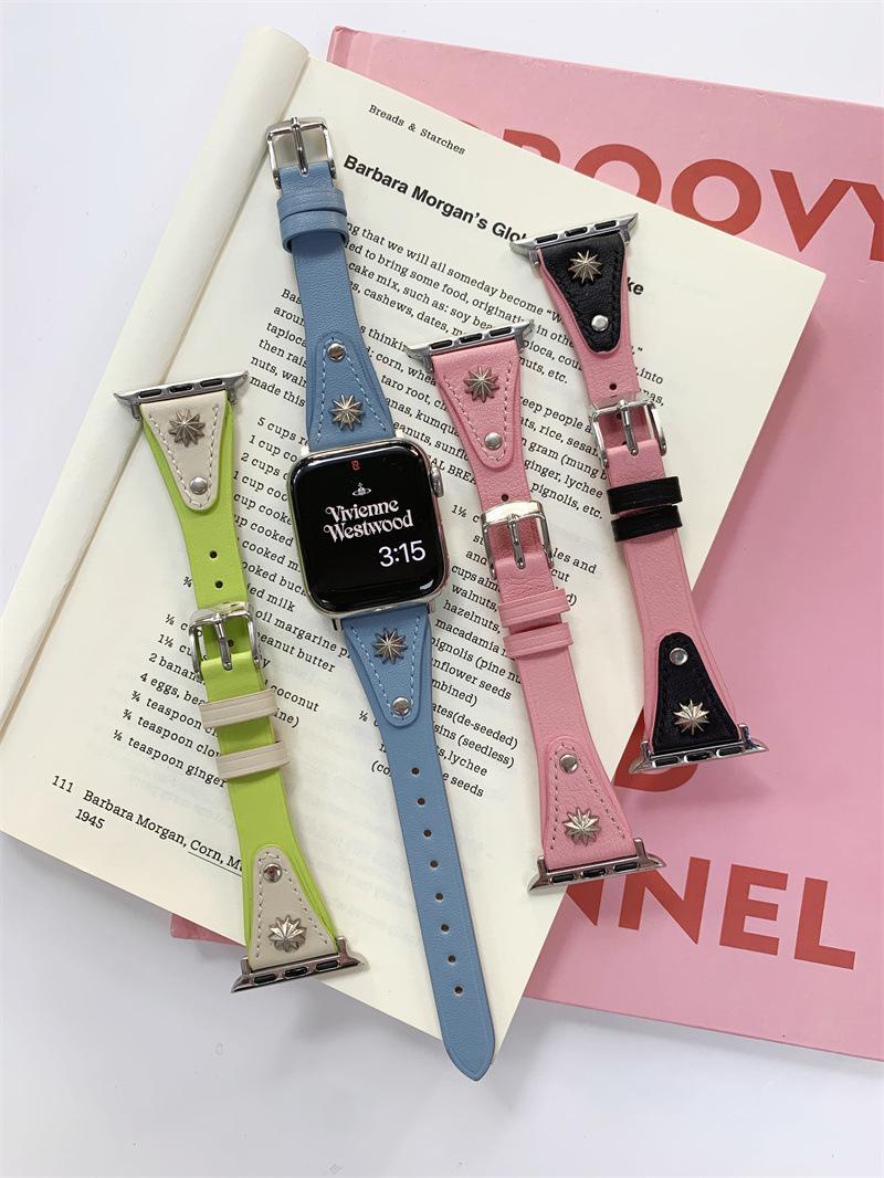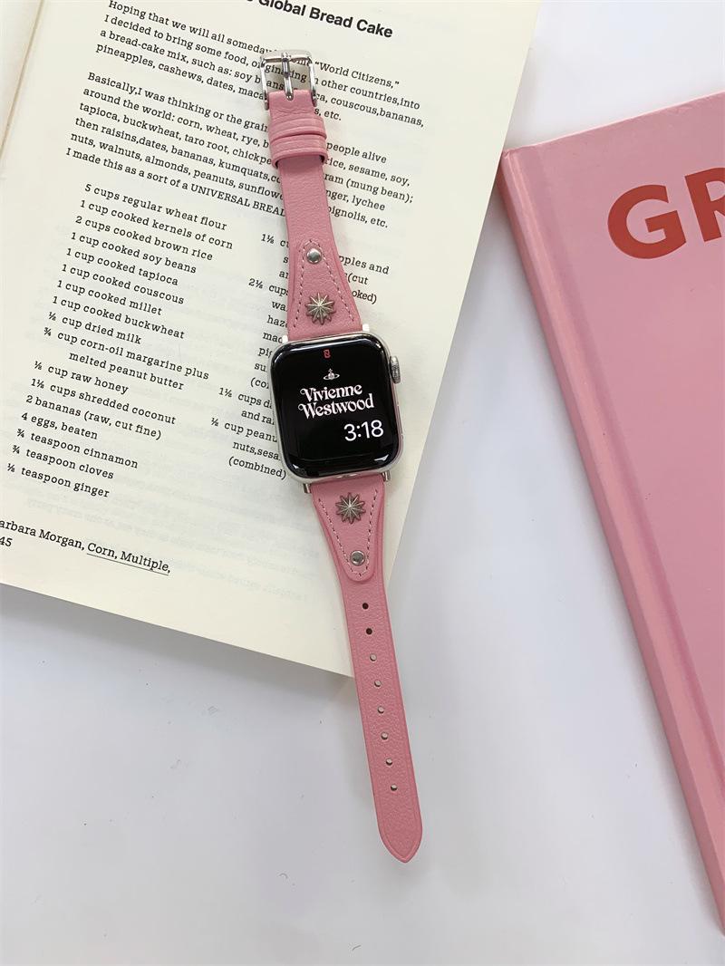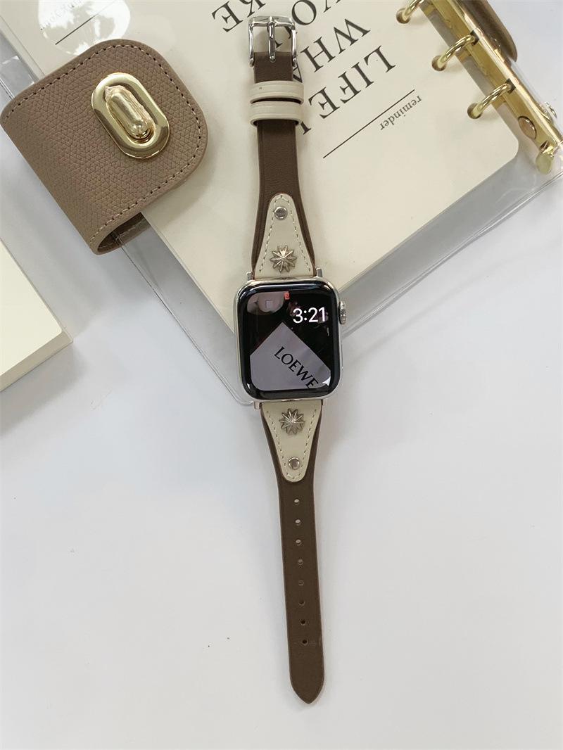 Adecuado para AppleWatch9 Apple Watch iwatchS8765 generación se correa de cuero de cintura pequeña remache creativo