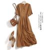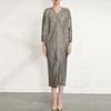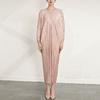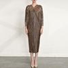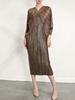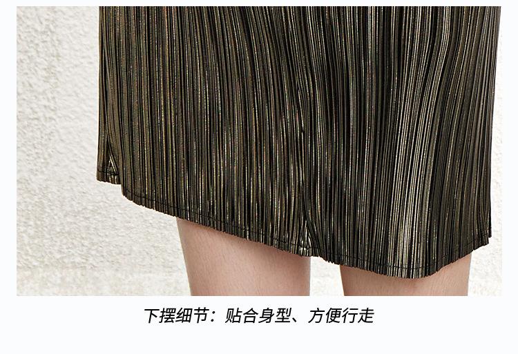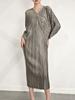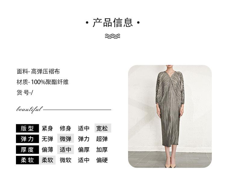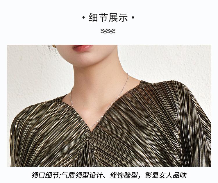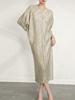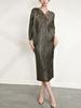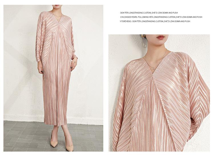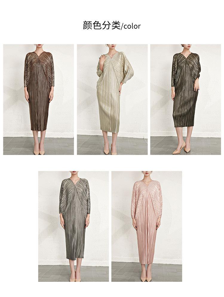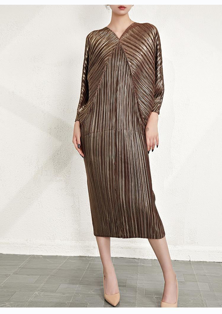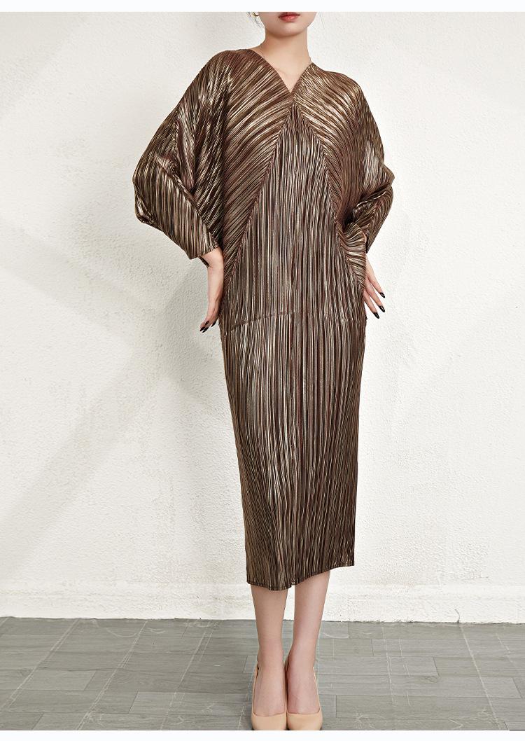 Vestido largo estilo francés con escote en V, mangas murciélago y ligero para mujer, estilo europeo y americano, talla grande, plisado, metálico, cintura alta, aspecto ajustado.