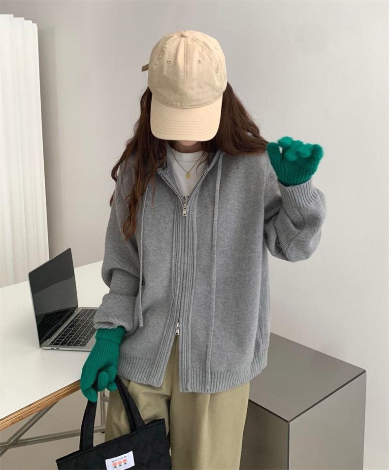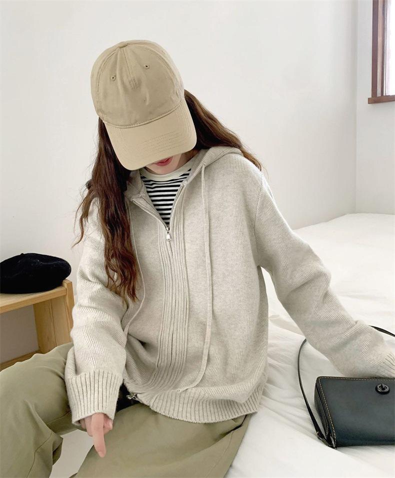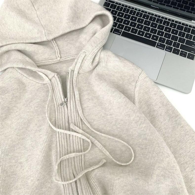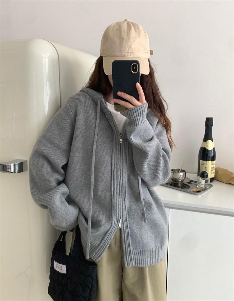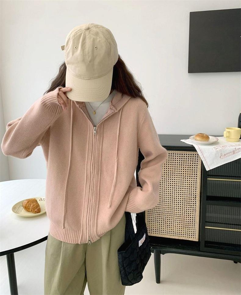 Suéter con capucha para mujer, primavera y otoño 2024, nuevo cárdigan de punto, abrigo adelgazante, top de color liso para mujer