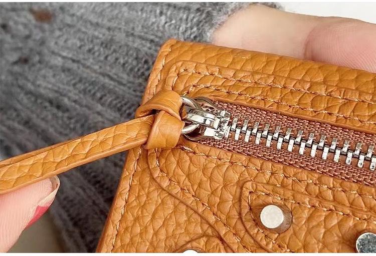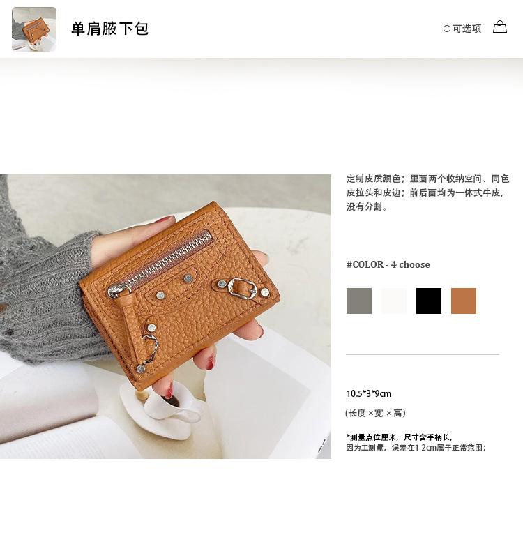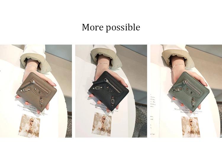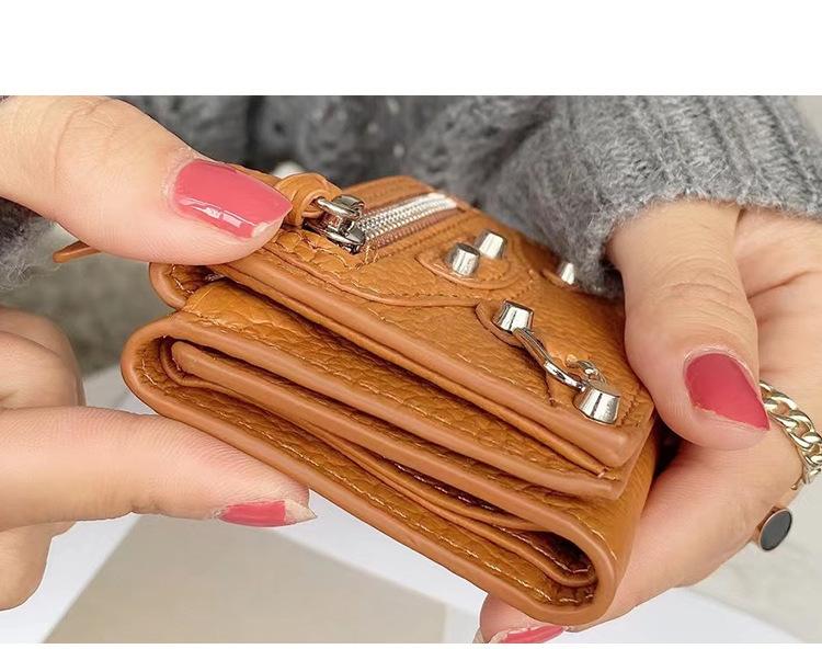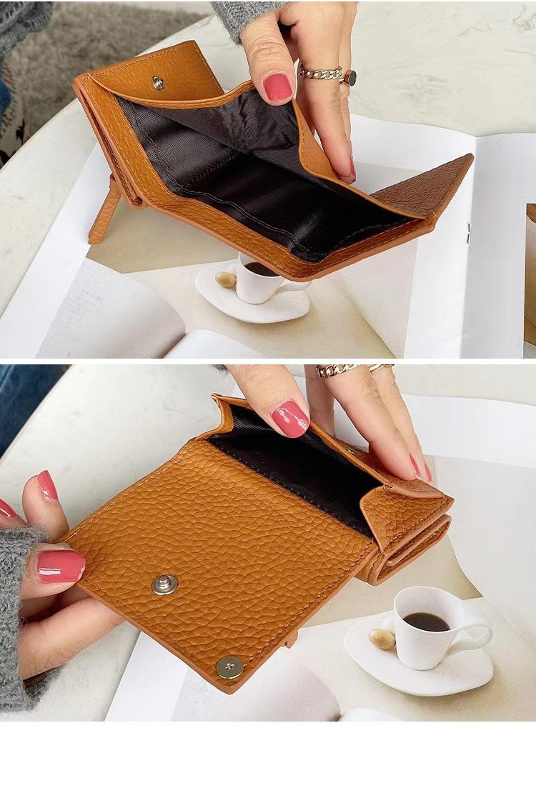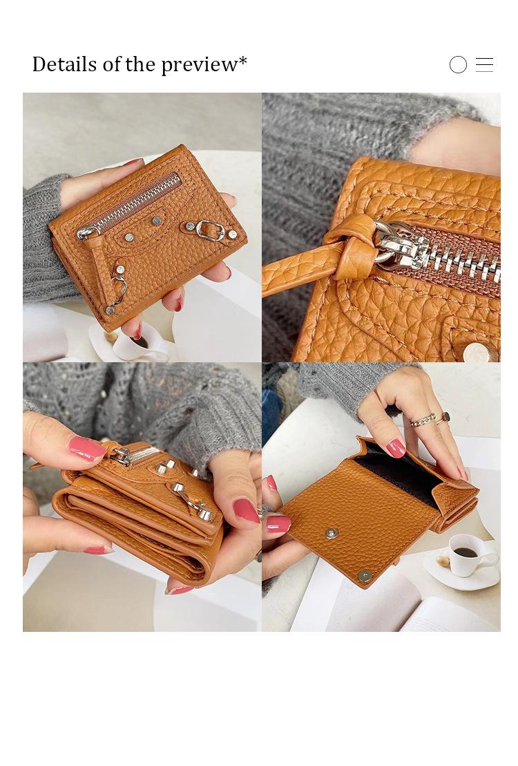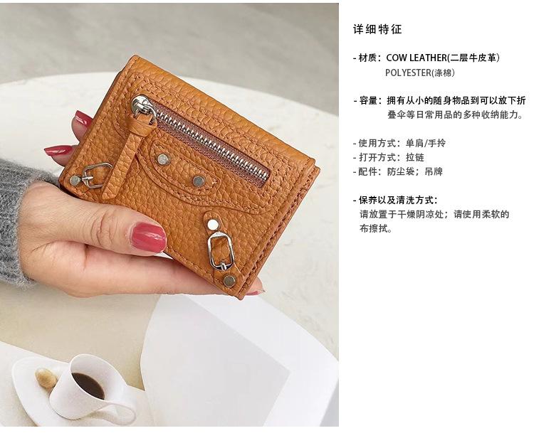 Cartera de moto de piel de vaca de tres pliegues para mujer, estilo coreano, corta, de gran capacidad, con tarjetero todo en uno.