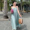 Ovinsyang vestido de encaje satinado para mujer primavera y otoño 2024 Nuevo diseño nicho dulce falda línea A
