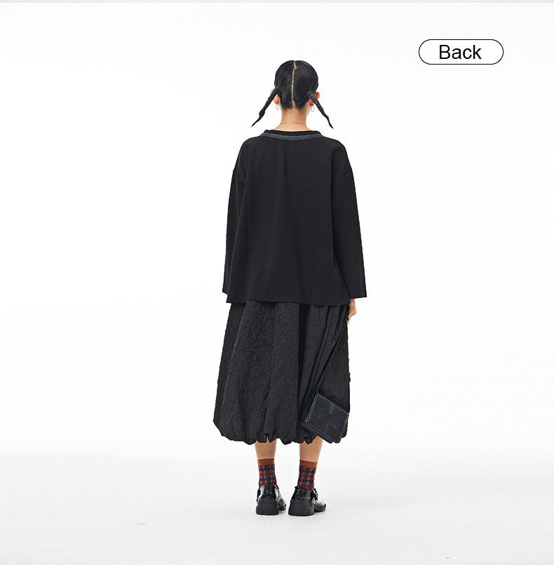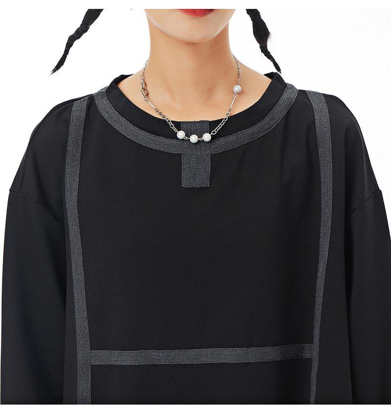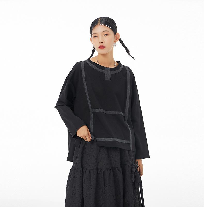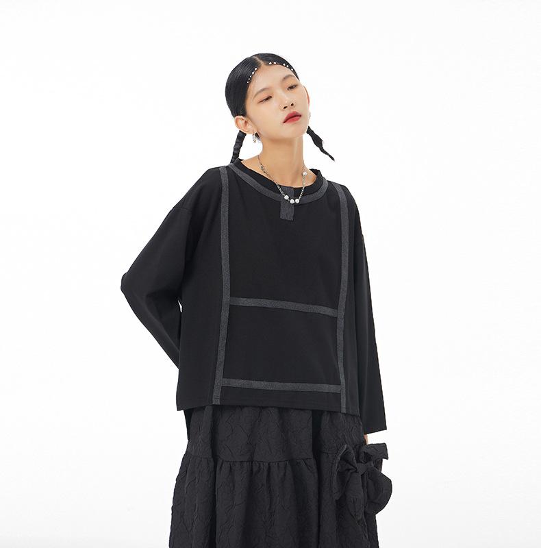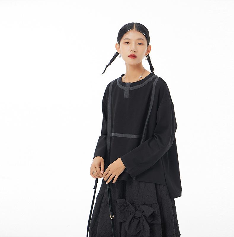 Otoño 2023 Nueva camiseta oscura de manga larga para mujer, estilo coreano, holgada, adelgazante, combinable, estilo holgado, pulóver, 65830