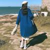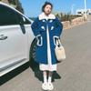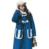 Abrigo de lana de cordero cosido de tiro real con botones de cuerno azules, abrigo de lana largo para mujer para otoño e invierno, nuevo abrigo de lana largo que reduce la edad