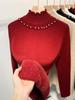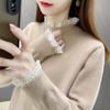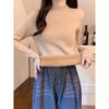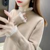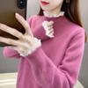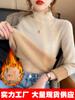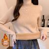 Suéter holgado de cuello alto con forro polar para mujer, otoño e invierno, nuevo, 2024, estilo occidental, camisa de punto con base, interior grueso para mujer