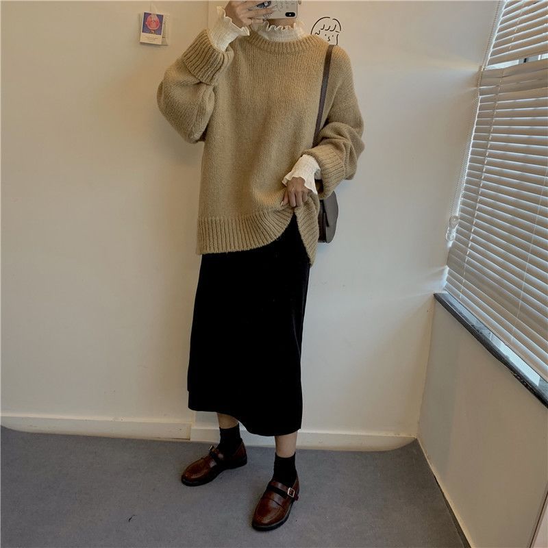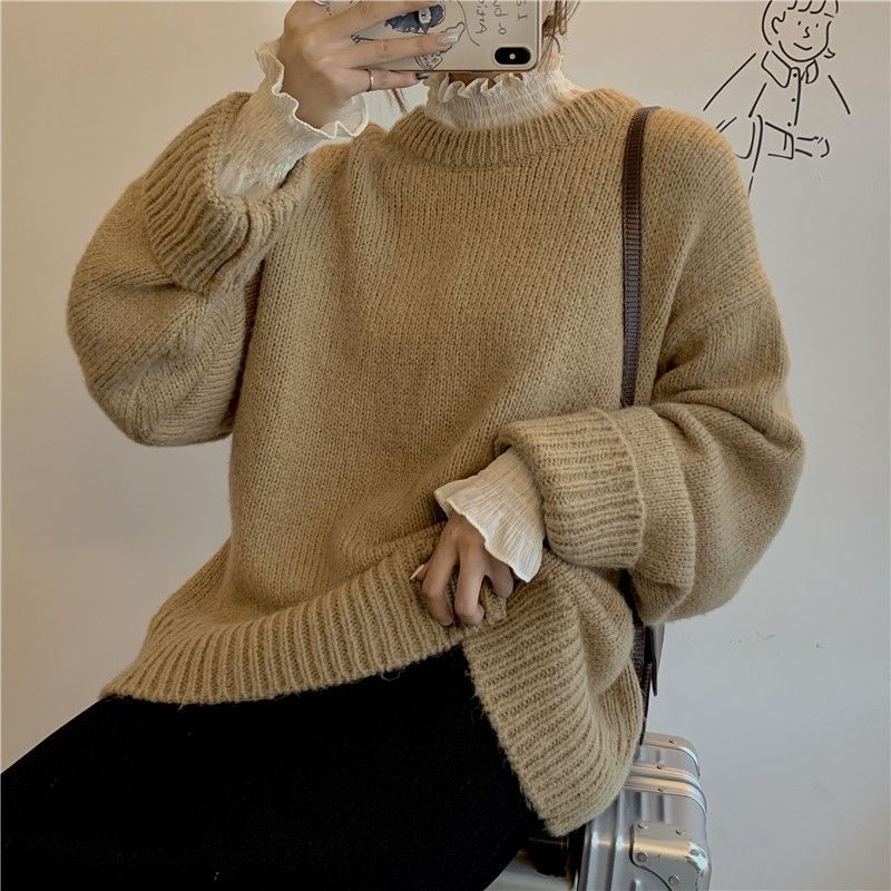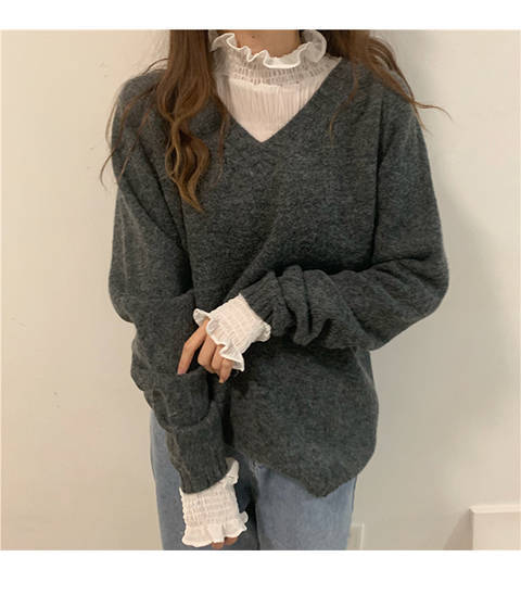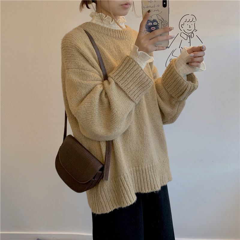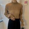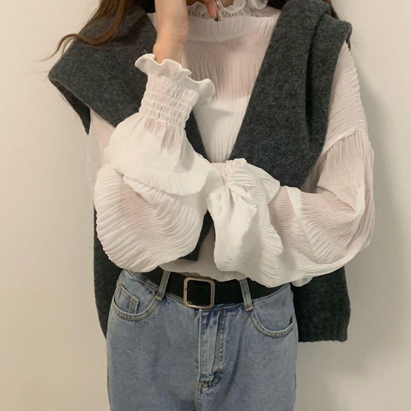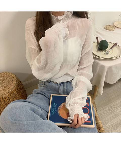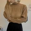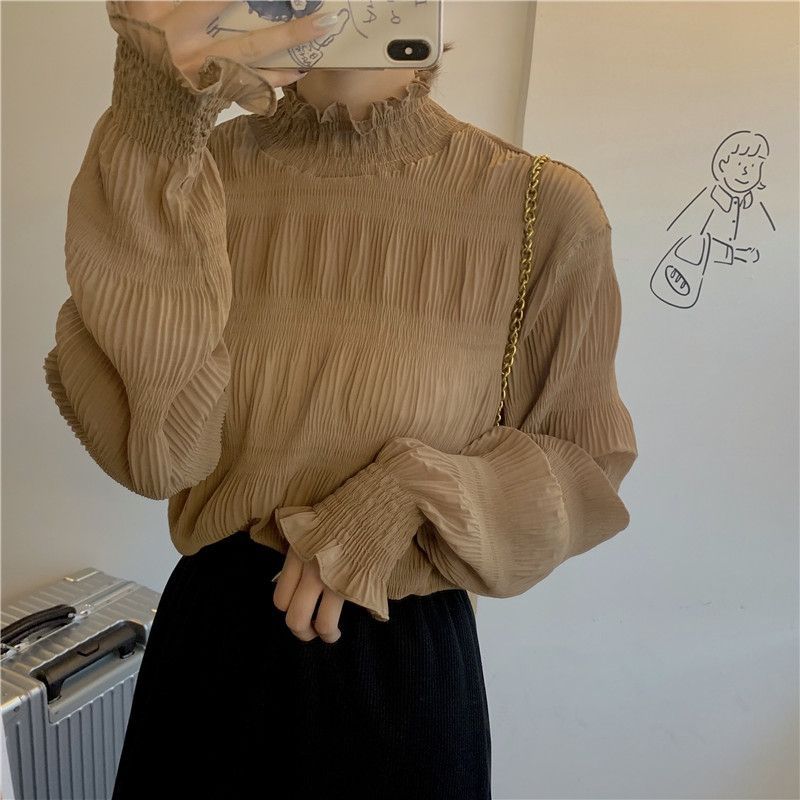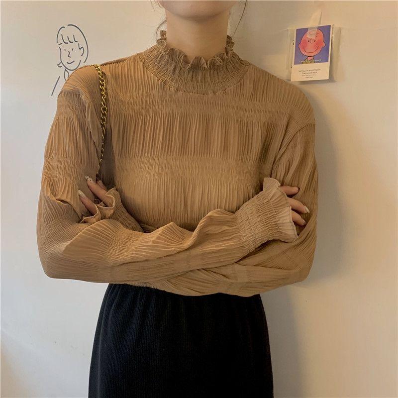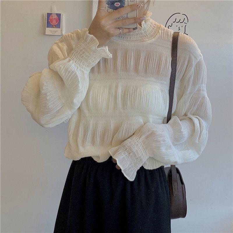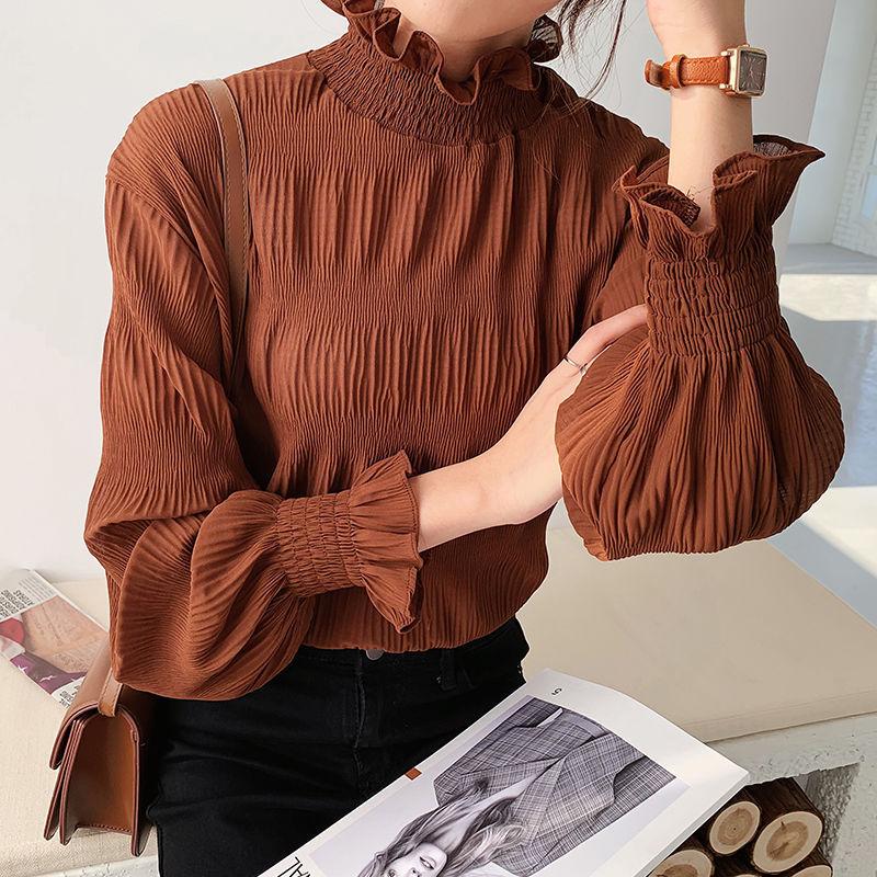 Otoño e Invierno 2025 Estilo Coreano Suelto y Versátil Camisa Elegante de Encaje de Chifón de Manga Larga Reductora de Edad Top Básico de Cuello Alto