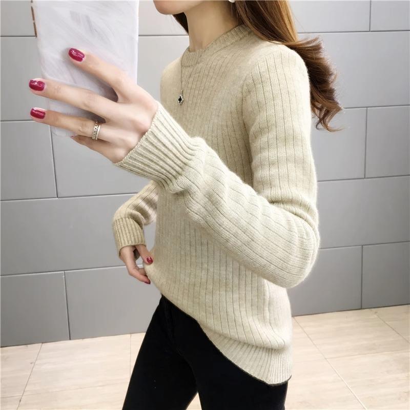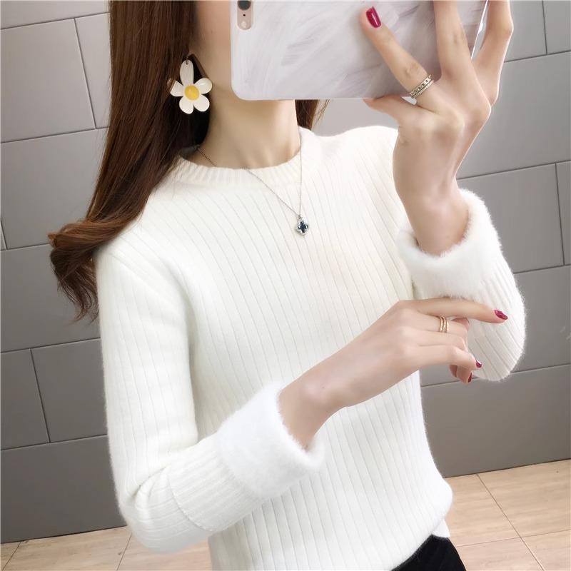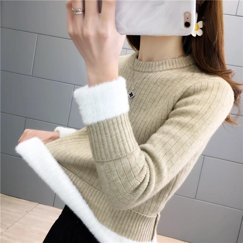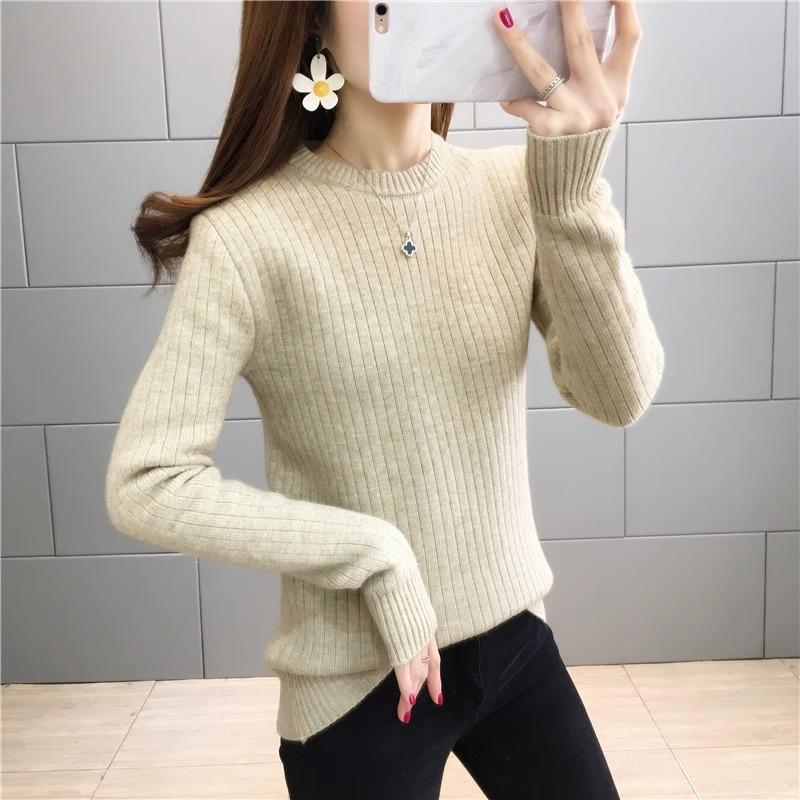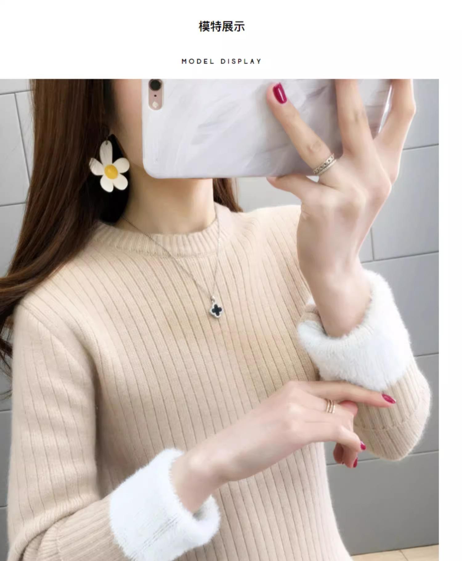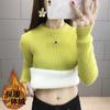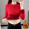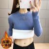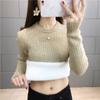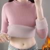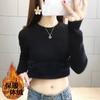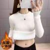 Suéter de cuello redondo grueso con forro polar para mujer, suéter de otoño e invierno 2023, camisa de manga larga interior ajustada para mujer