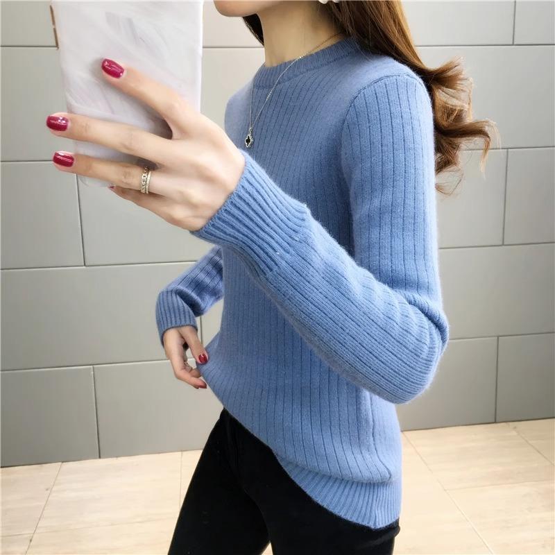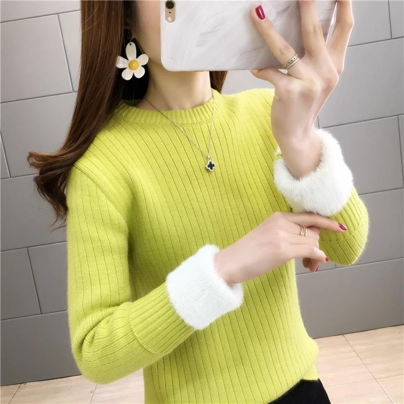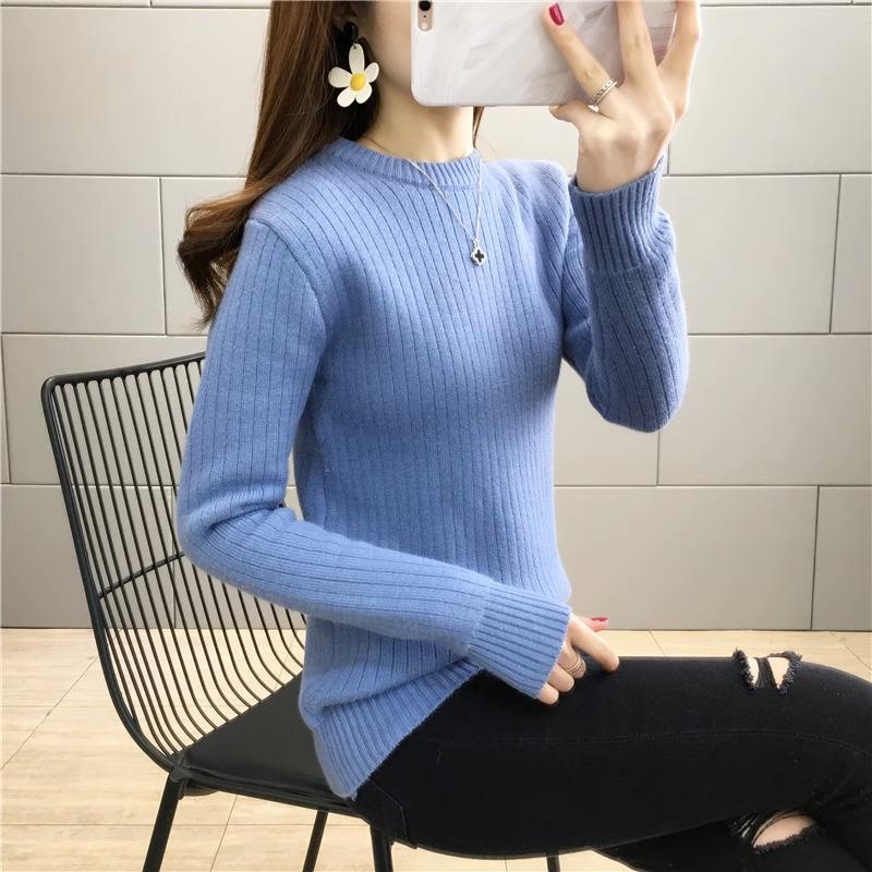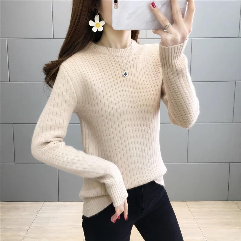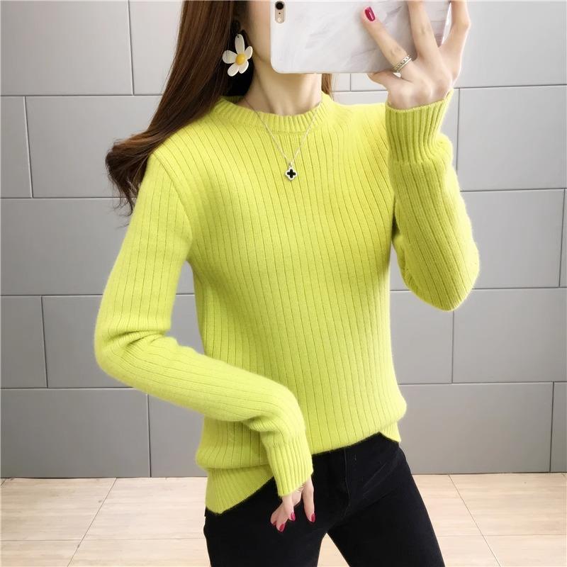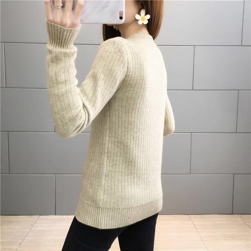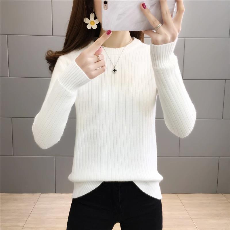 Suéter de cuello redondo grueso con forro polar para mujer, suéter de otoño e invierno 2023, camisa de manga larga interior ajustada para mujer