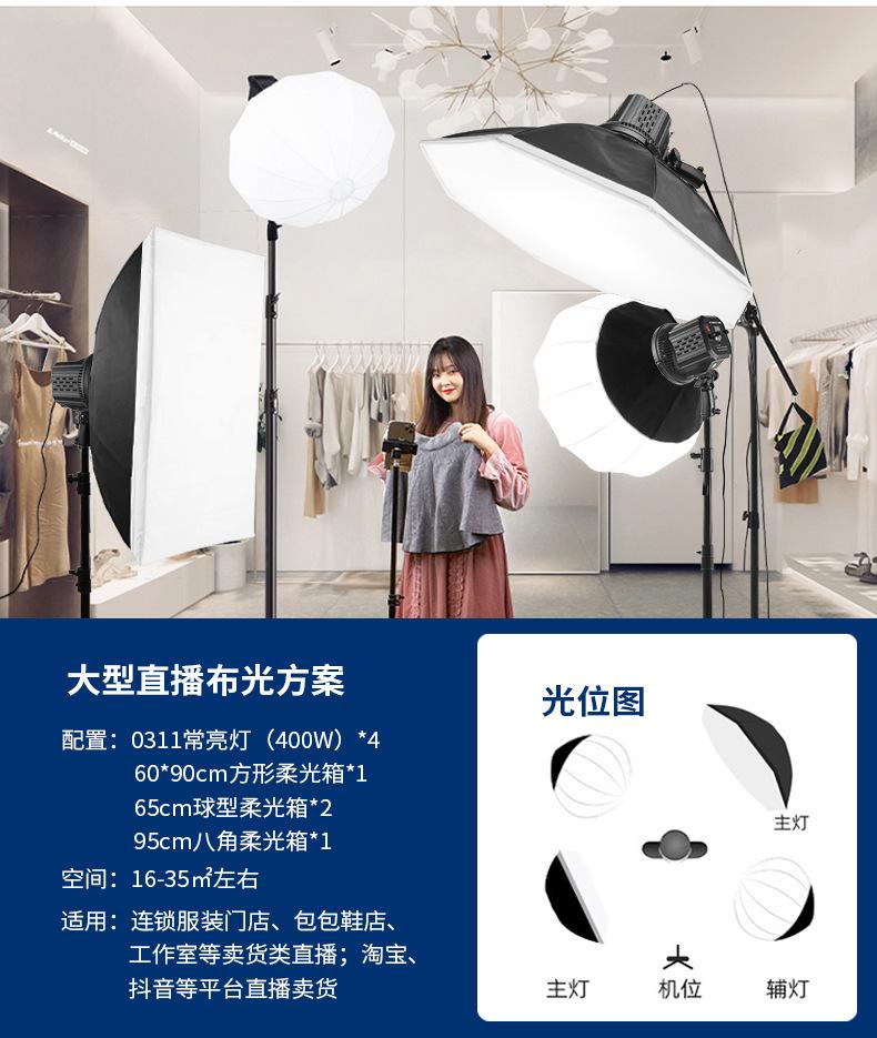 400W lamp (three-color temperature) +60*90 soft box +2.8 m tripod