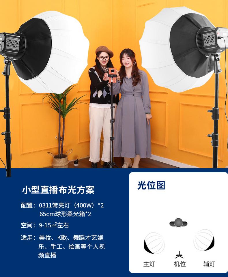 400W lamp (three color temperature) +65cm lantern ball +2.8 m tripod