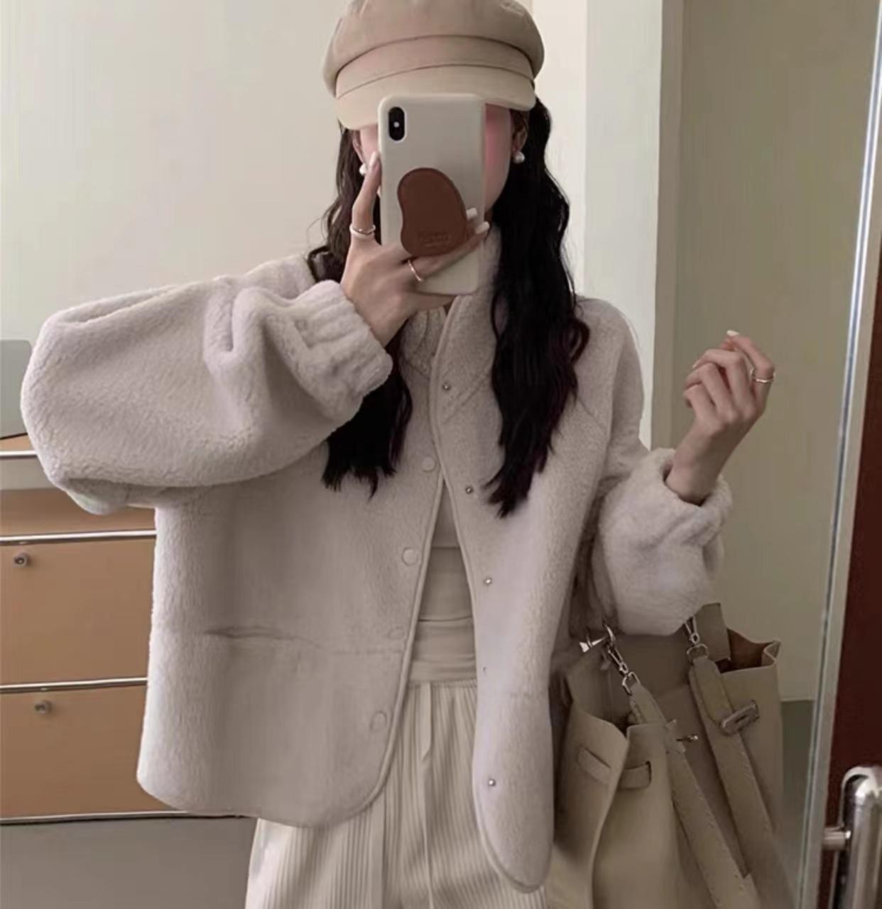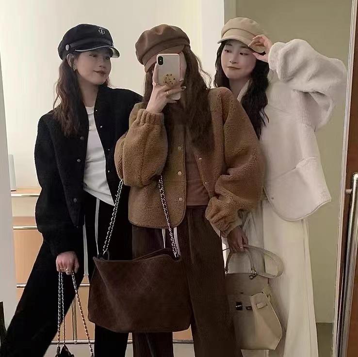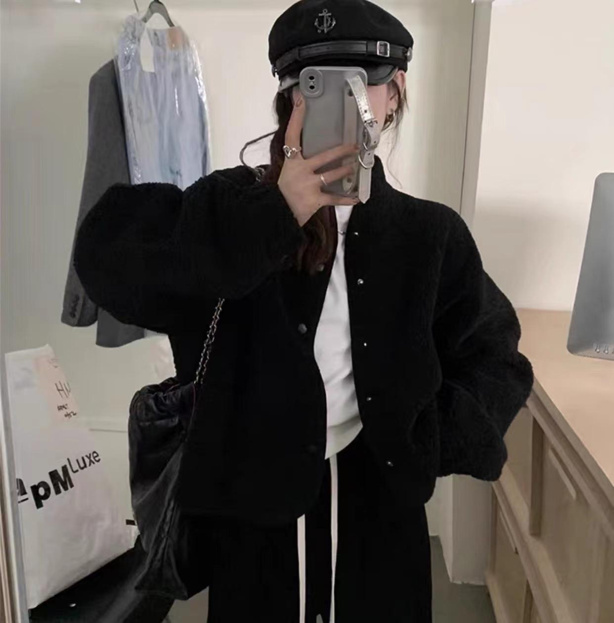 Abrigo de cachemira, ropa de mujer, otoño e invierno, nuevo, versátil, corto, para estudiantes, novias, mismo uniforme de béisbol suelto, suéter de manga larga