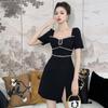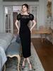 Vestido Negro Estilo Hepburn Francés con Diseño de Abertura, Cintura de Aspecto Adelgazante, Sensación de Alta Gama 2025, Sexy Ligero y Maduro