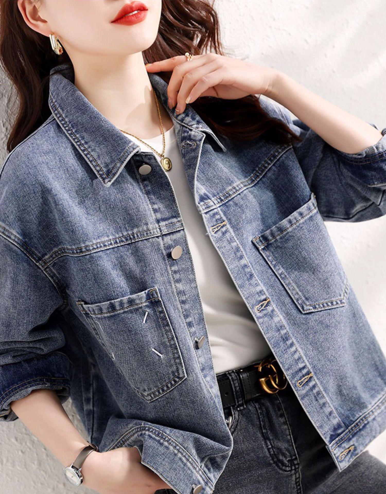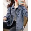 Abrigo vaquero elegante retro para mujer, corto, primavera y otoño 2024, nuevo, holgado, combinable, informal, pequeño, chaqueta superior