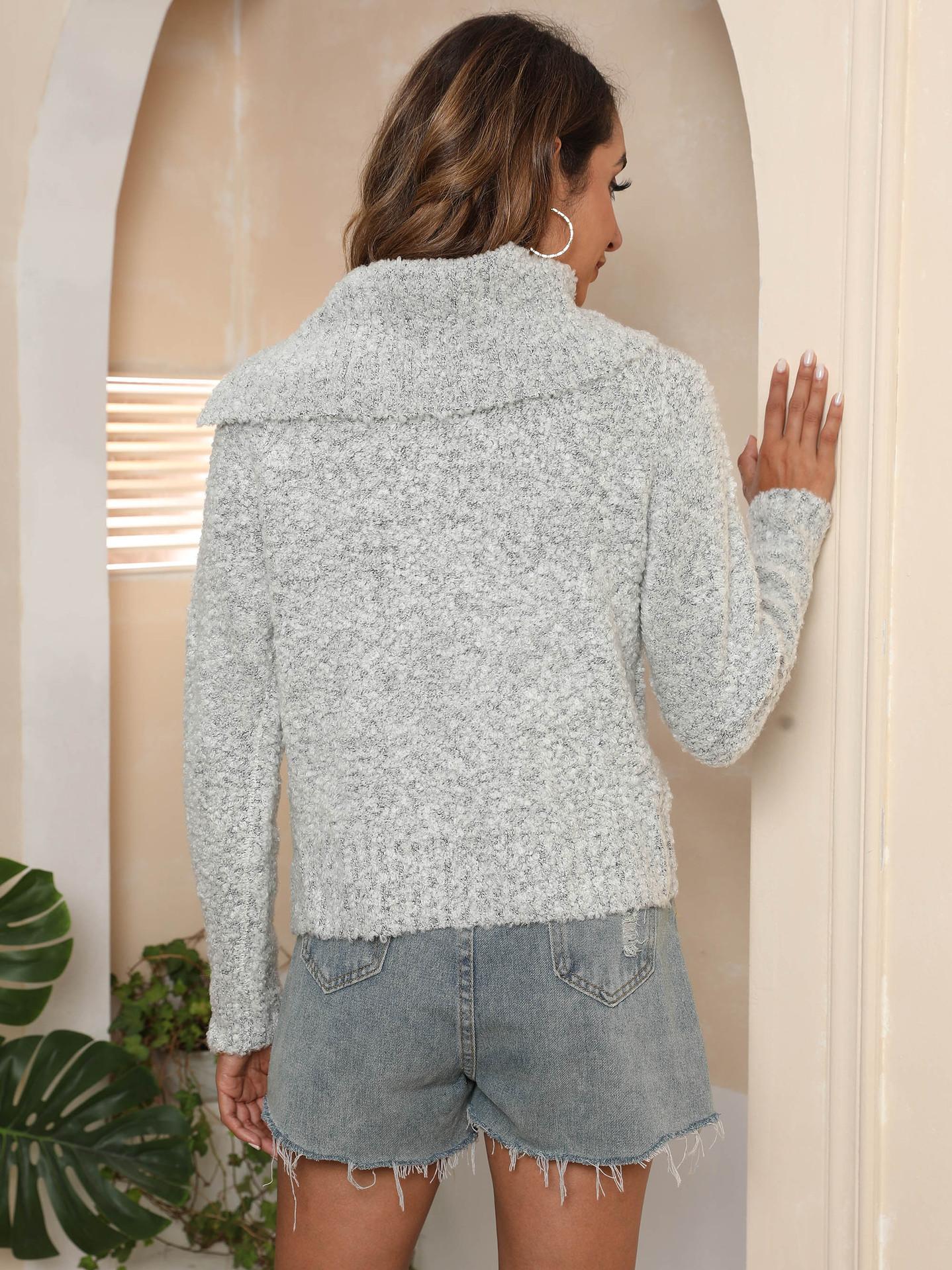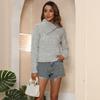 Ropa de Mujer Europea y Americana Transfronteriza Camisa Base Gruesa con Solapa Grande Irregular Suéter Pulóver de Manga Larga de Color Sólido M610