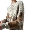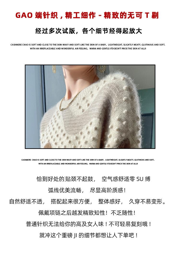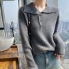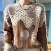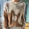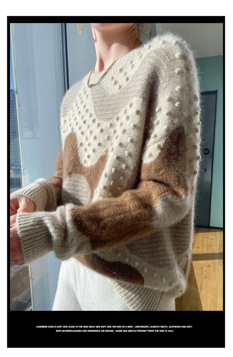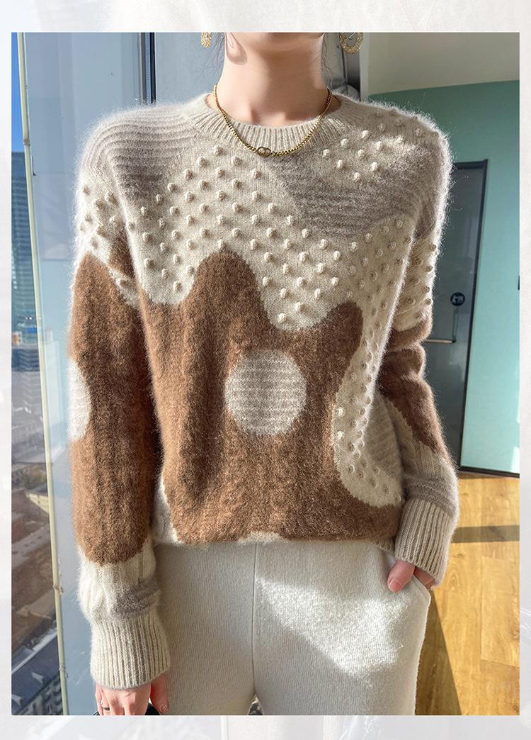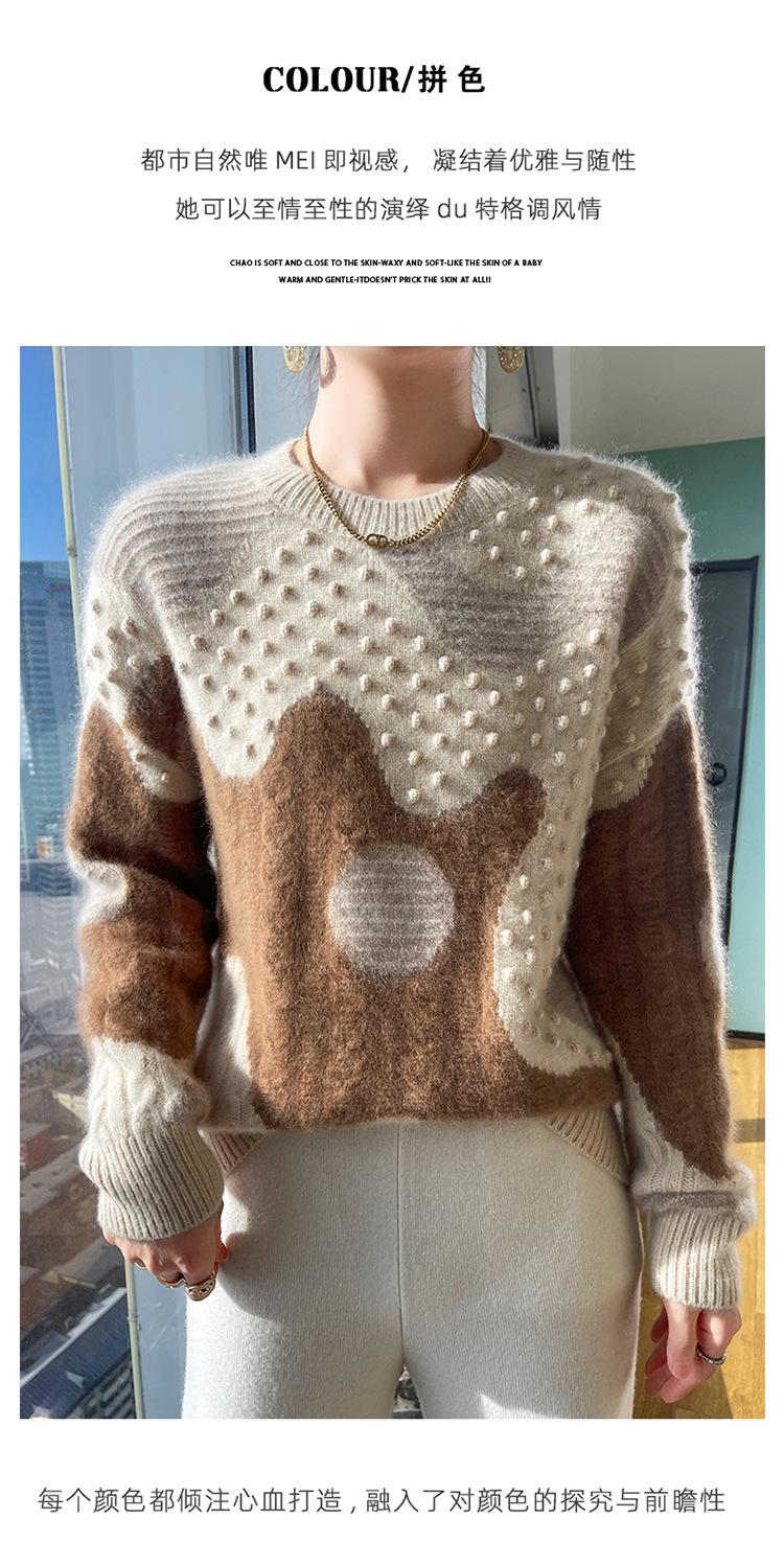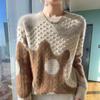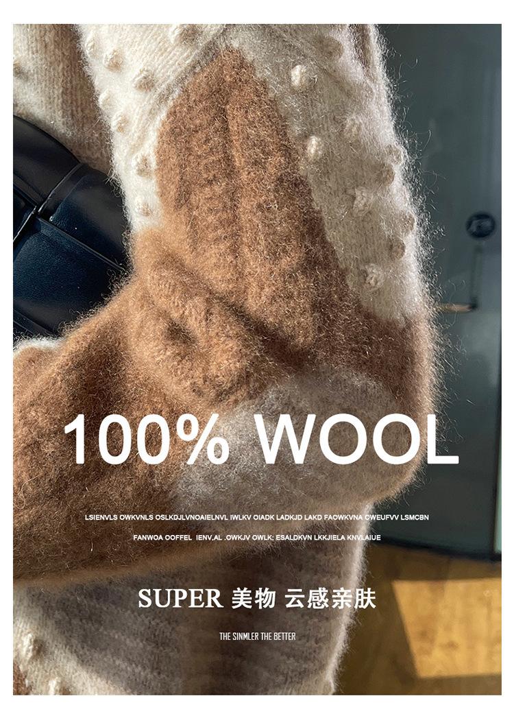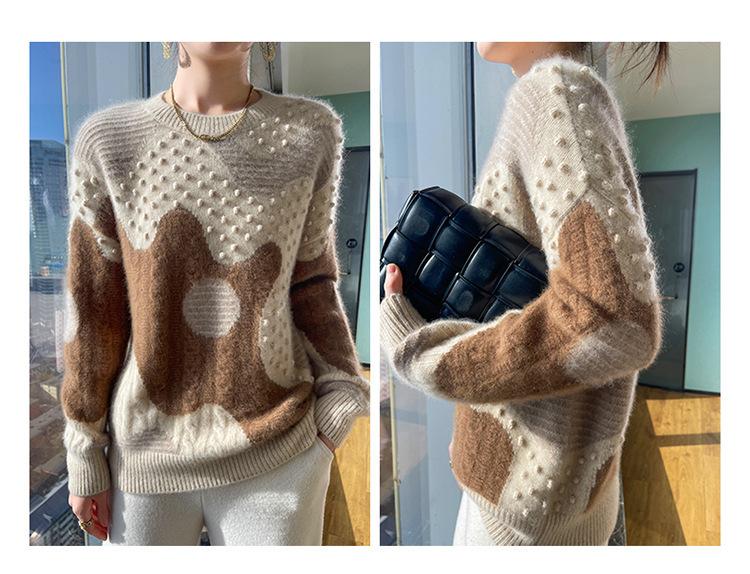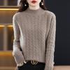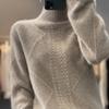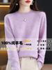 Suéter de lana 100% pura para mujer, nuevo jersey de punto holgado y cálido con cuello redondo y colores a juego para otoño e invierno.