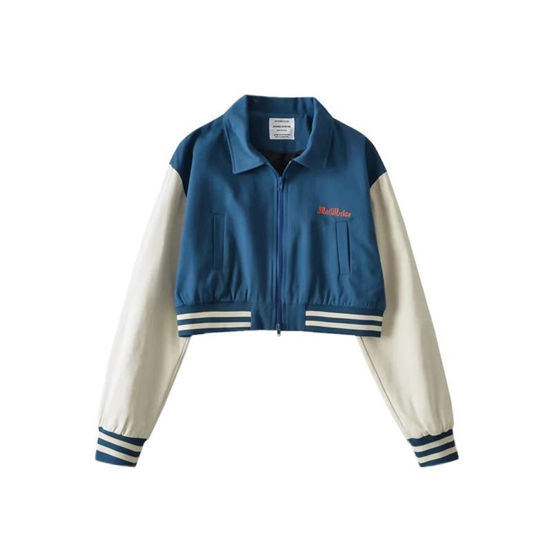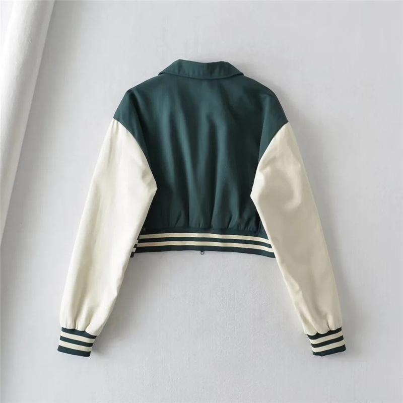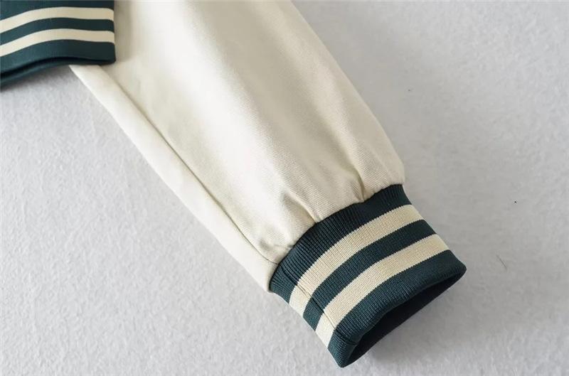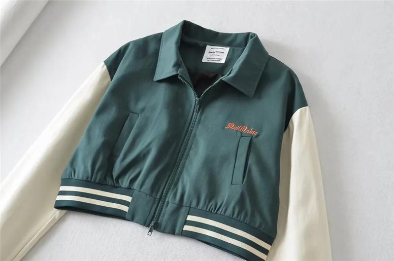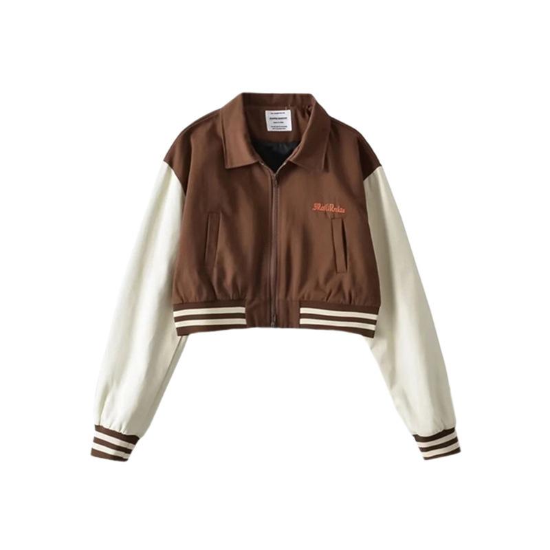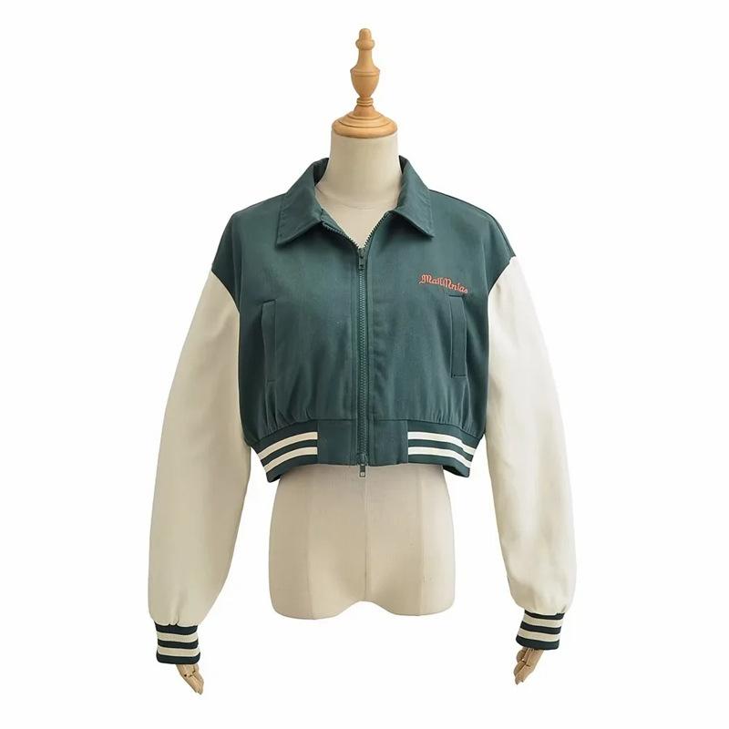 Estilo Universitario Europeo y Americano Solapa Bordada Traje de Béisbol para Mujer Holgado Casual Color en Contraste Cierre de Cremallera Chaqueta Cárdigan Corta Abrigo