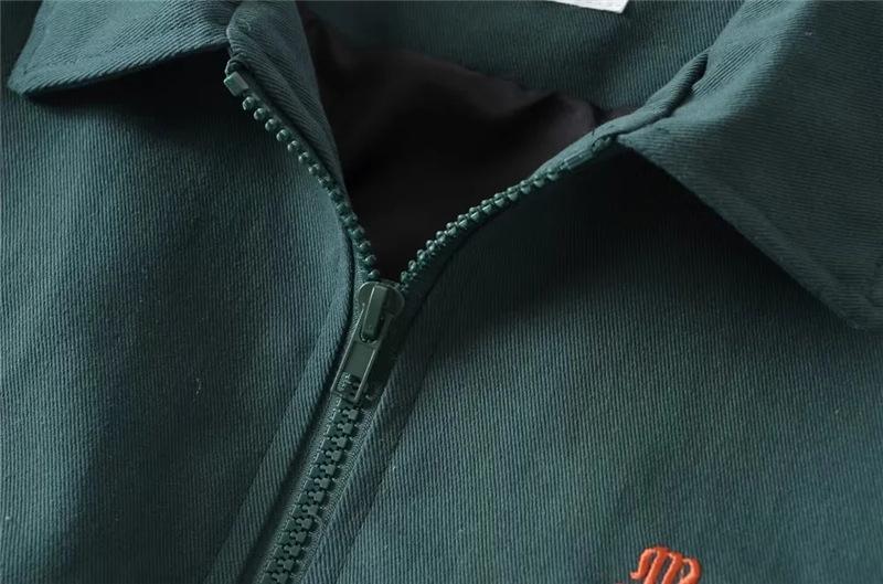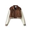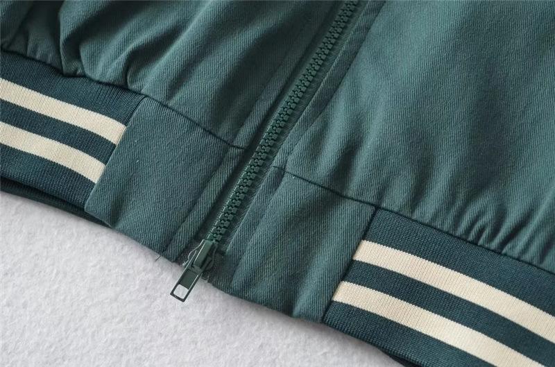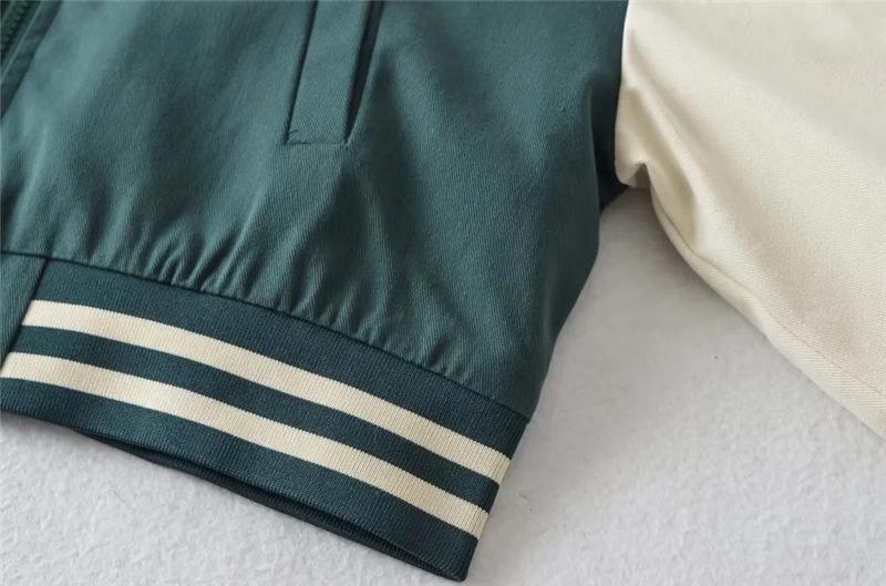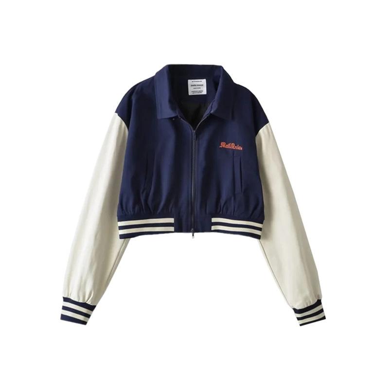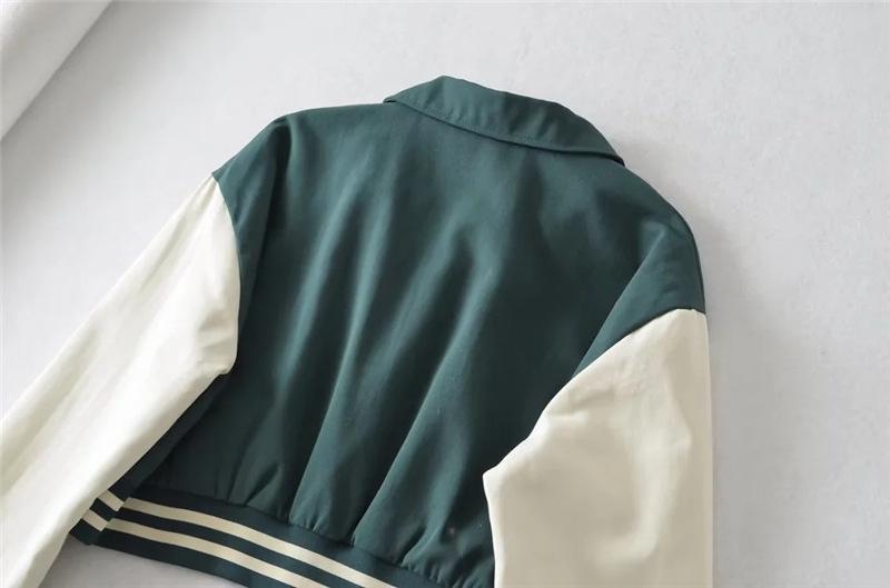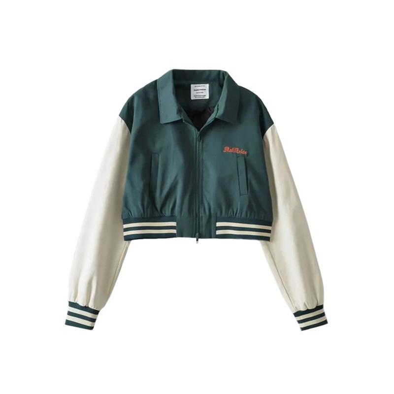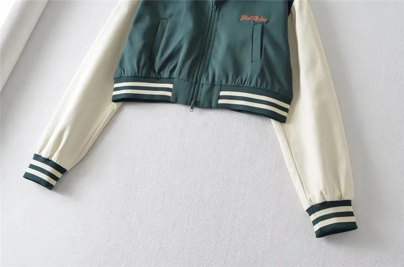 Estilo Universitario Europeo y Americano Solapa Bordada Traje de Béisbol para Mujer Holgado Casual Color en Contraste Cierre de Cremallera Chaqueta Cárdigan Corta Abrigo