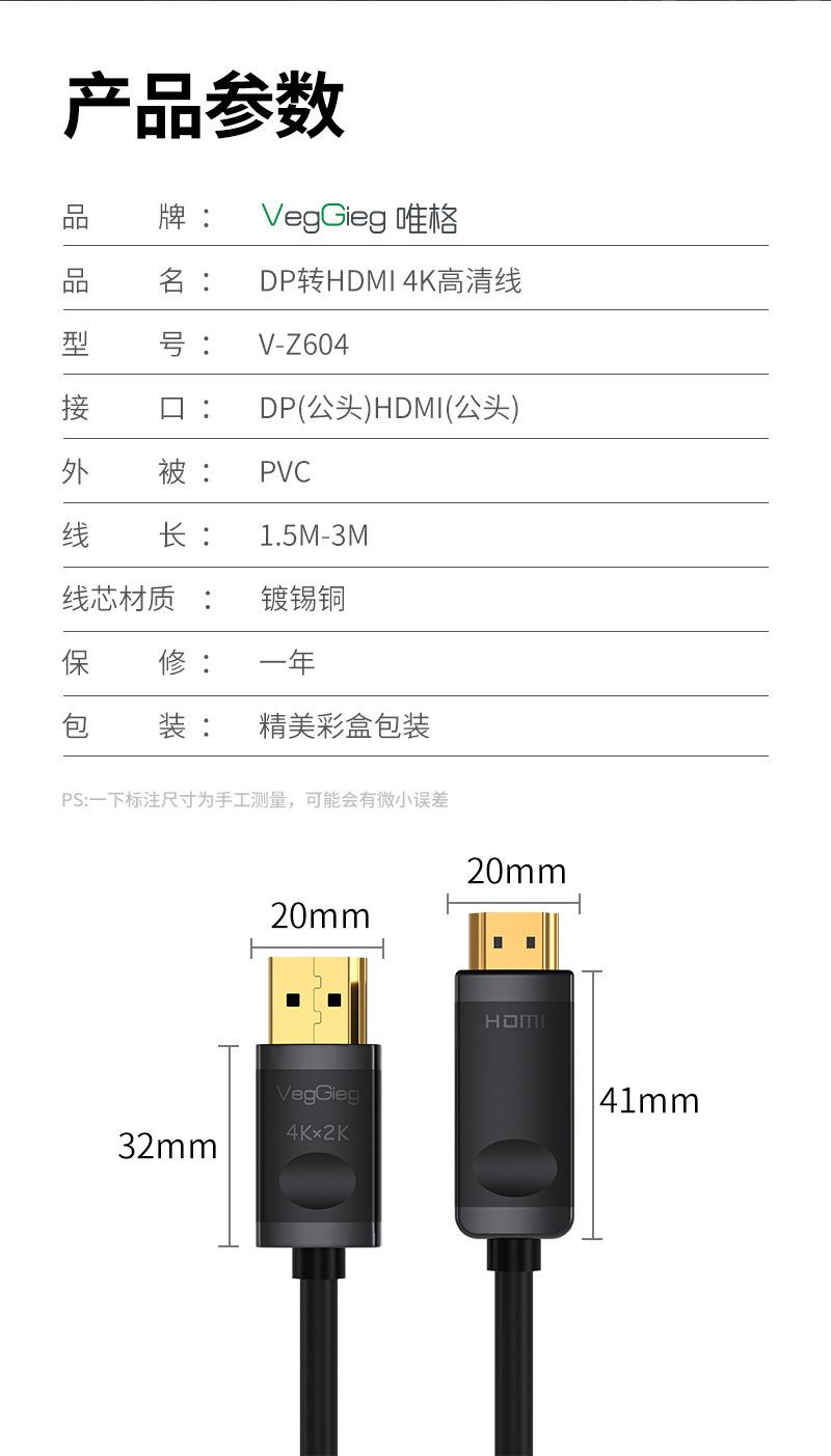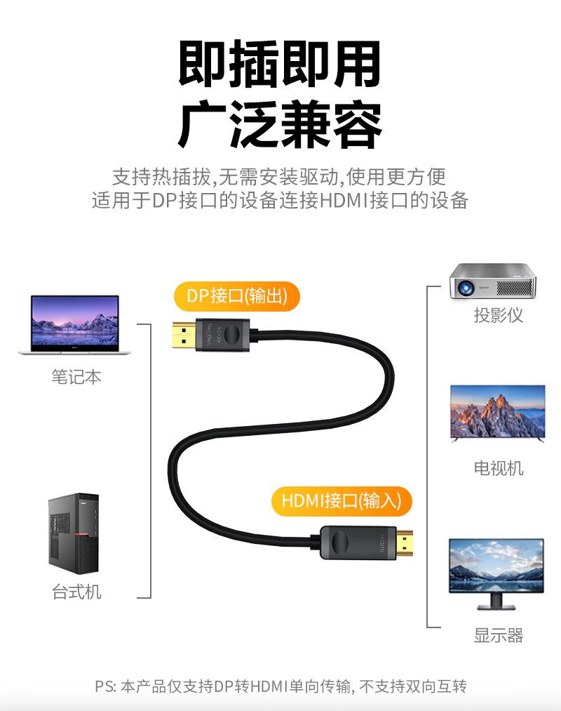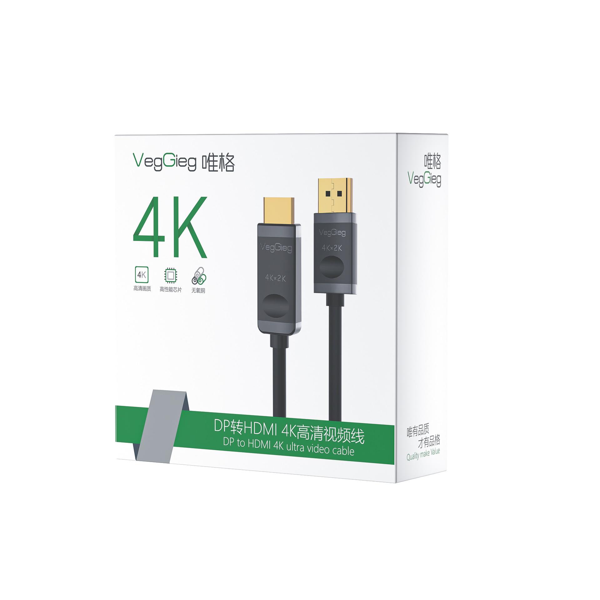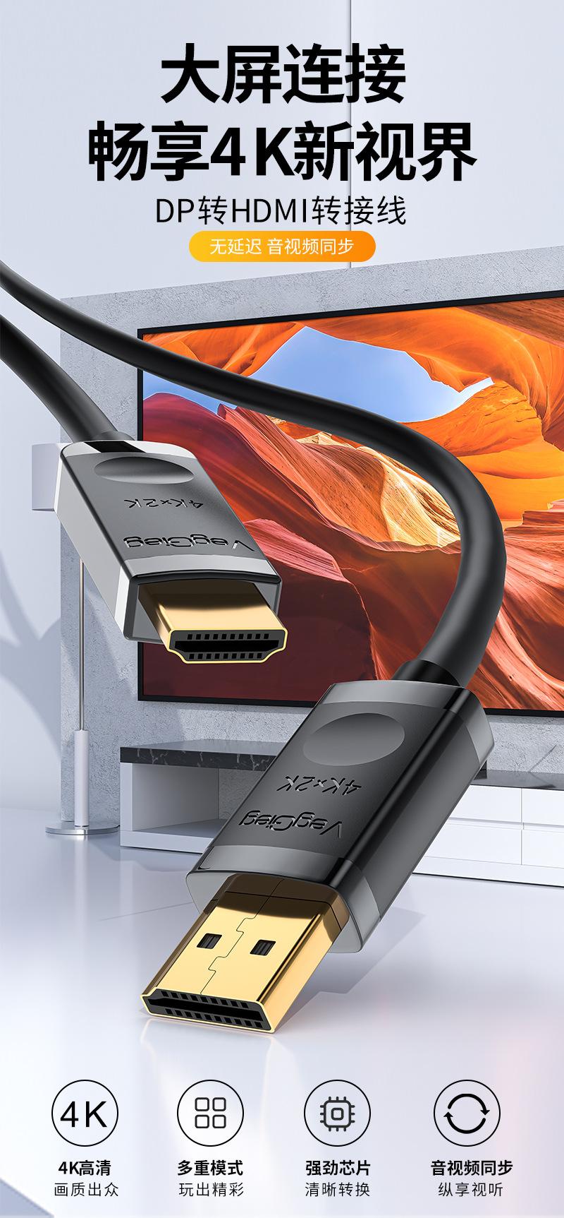 Adaptador de DP a HDMI grande y ligero para portátil, TV, monitor de computadora, video macho a macho, línea 4K HD
