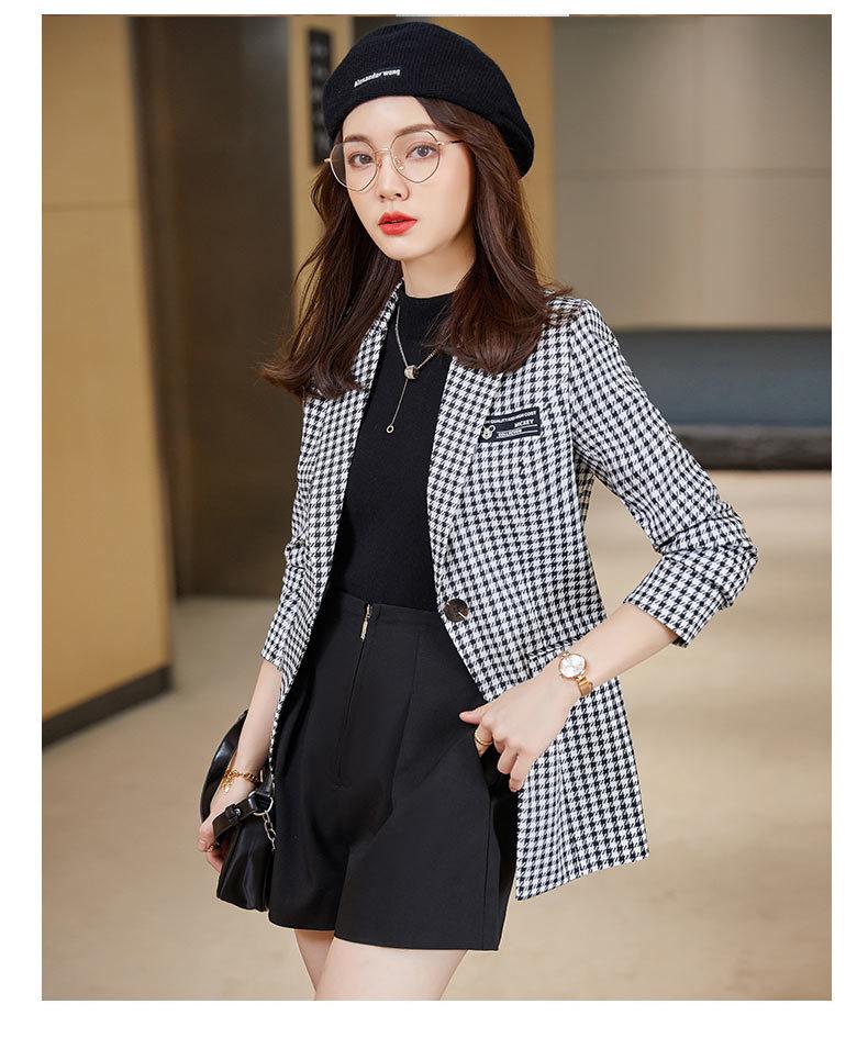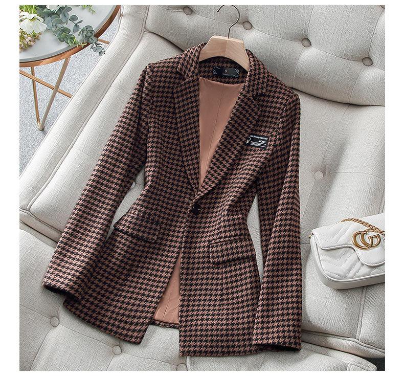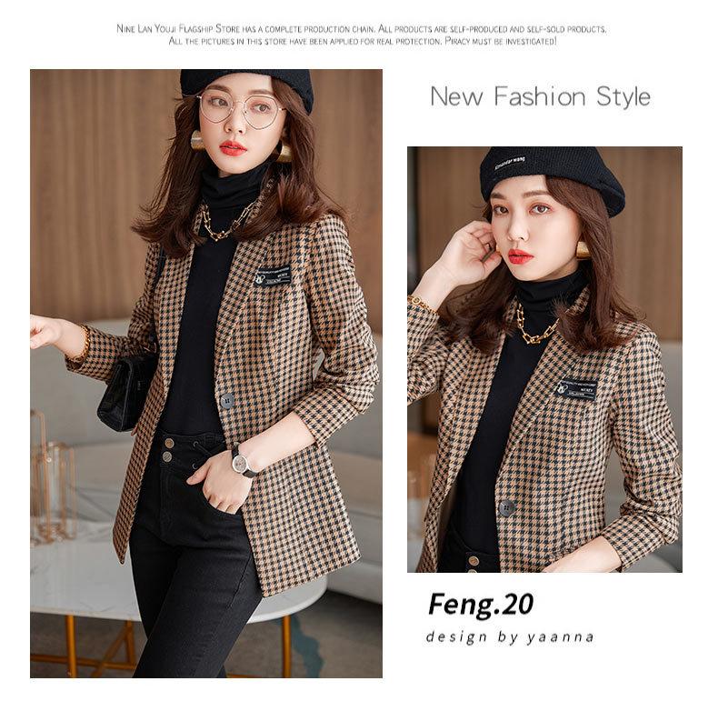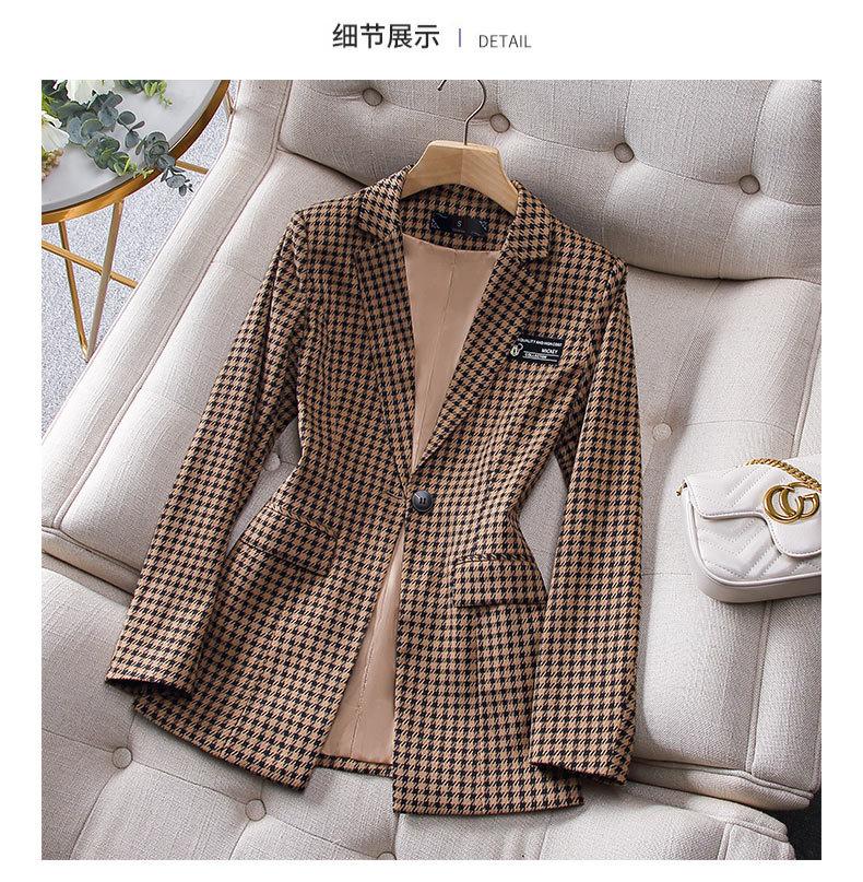 Chaqueta de traje a cuadros para mujer, primavera y otoño de 2023, estilo coreano, elegante, de celebridad de Internet, informal, retro, pequeña, top de traje.