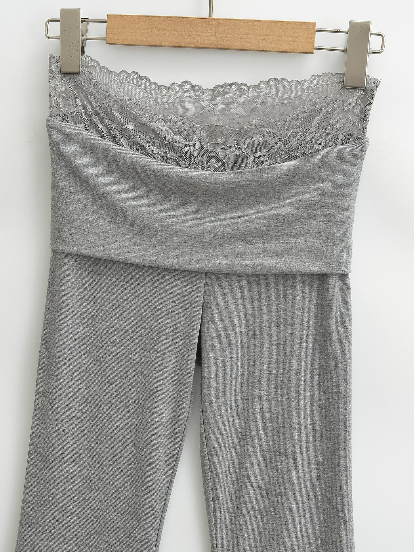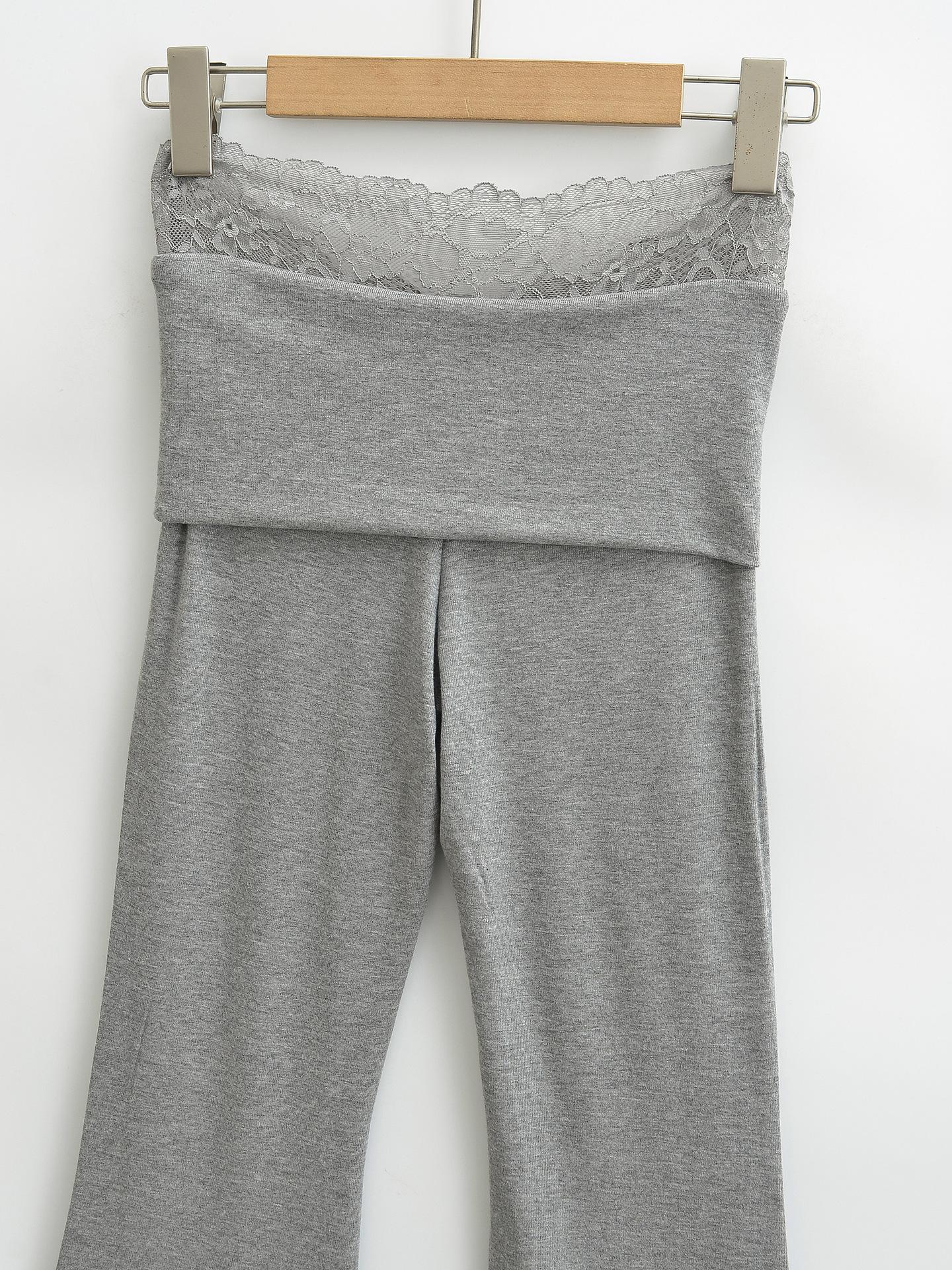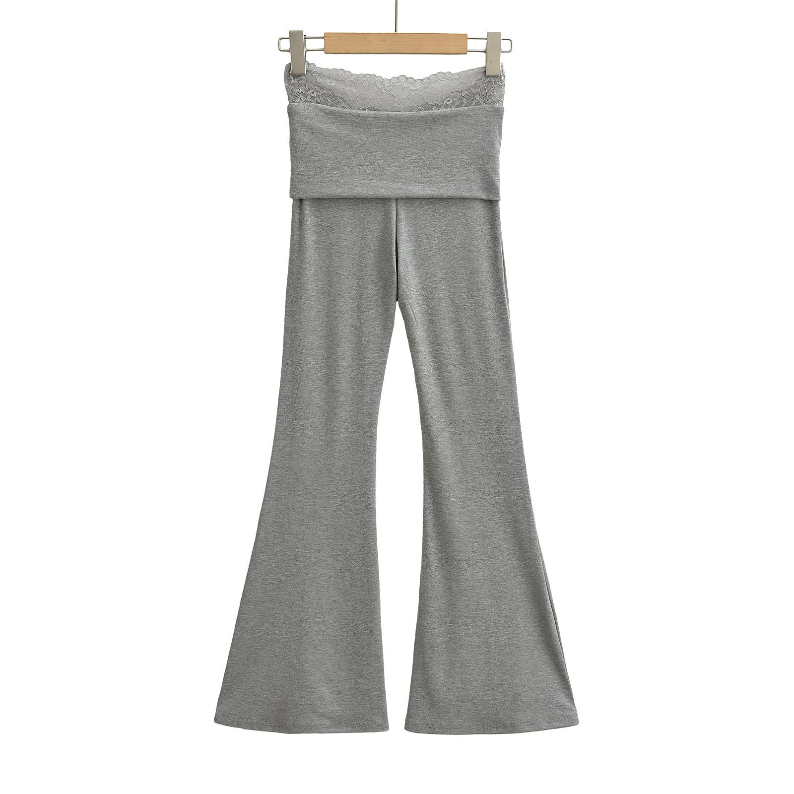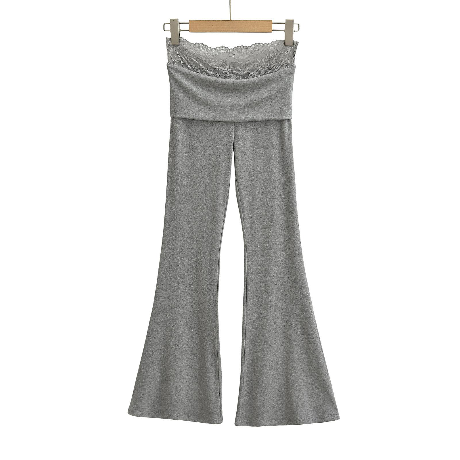 2410-24 Primavera Nuevo Estilo Europeo y Americano Spice Girls Sexy Deseo Puro Encaje Cintura Baja Casual Pantalones Campana