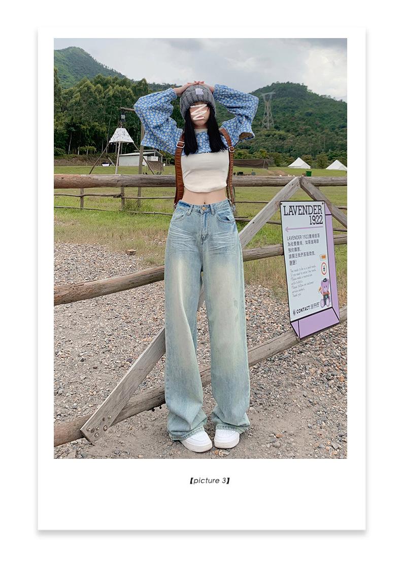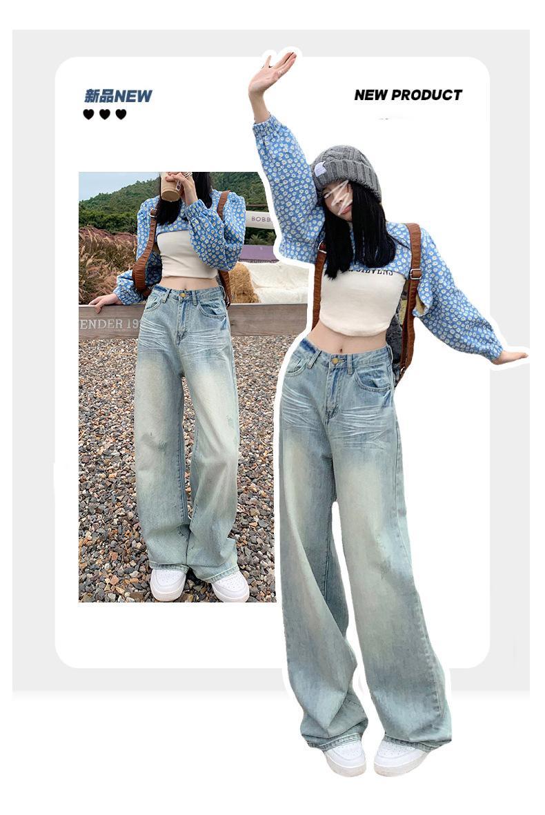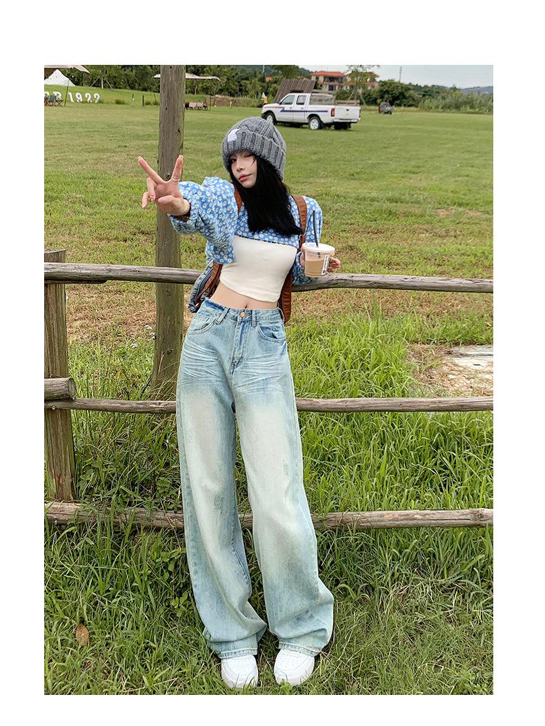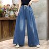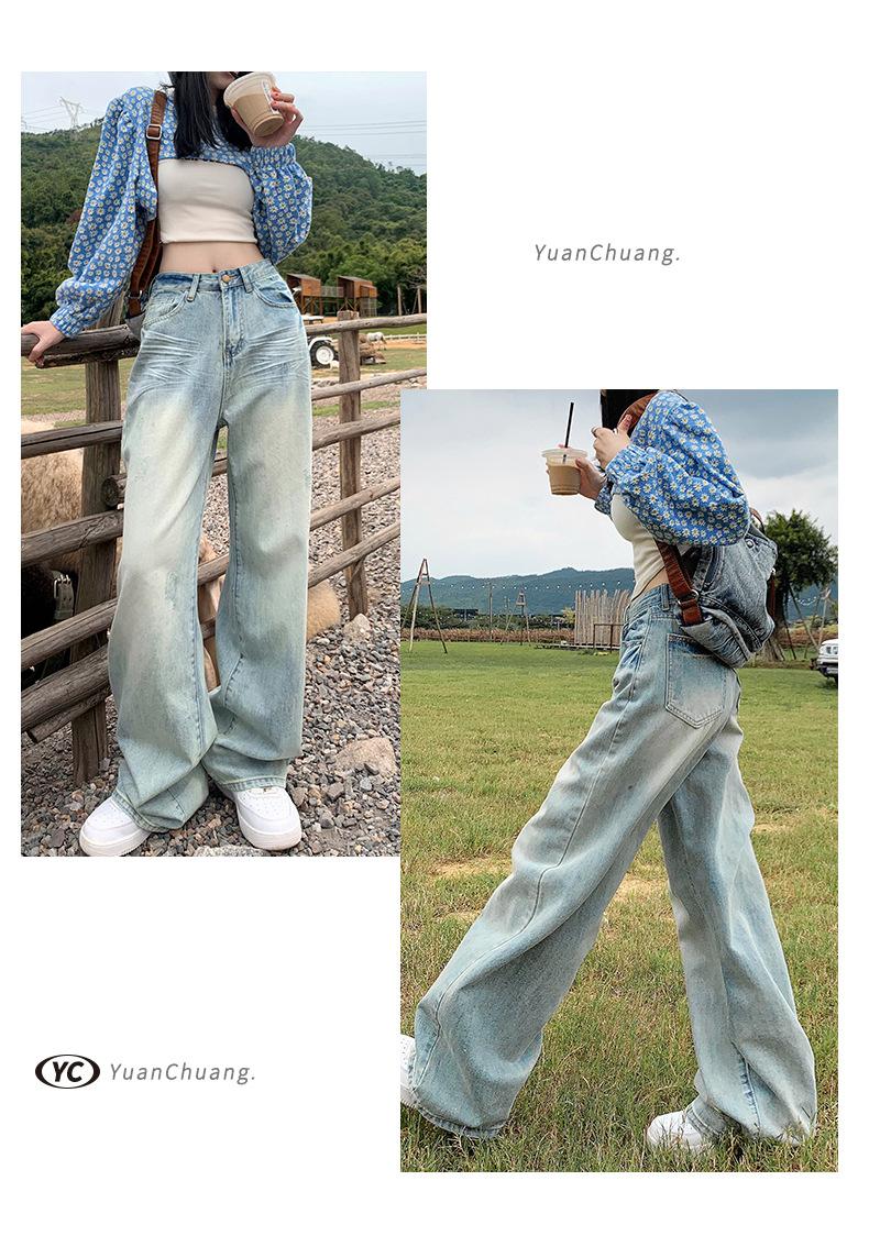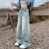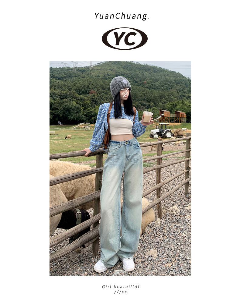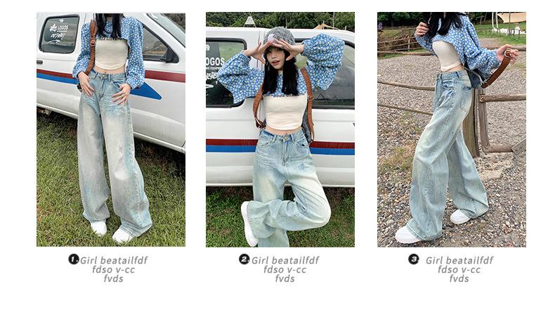 Ropa de mujer de seda naranja #2024 primavera retro americano jeans lavados para mujer pierna ancha suelta color claro caída pantalones rectos