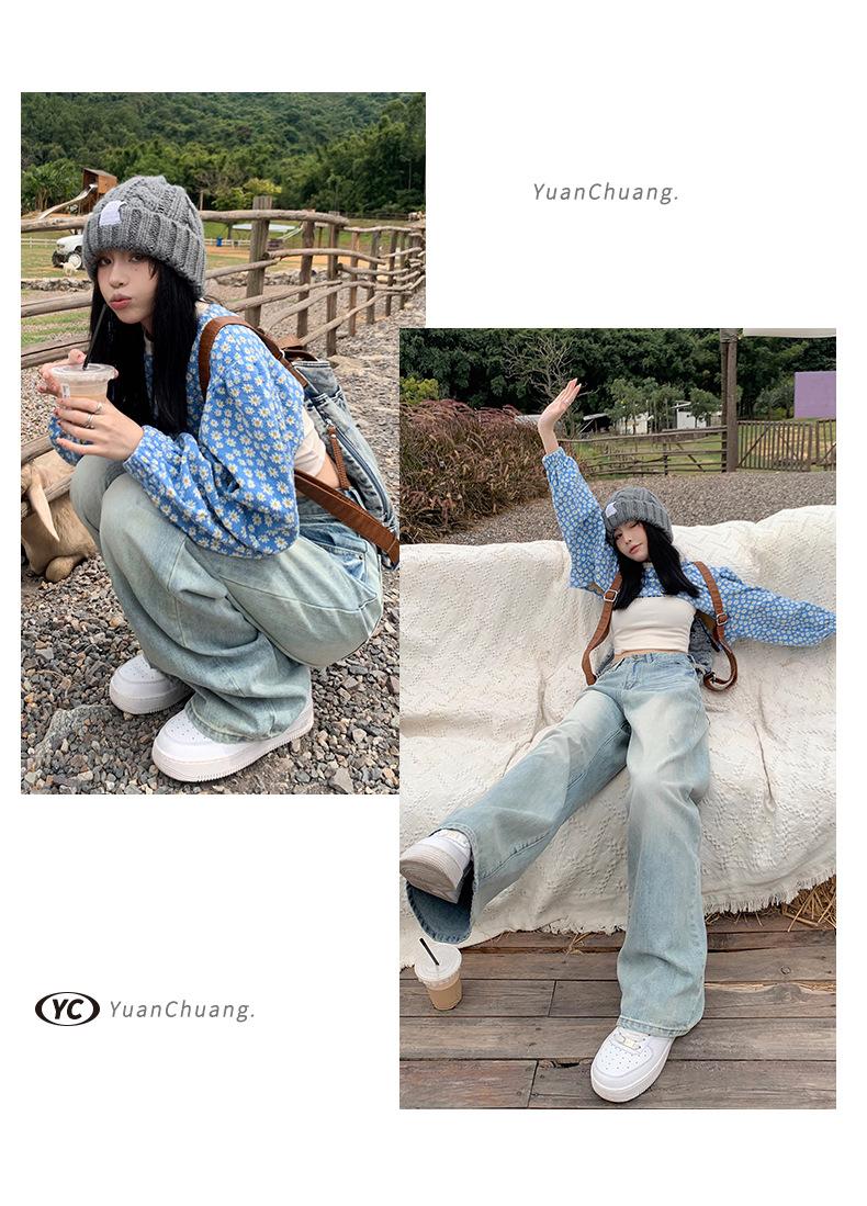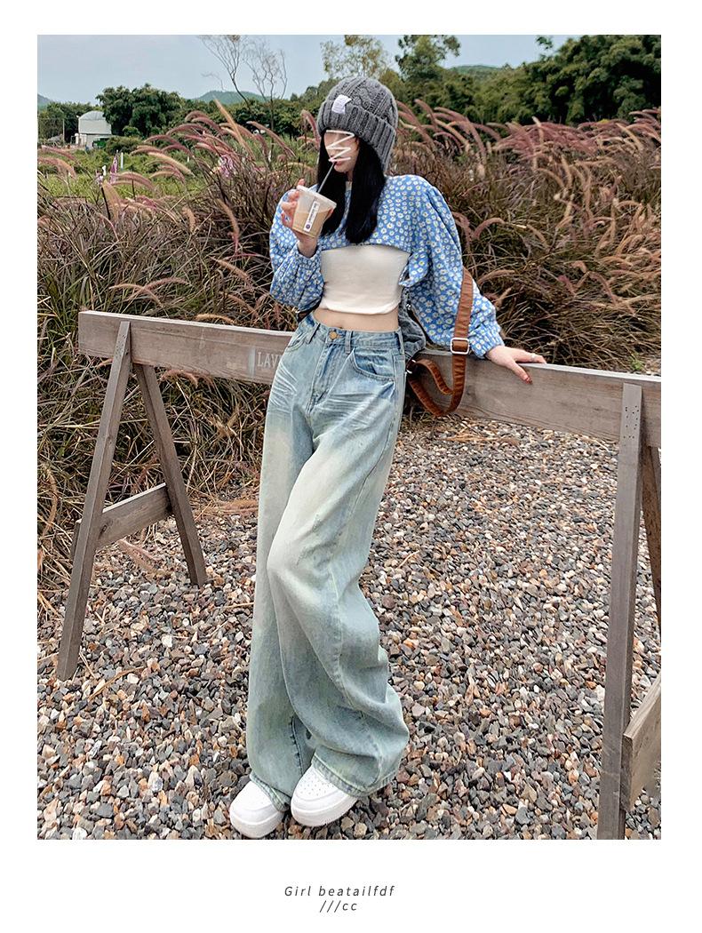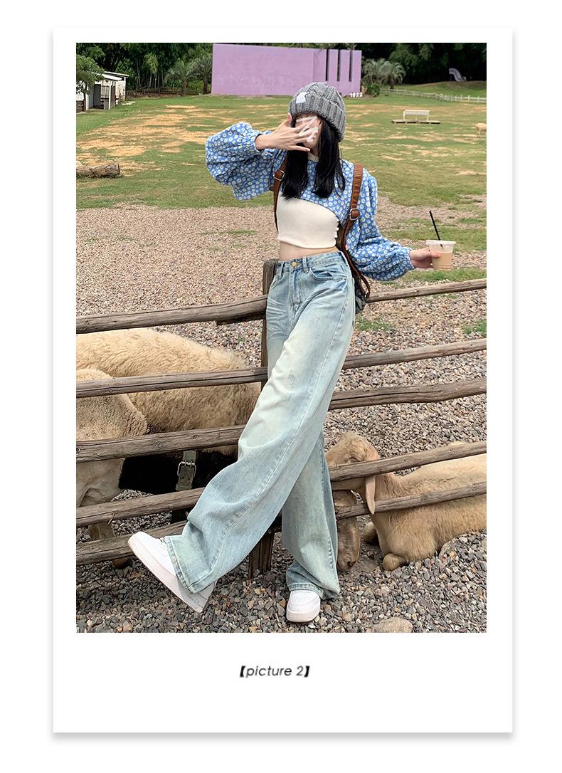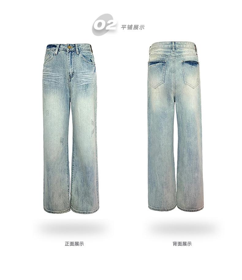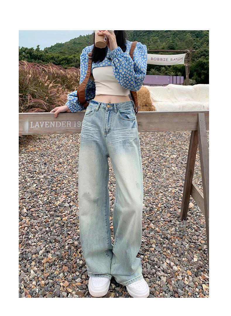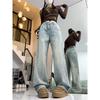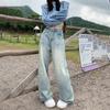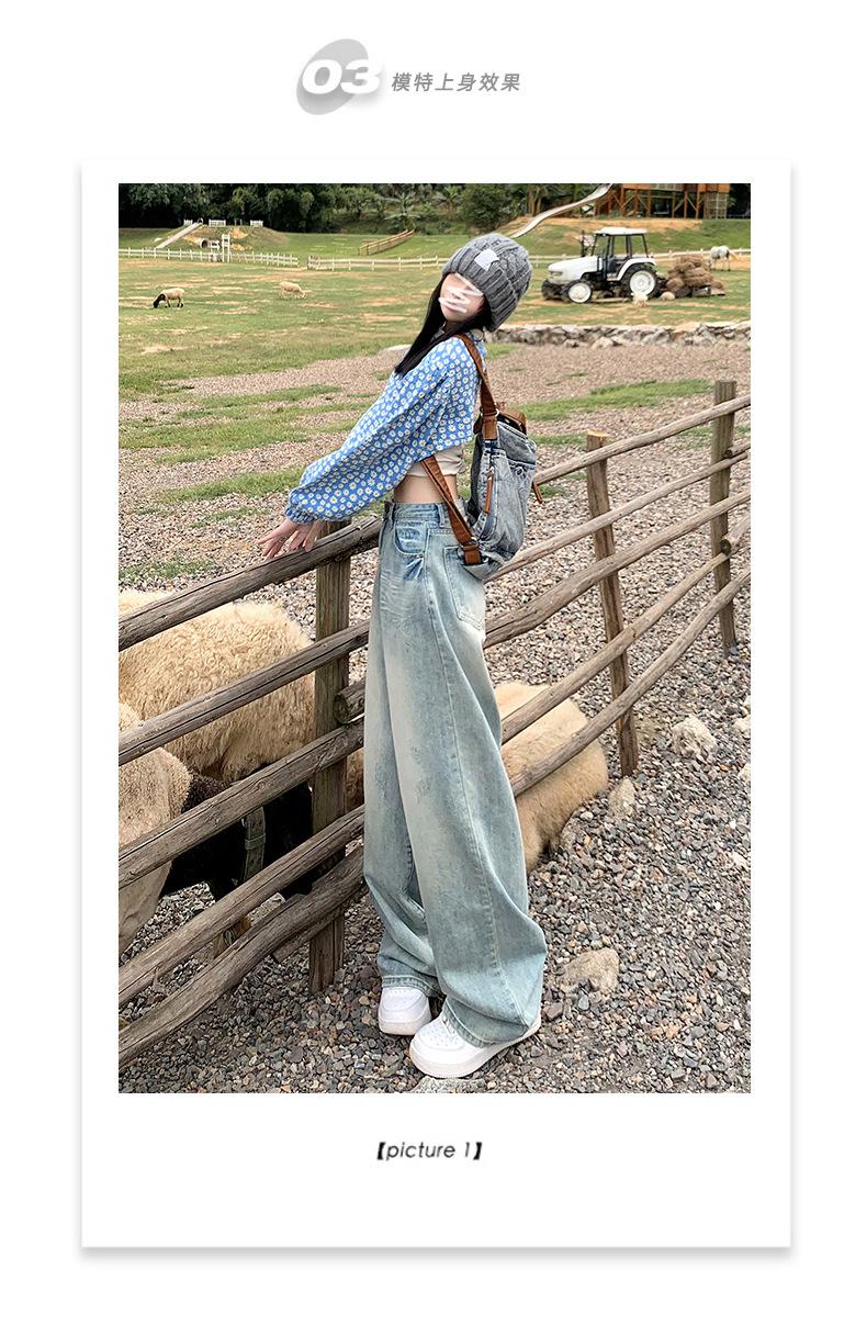 Ropa de mujer de seda naranja #2024 primavera retro americano jeans lavados para mujer pierna ancha suelta color claro caída pantalones rectos