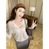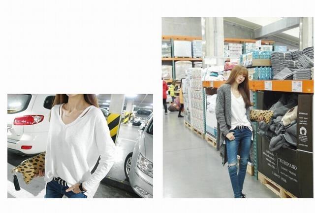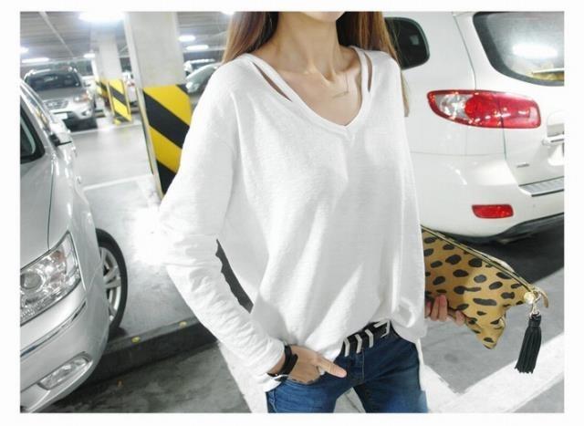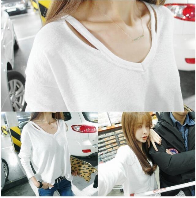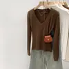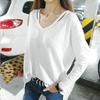 Ropa de Primavera y Otoño 2025 Otoño e Invierno Estilo Coreano Talla Grande Camiseta de Fondo de Manga Larga para Mujer Blanca Cuello en V Largo Medio Casual Suelta