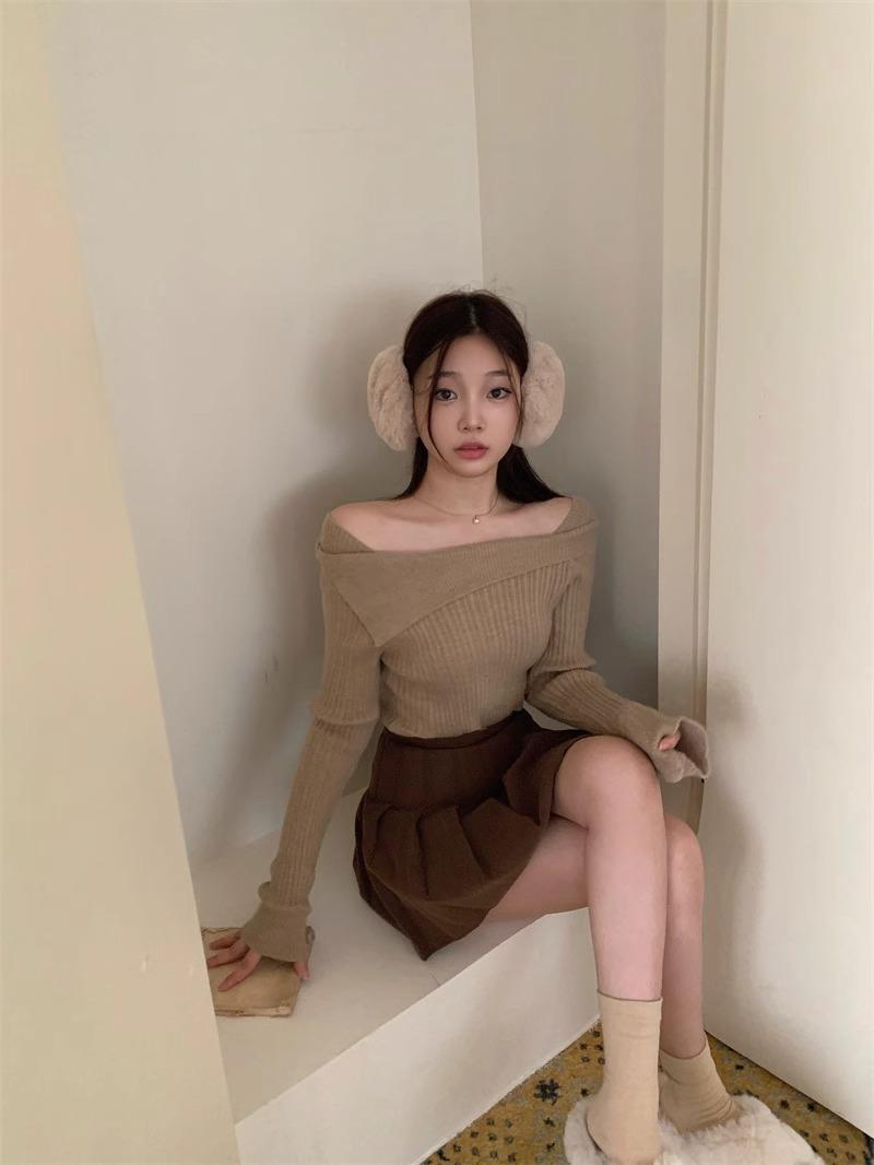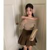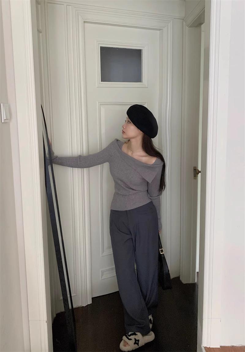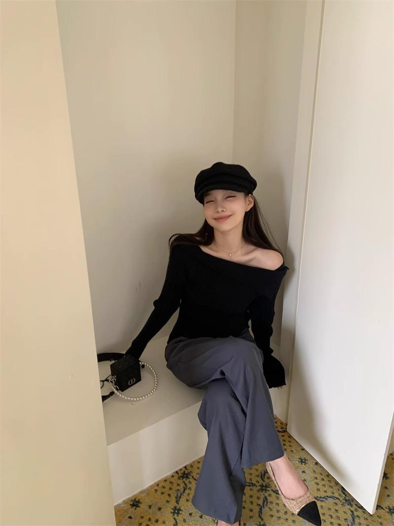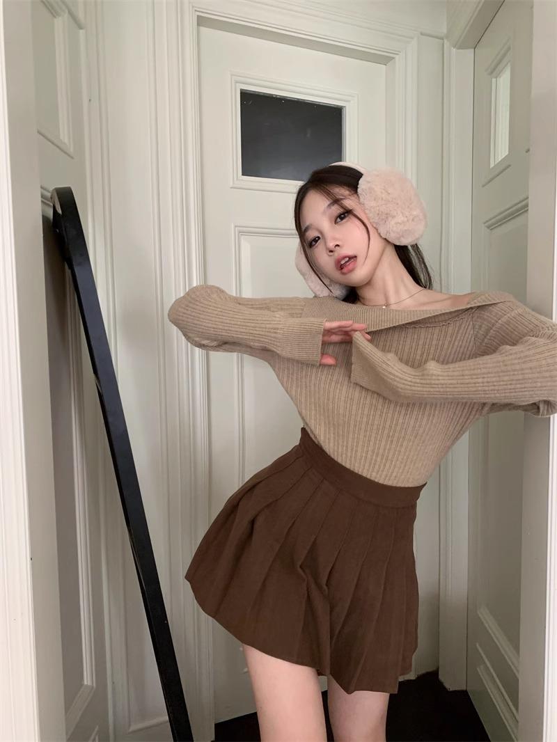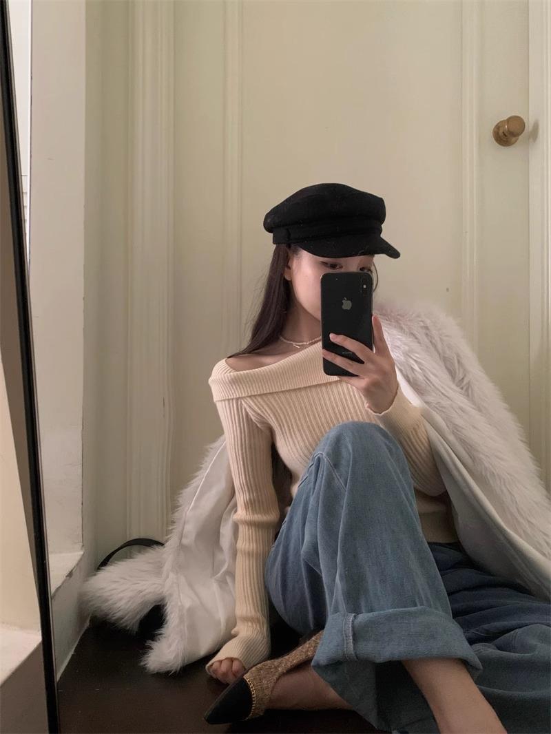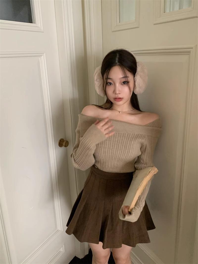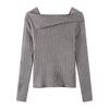 Top popular de otoño temprano para mujer con hombros descubiertos, suéter básico coreano chic de color sólido