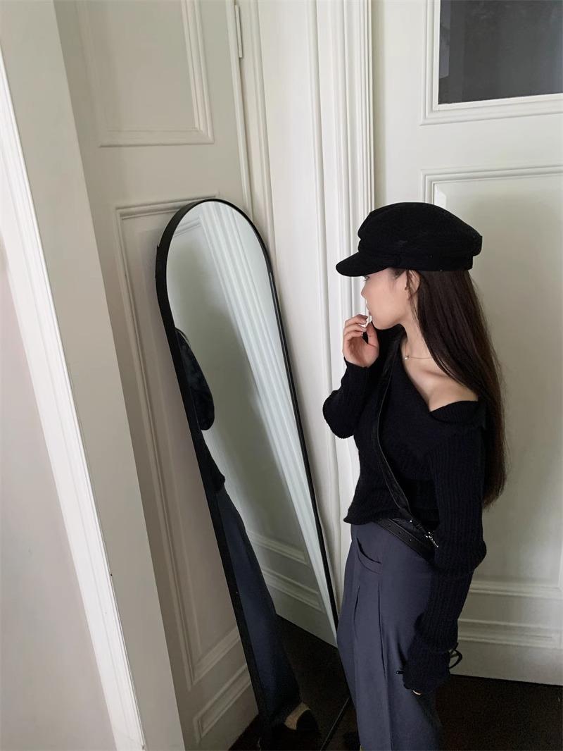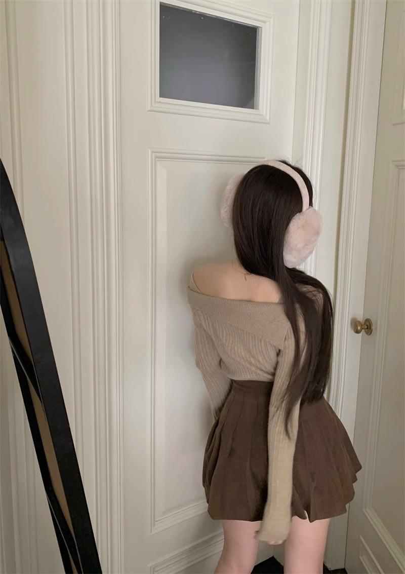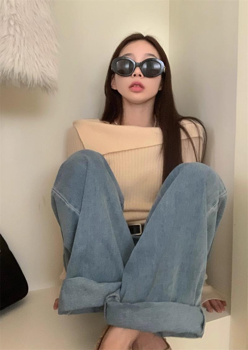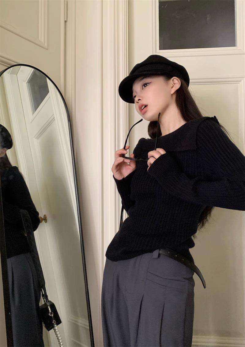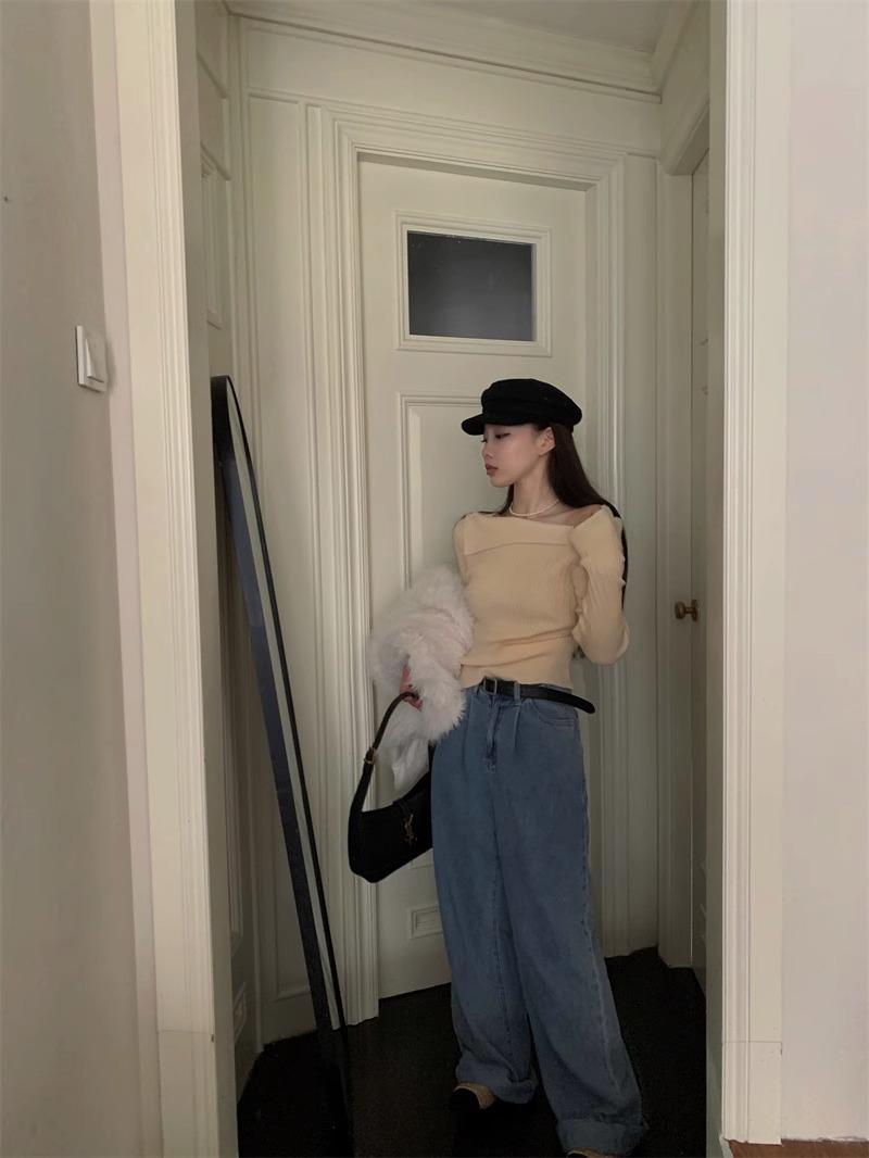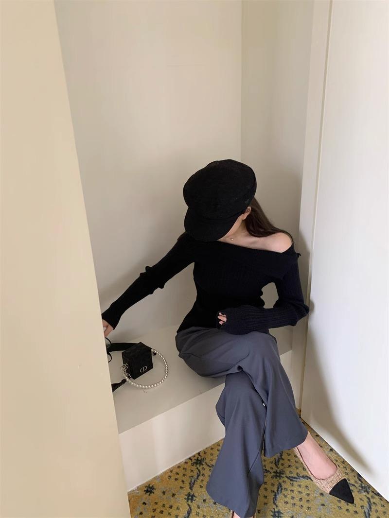 Top popular de otoño temprano para mujer con hombros descubiertos, suéter básico coreano chic de color sólido
