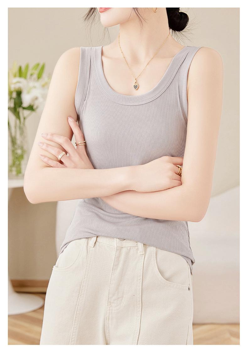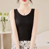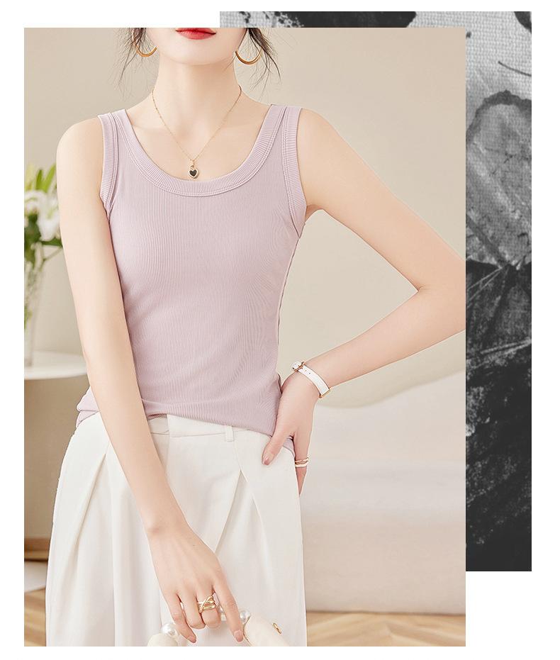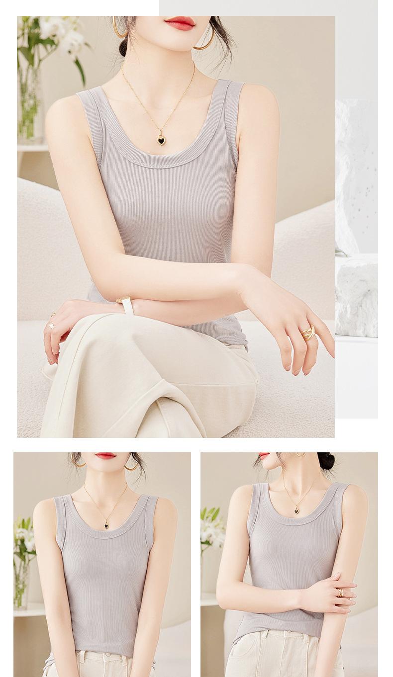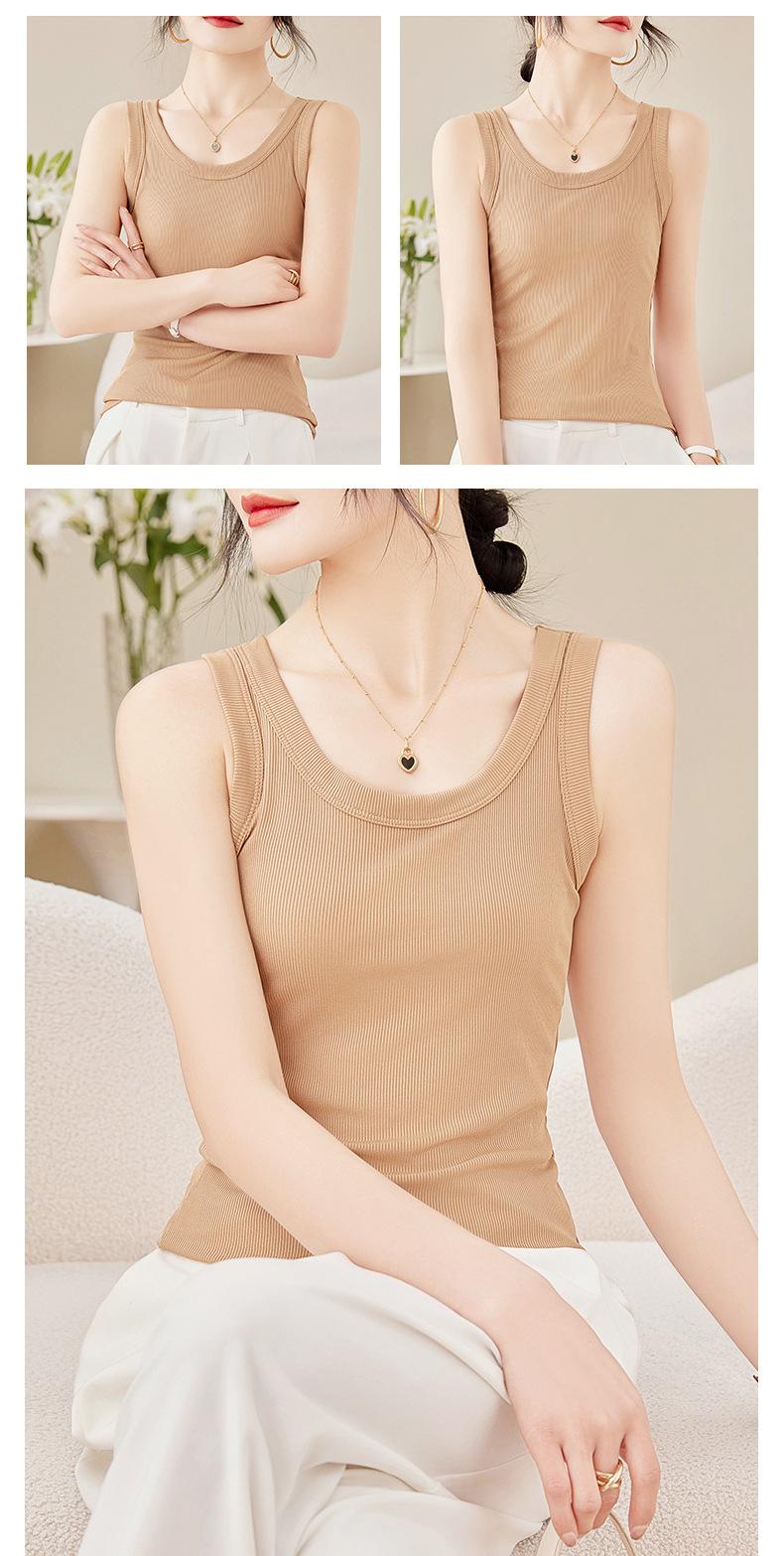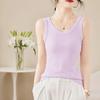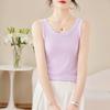 Camisola de verano con cuello en U para mujer, sin mangas, ajustada, con base interior, chaleco pequeño que combina con todo
