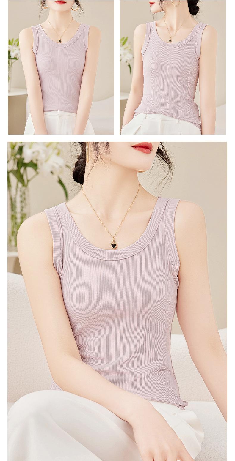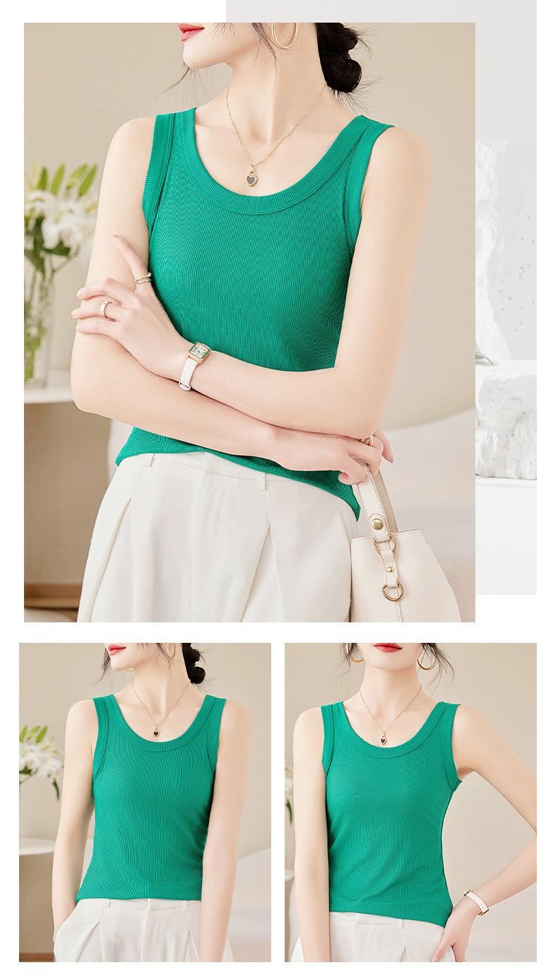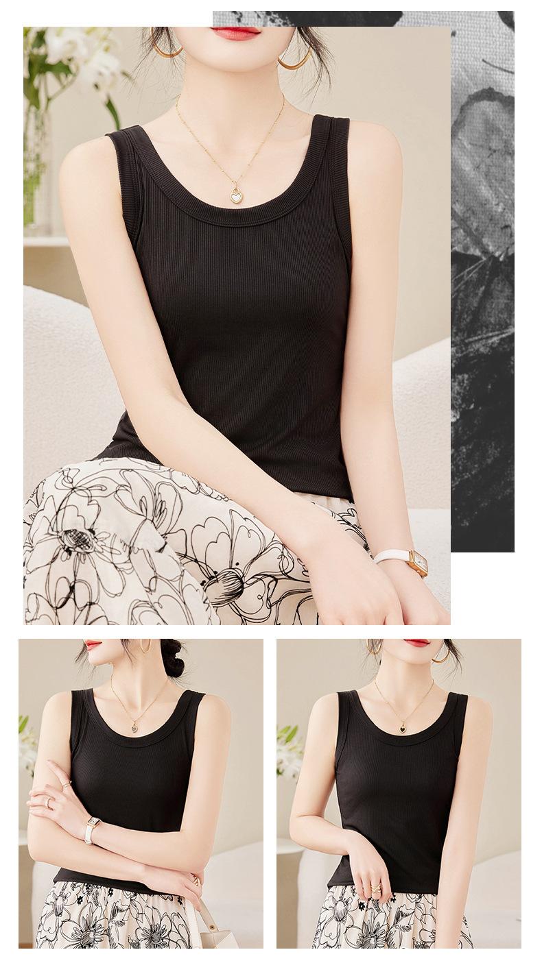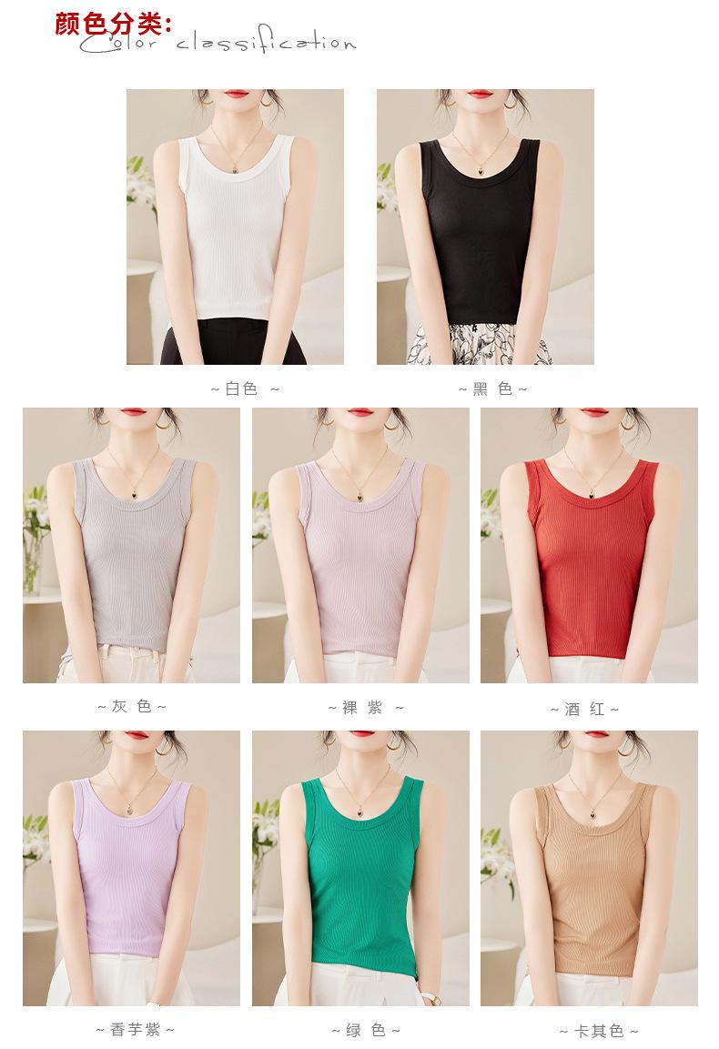 Camisola de verano con cuello en U para mujer, sin mangas, ajustada, con base interior, chaleco pequeño que combina con todo