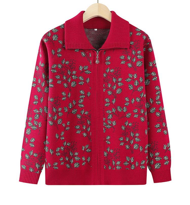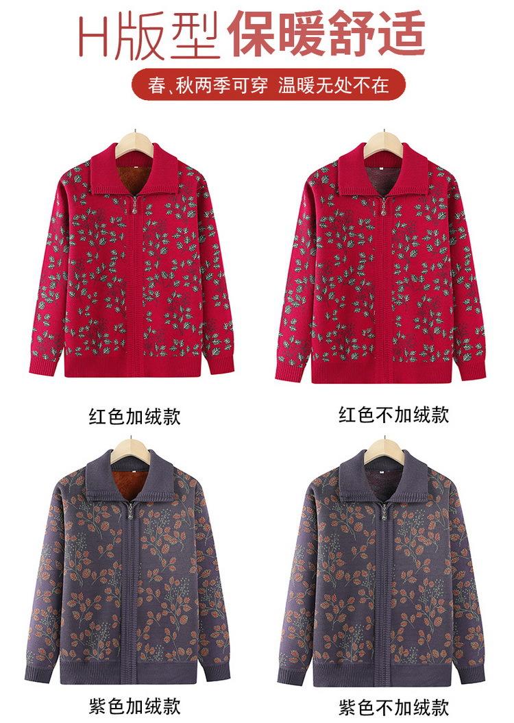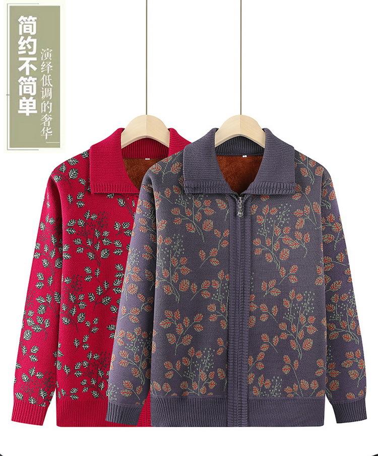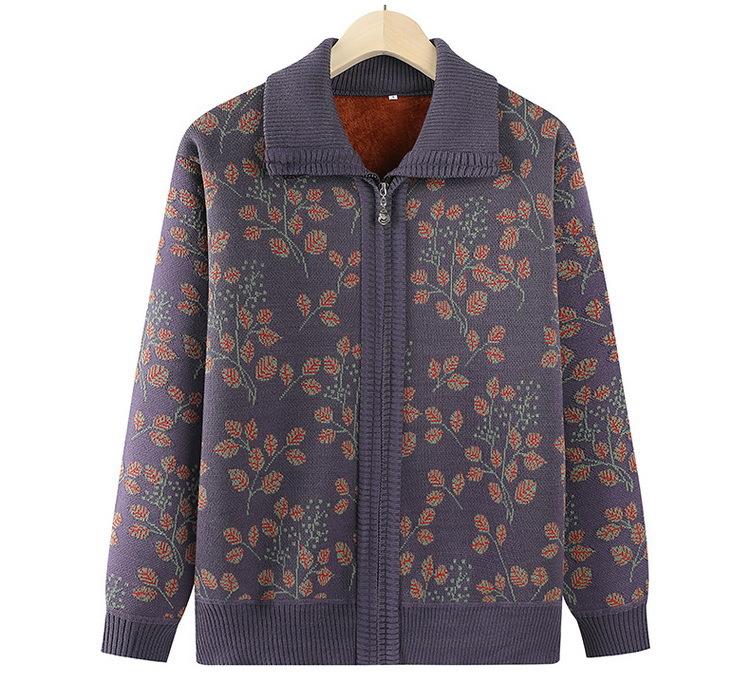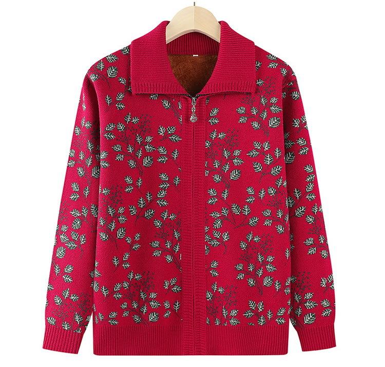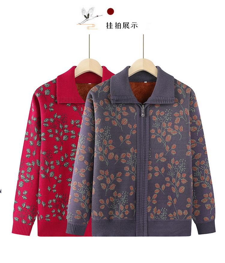 Cárdigan de Punto de Otoño e Invierno para Abuelas, Top de Punto Grueso de Terciopelo, Chaqueta con Solapa para Madre
