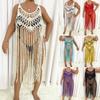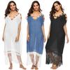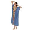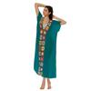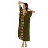 Vestido largo de algodón con costura a mano y gancho para mujer, estilo playero, estilo años 1900, multicolor