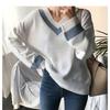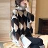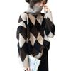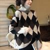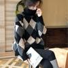 Suéter de cuello alto con contraste rómbico estilo perezoso para mujer, suéter holgado y adelgazante de estilo vintage de moda para otoño e invierno, prenda exterior gruesa