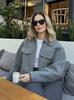 Chaqueta corta de lana informal holgada de cuero con cuentas para mujer, primavera, otoño e invierno 2025, Amazon, B62805