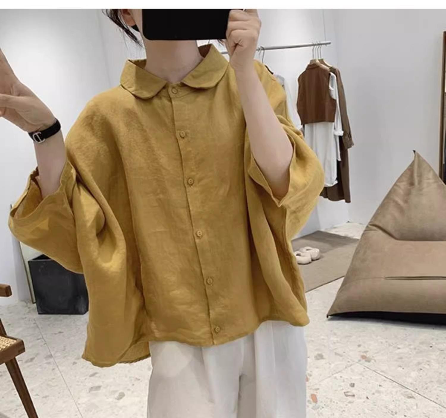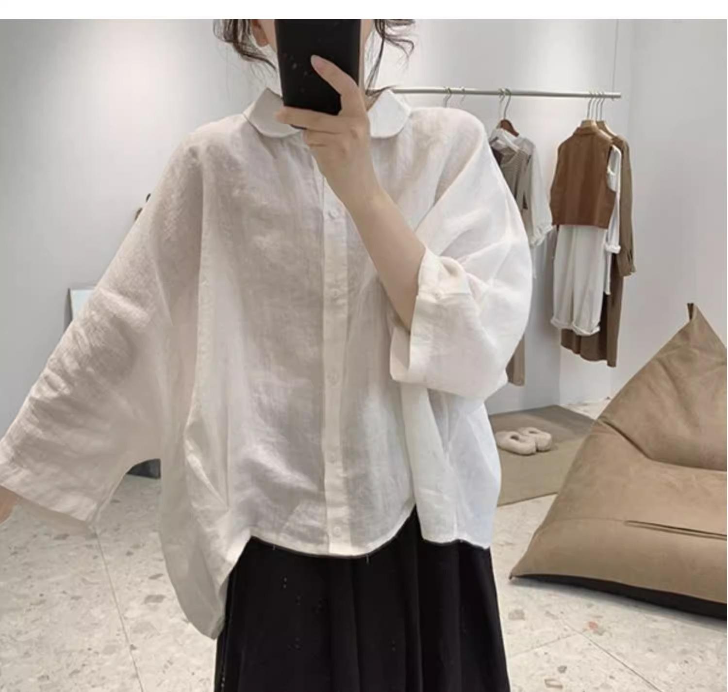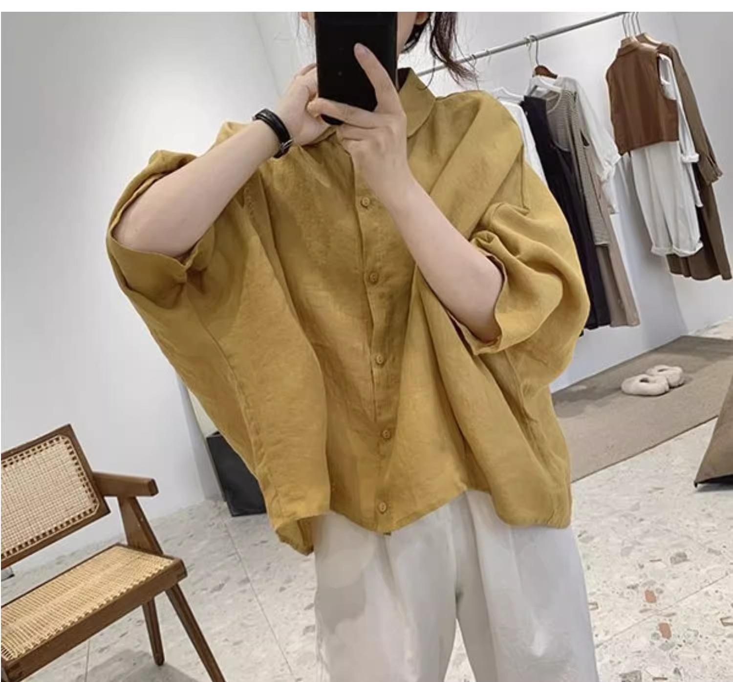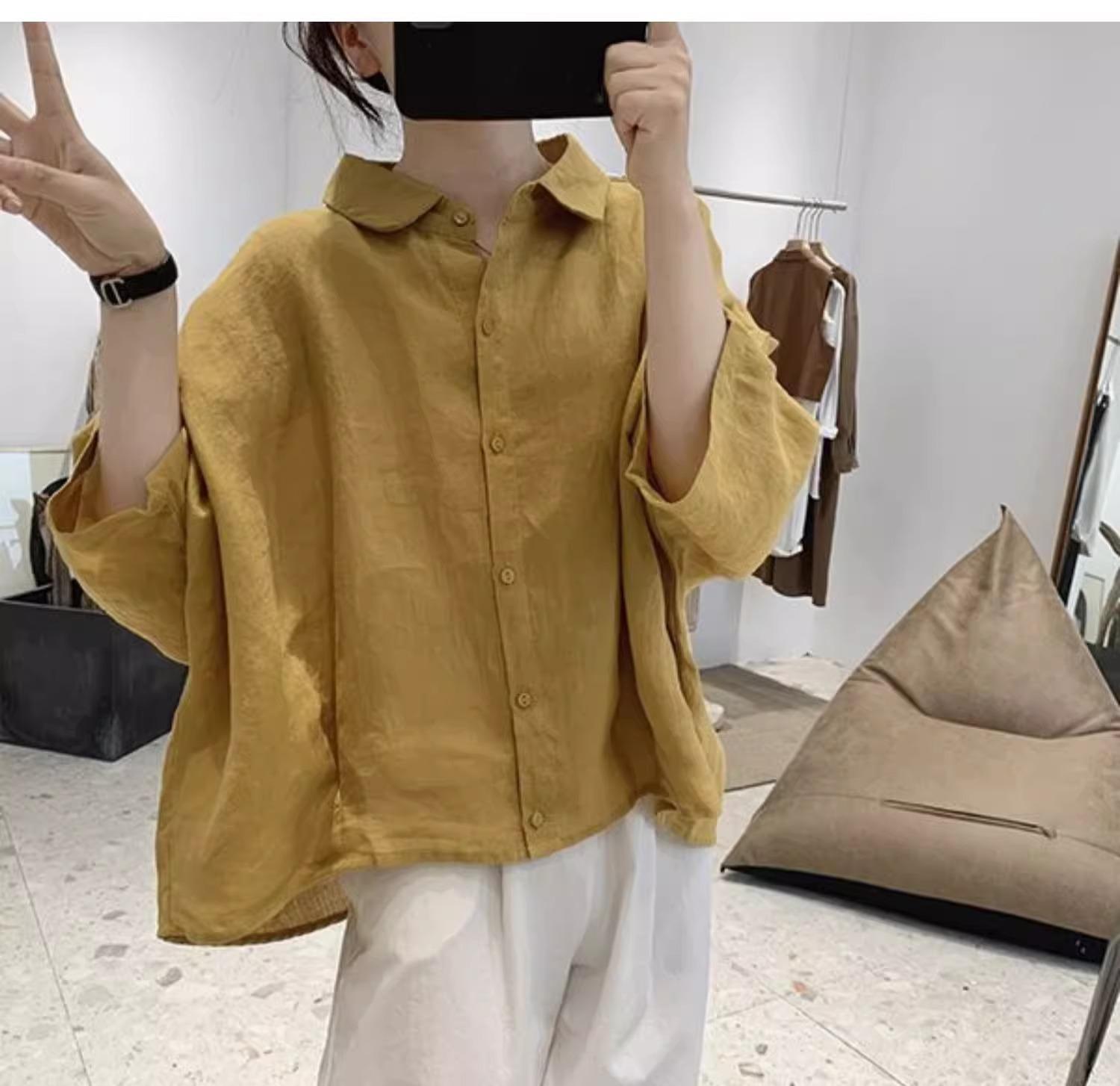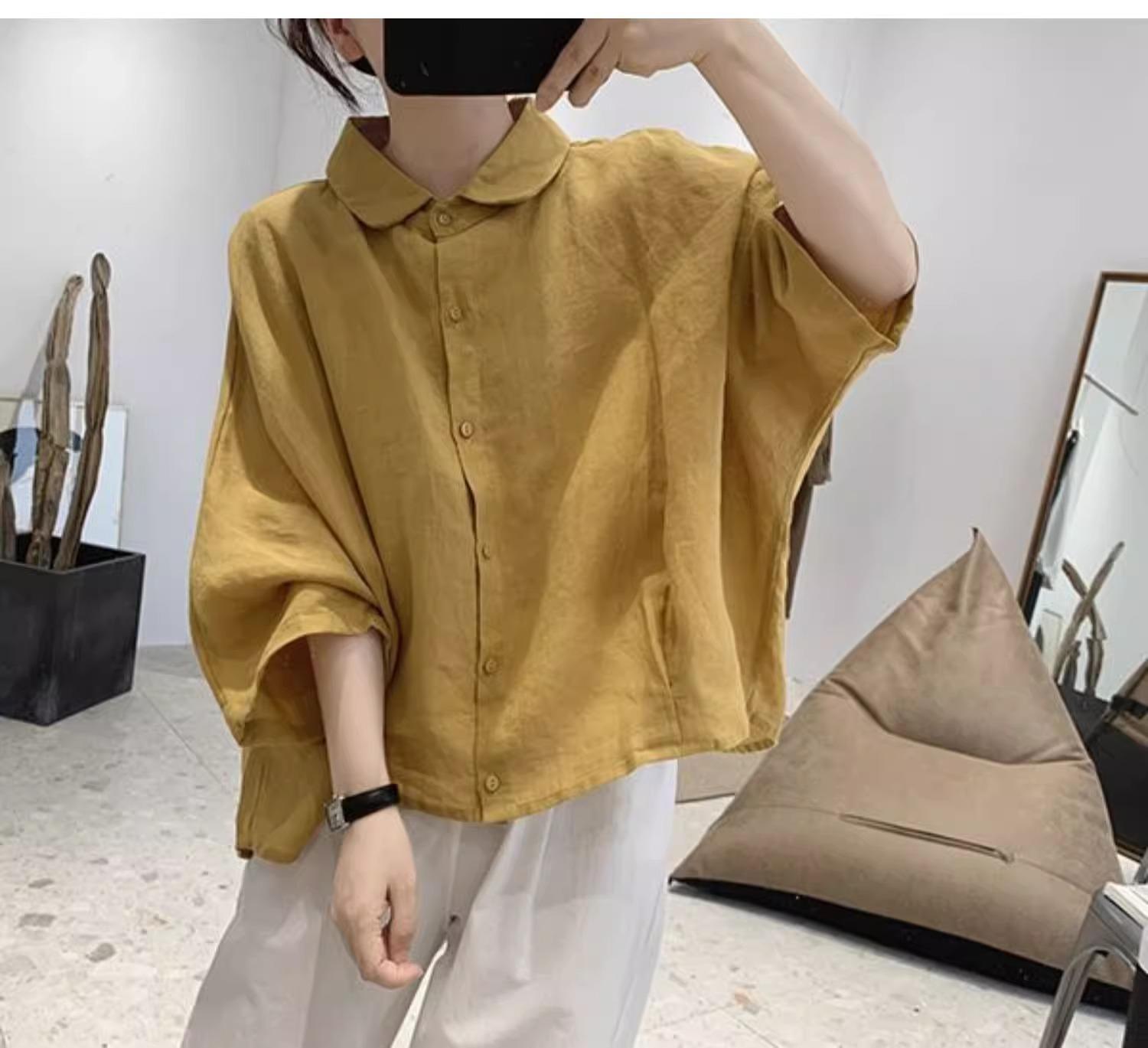 Camisa de lino y algodón para mujer, de verano, nueva, diseño retro, holgada, ajustada, de media manga, fina.