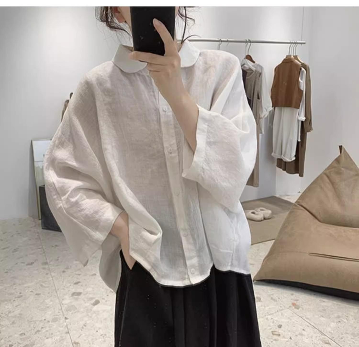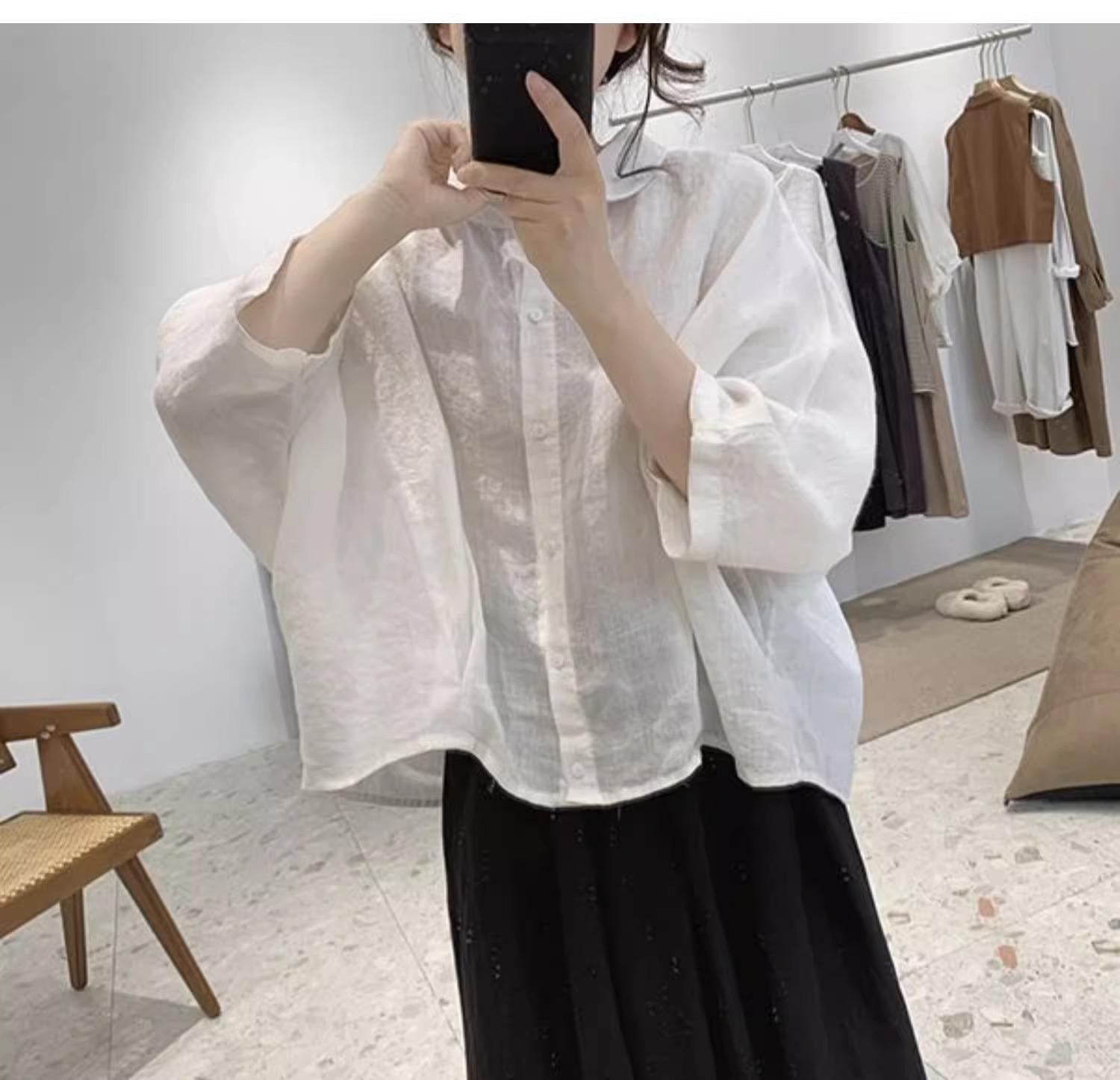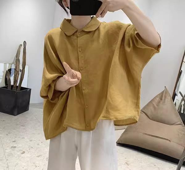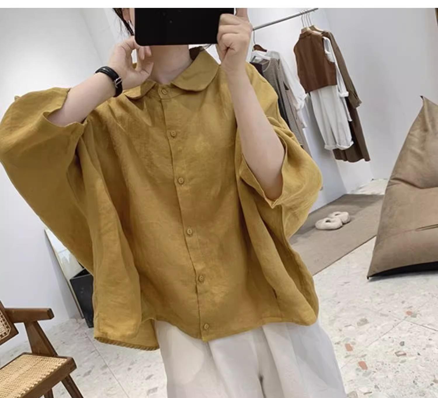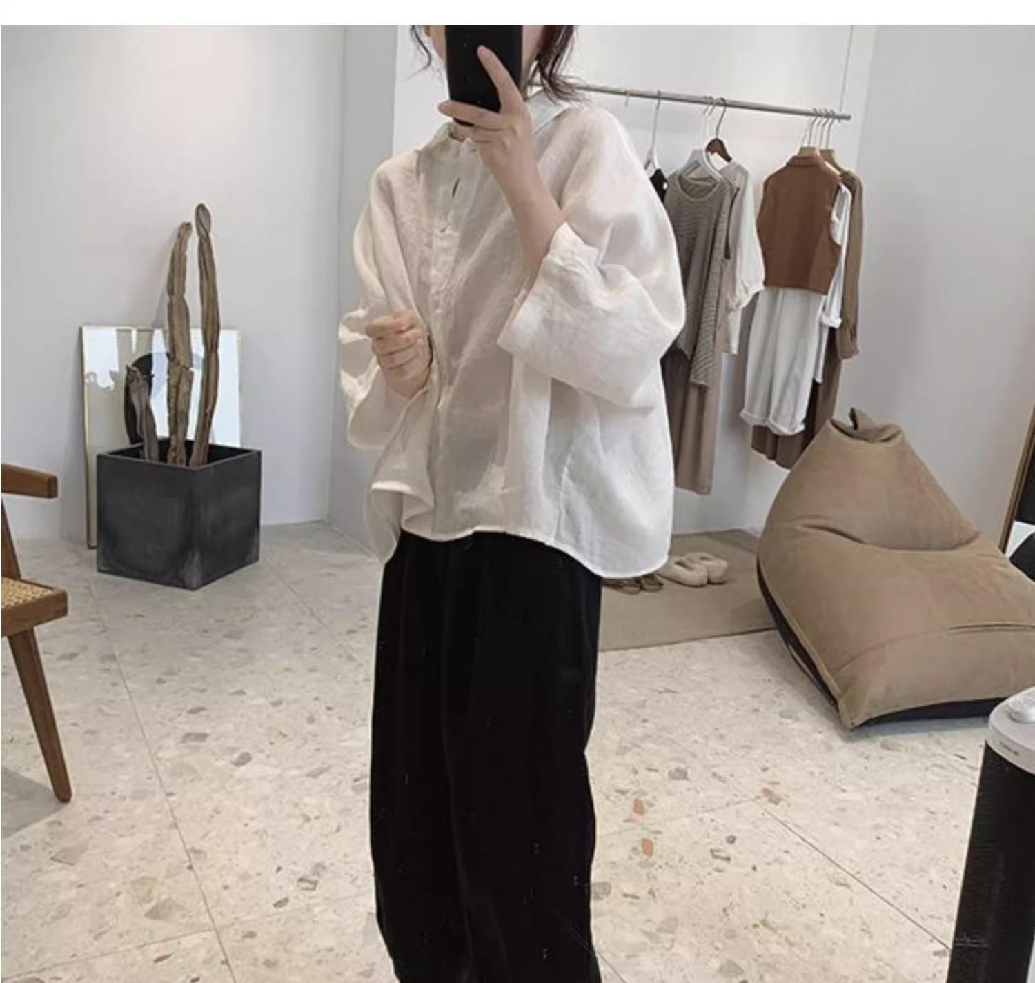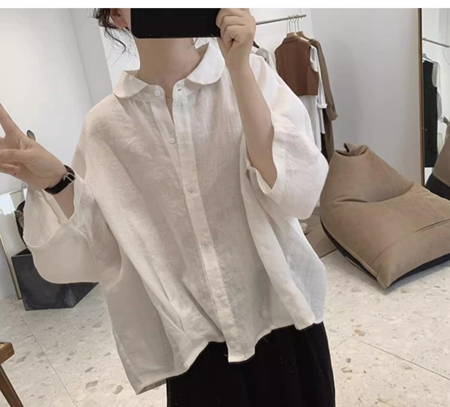 Camisa de lino y algodón para mujer, de verano, nueva, diseño retro, holgada, ajustada, de media manga, fina.