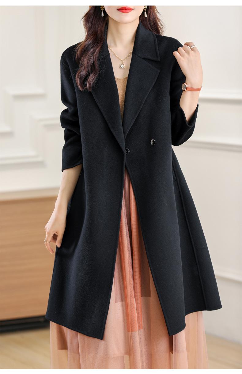 Abrigo de Lana de Doble Cara con Cinturón para Mujer de Largo Medio Otoño e Invierno 2024 Nuevo Abrigo de Lana Ajustado Abrigo Holgado