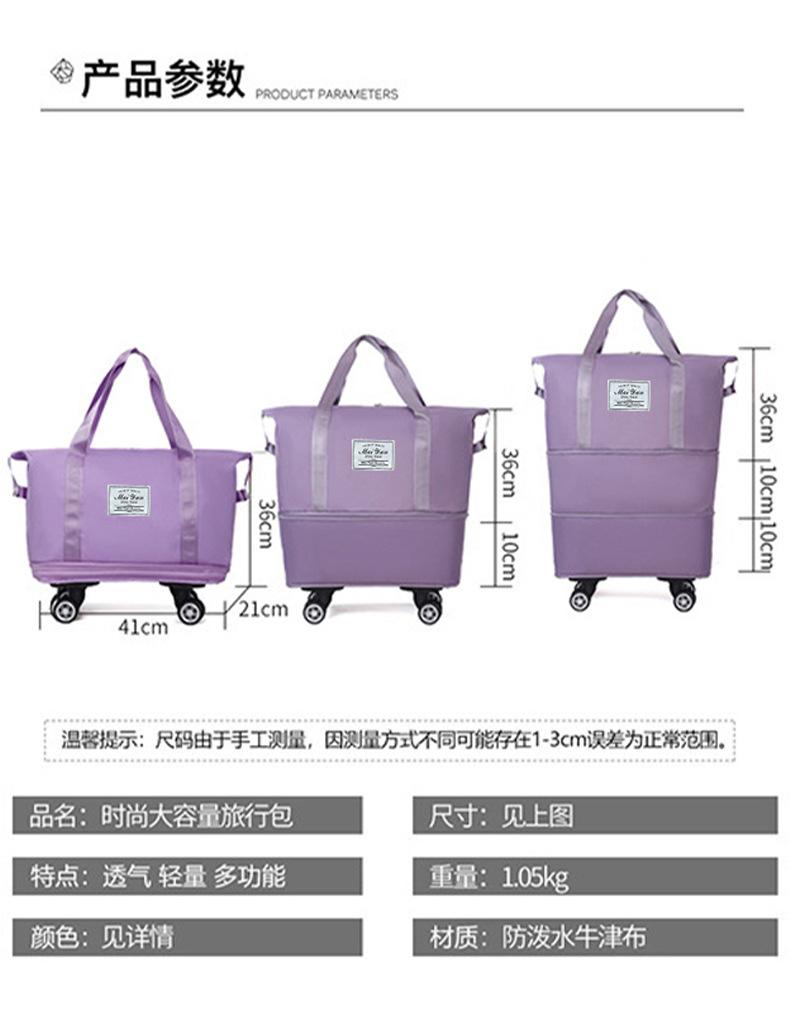 Bolsa con ruedas, bolsa de viaje, bolsa de transporte, separación húmeda y seca, polea expandible desmontable, cinco colores, gran capacidad