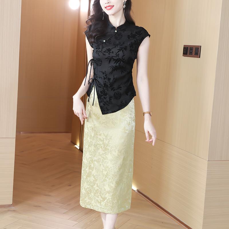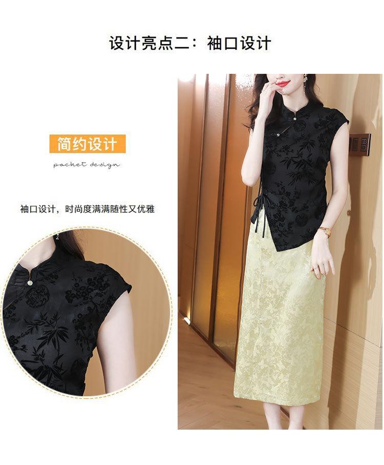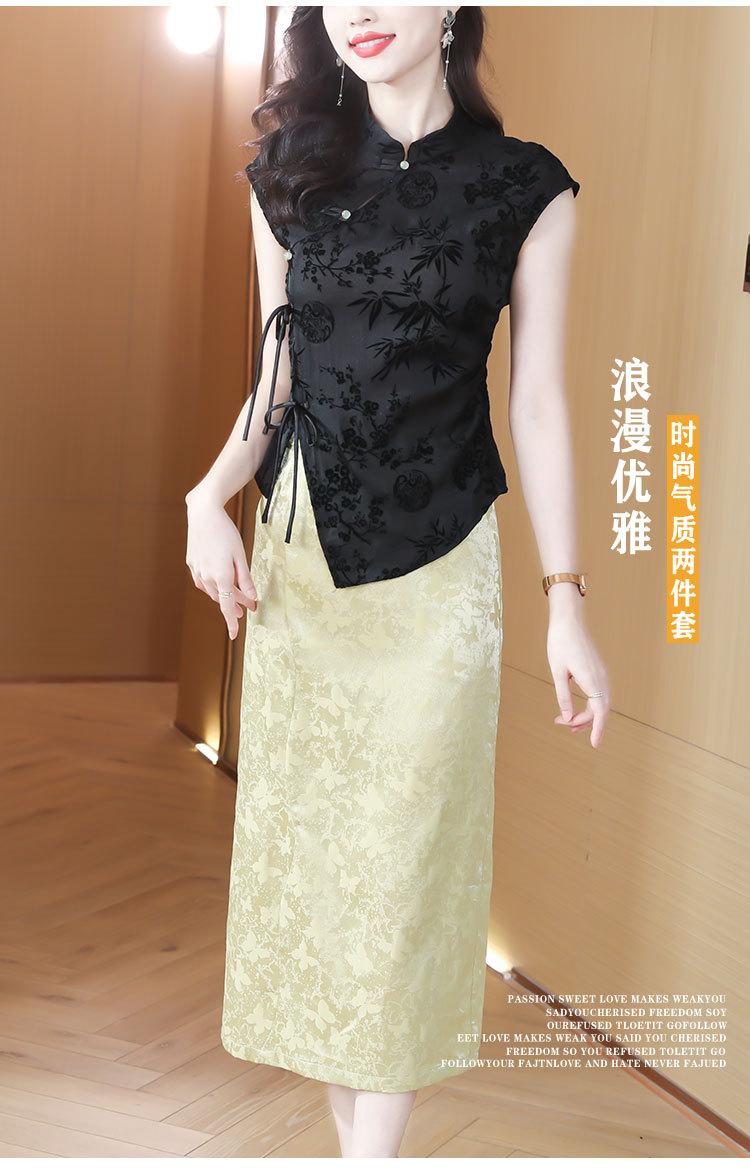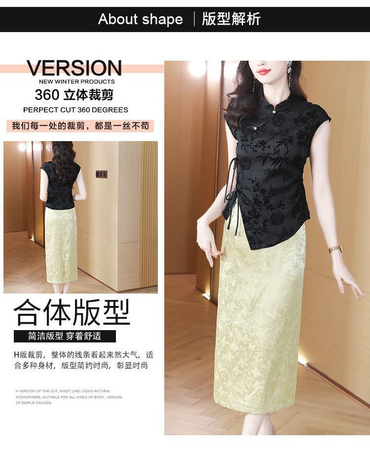 Nuevo Estilo Chino Estilo Nacional Jacquard Top Falda con Cuello Vertical traje 2024 Verano Nueva Moda Elegante traje de talla grande