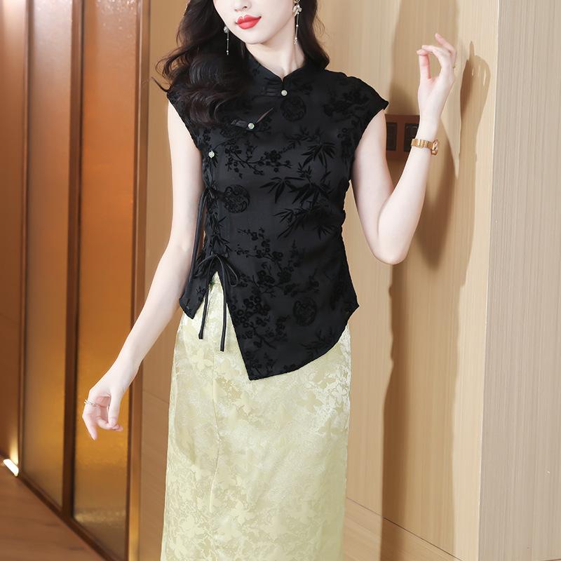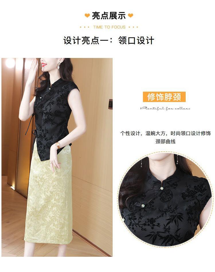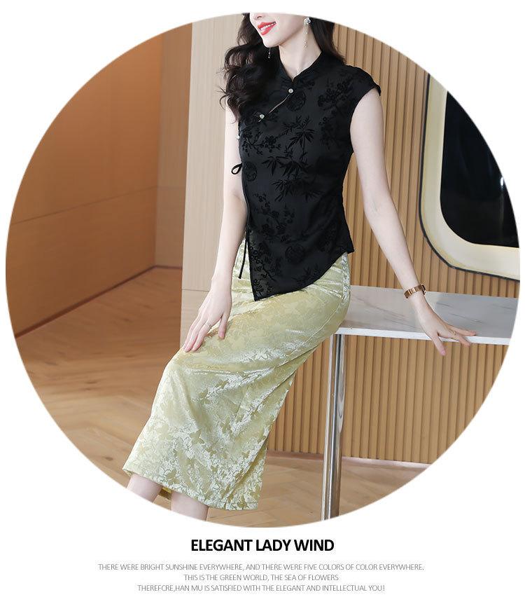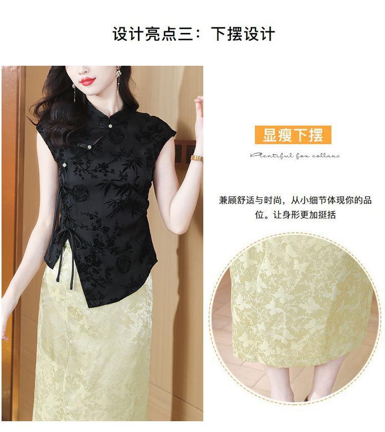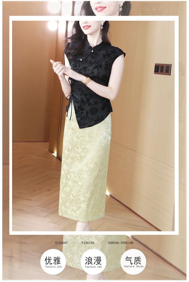 Nuevo Estilo Chino Estilo Nacional Jacquard Top Falda con Cuello Vertical traje 2024 Verano Nueva Moda Elegante traje de talla grande