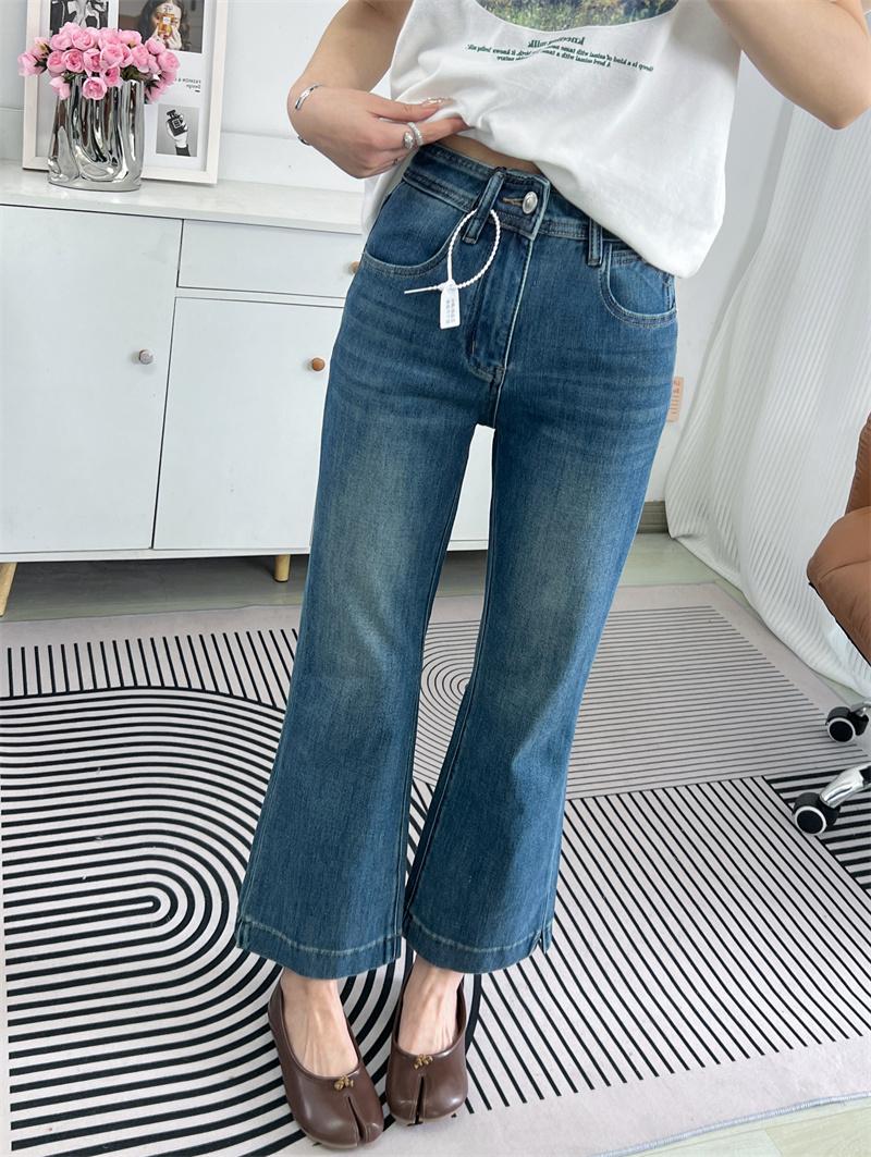 Pantalones vaqueros elásticos negros micro acampanados de primavera 2024, finos, de cintura alta, informales, ajustados, adelgazantes, suaves y encerados.