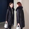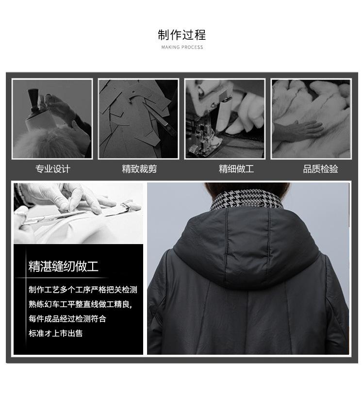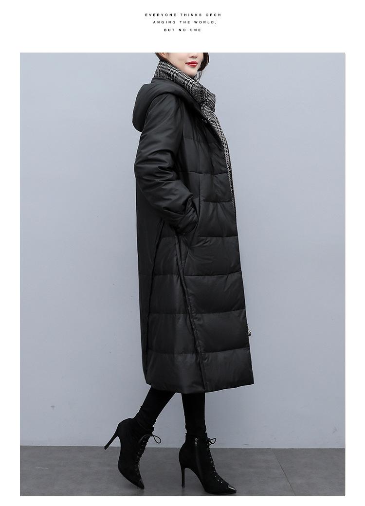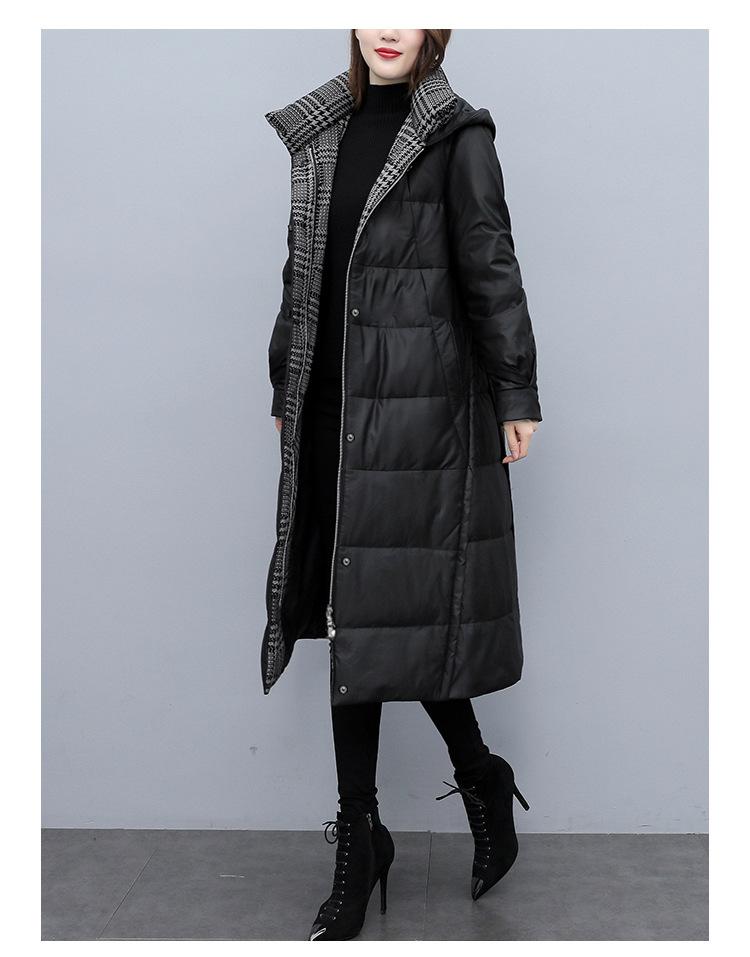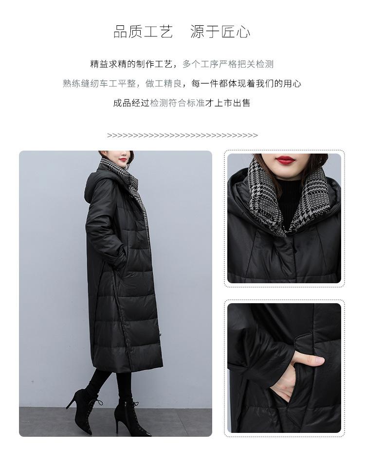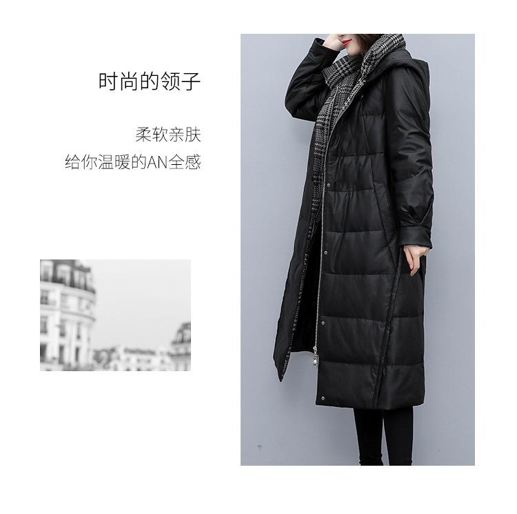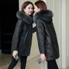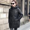 2025 Haining Nuevo Cuero plumón Largo Invierno Cuero Genuino Piel de Oveja con Capucha una Versión Chaqueta Moda Coreana