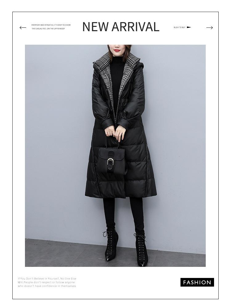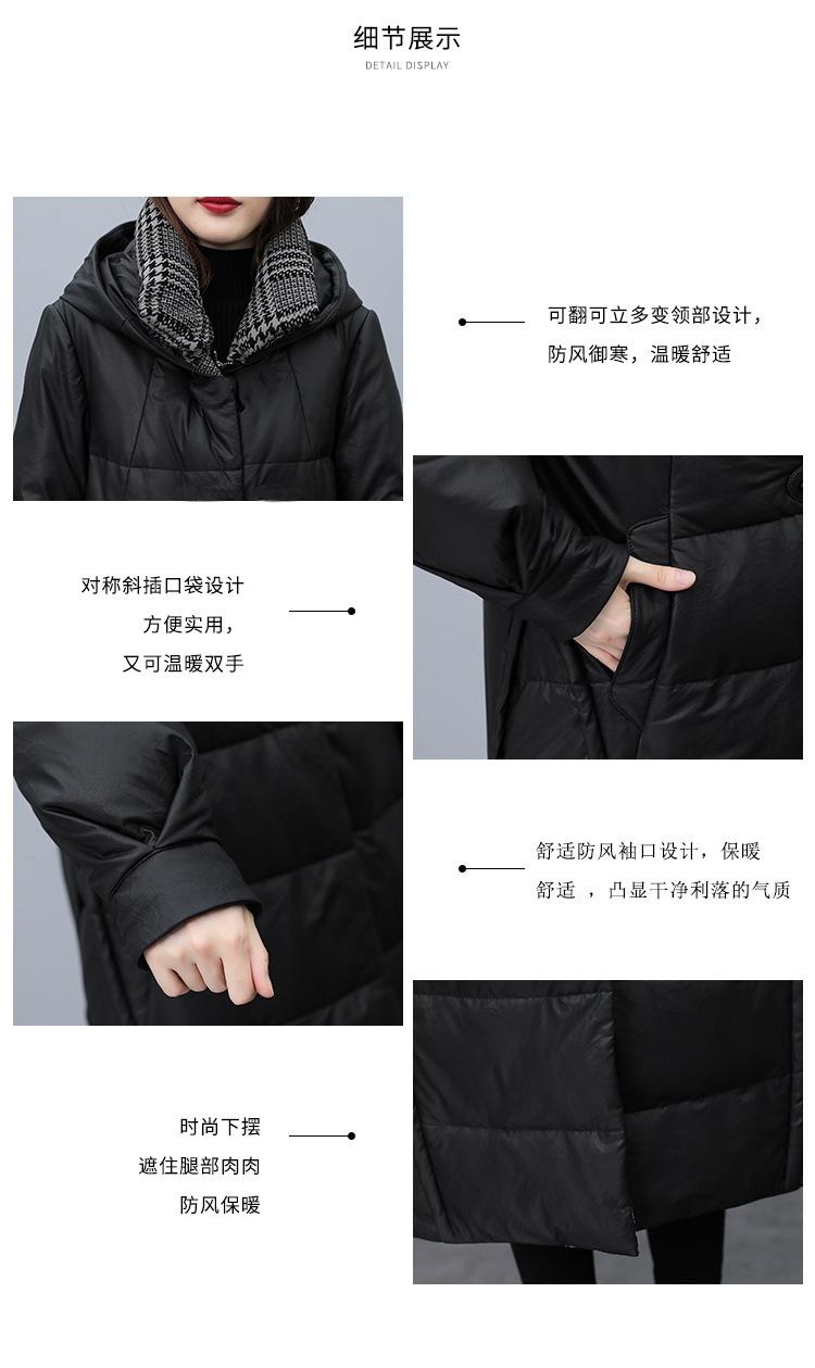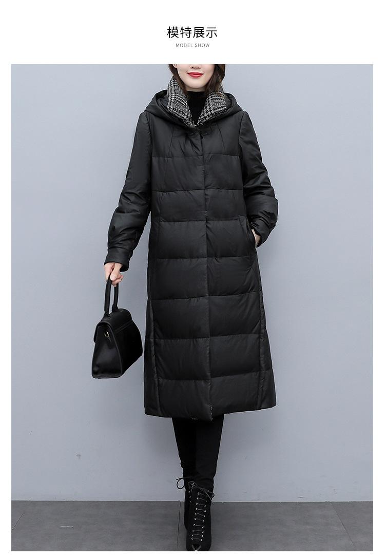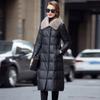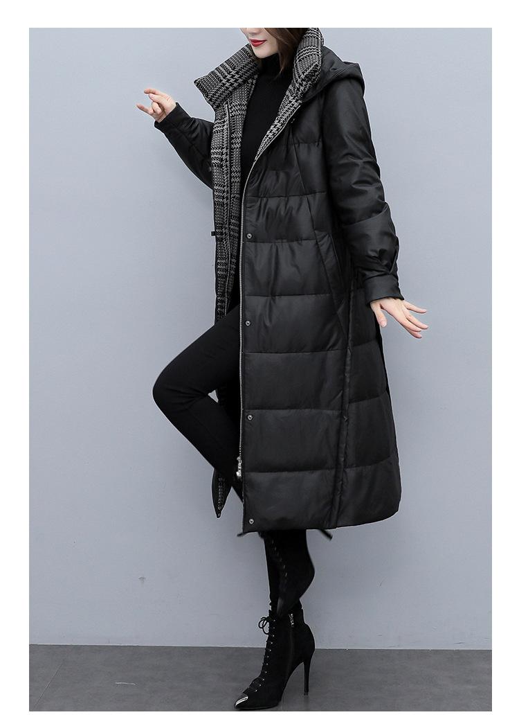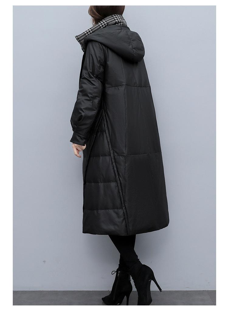 2025 Haining Nuevo Cuero plumón Largo Invierno Cuero Genuino Piel de Oveja con Capucha una Versión Chaqueta Moda Coreana